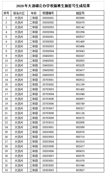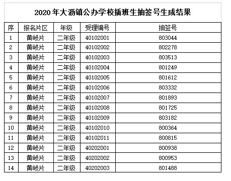 2020年,大沥镇初中插班生全部可以直接派位,不需要进行抽签。部分小学的个别年级报名人数少于可供学位数,可直接派位,直接派位的名单8月2日已在学校校门口公告栏公示。目前,大沥公办学校插班生的抽签号已随机生成,各学校已张贴至学校门口公告栏,家长们也可通过“南海大沥”微信进行查阅。