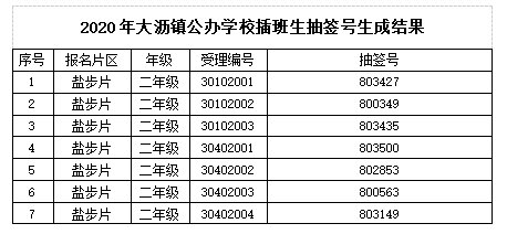 2020年南海区大沥镇公办学校插班生抽签号公布
