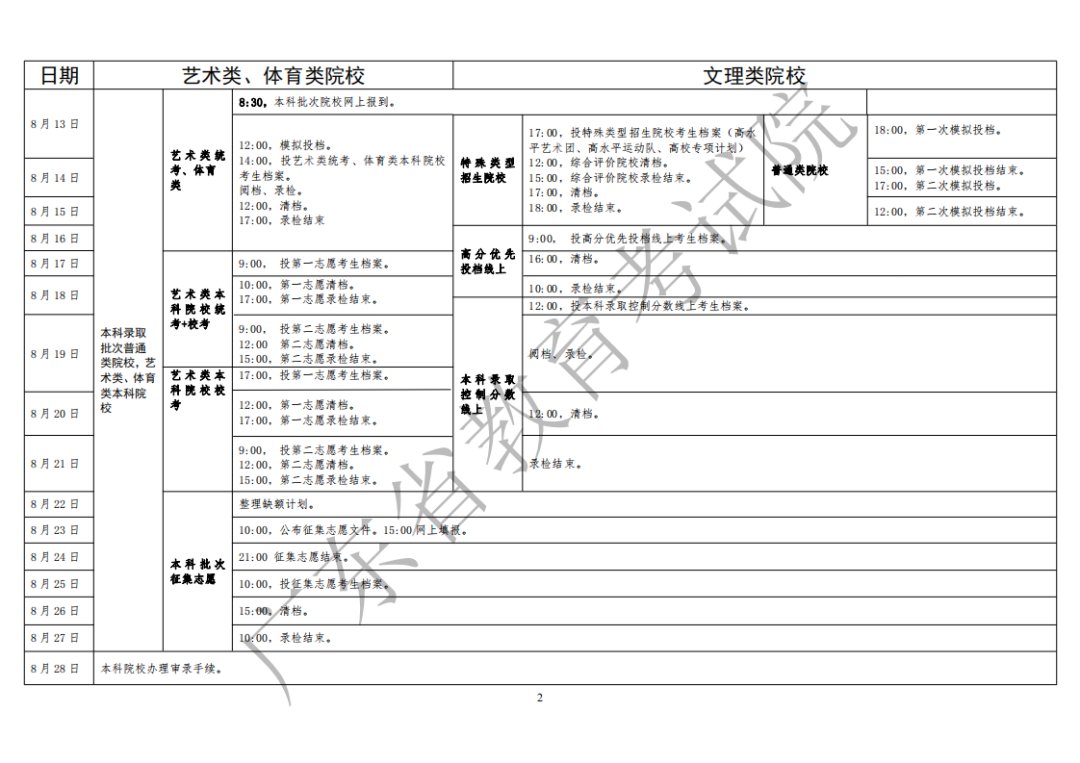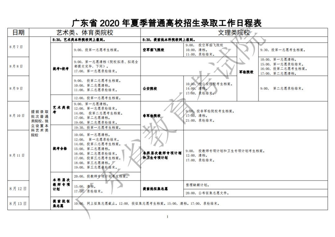 2020年广东高考录取日程表如下:
