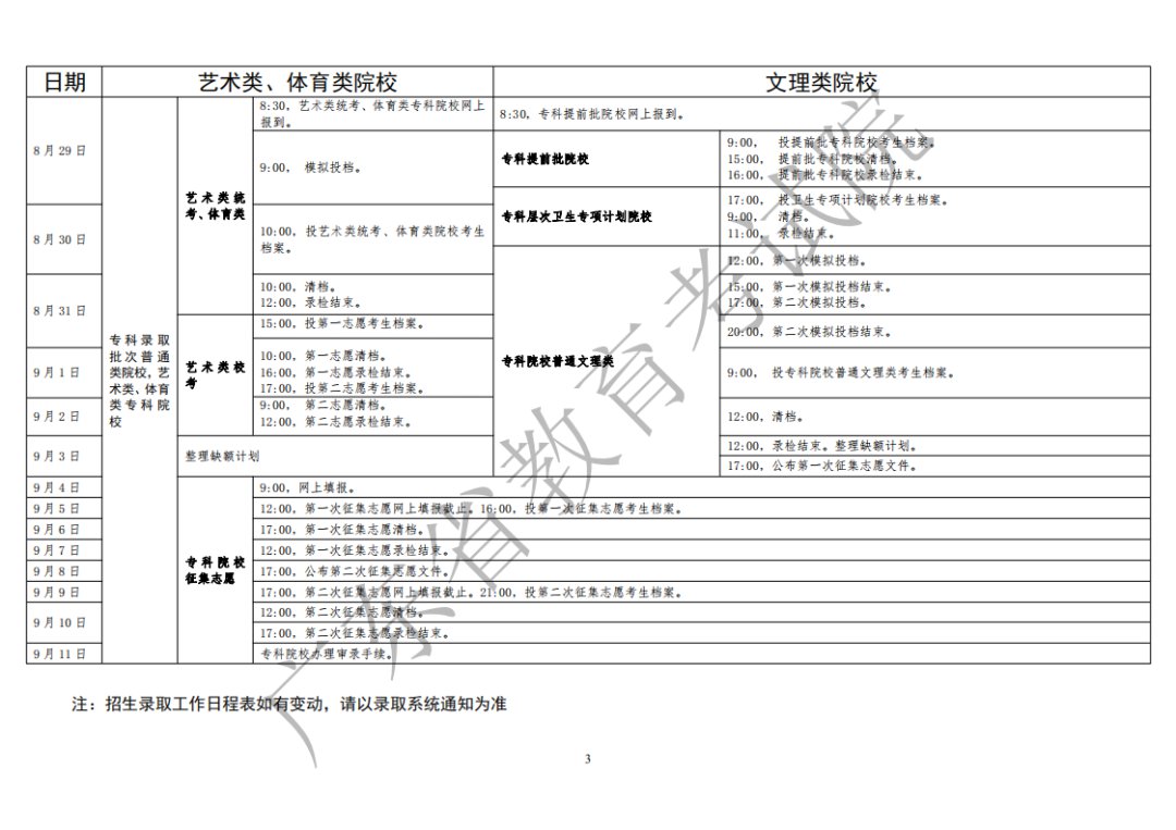 专科批次:8月29日-9月11日