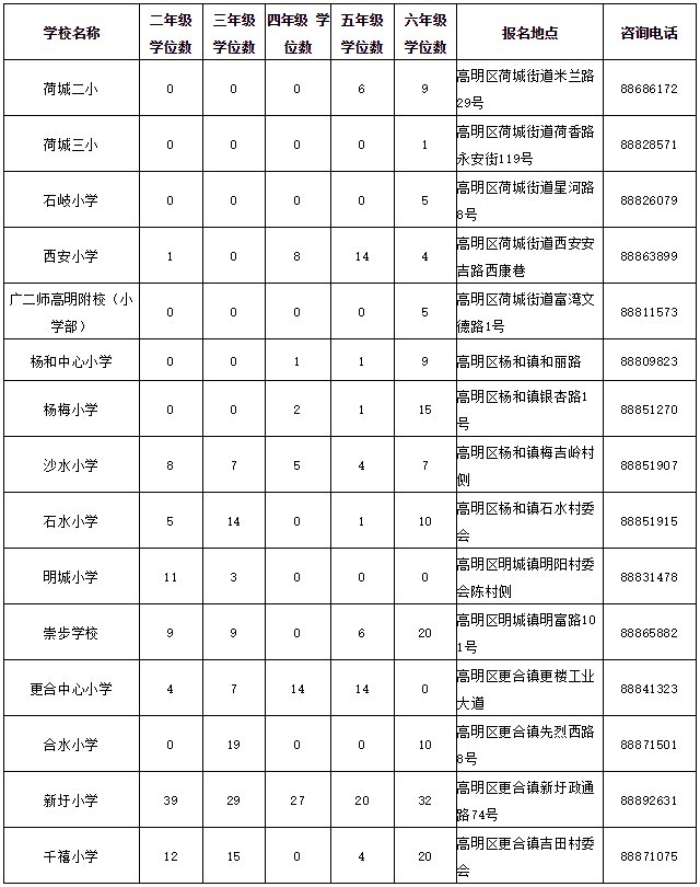 高明区义务教育阶段公办学校招收2020年秋季学期转学插班生啦!本次共有589个学位可申请。