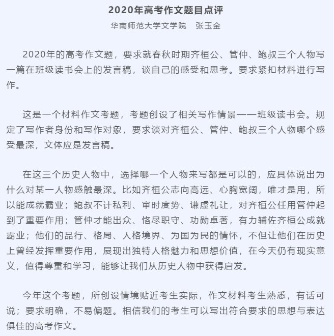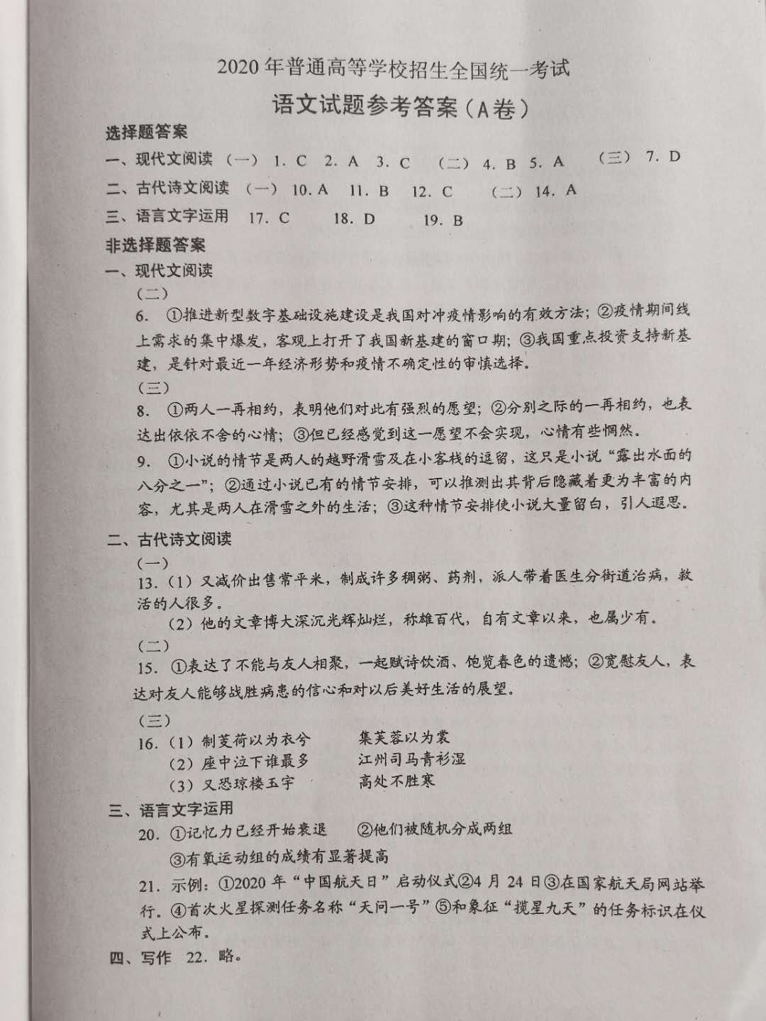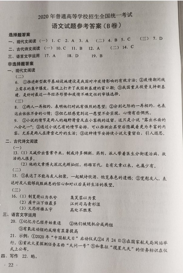 2020年广东高考语文试题答案一览