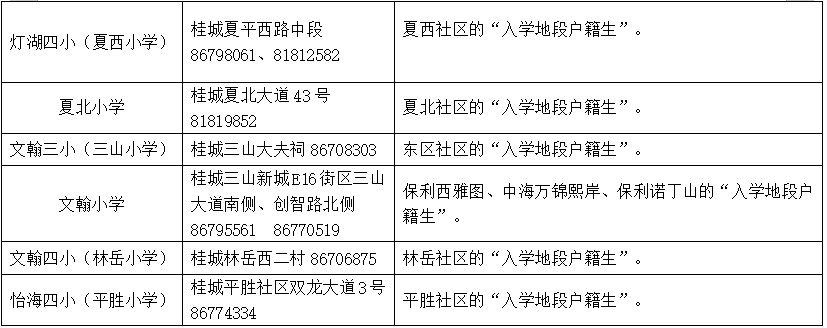 下表所指的“入学地段户籍生”是有时限性的,是指2022年4月8日前(含4月8日当天)入户在册的地段户籍生。之后迁入的该地段户籍生由桂城街道教育行政部门根据学位情况统筹安排到公办学校入读。