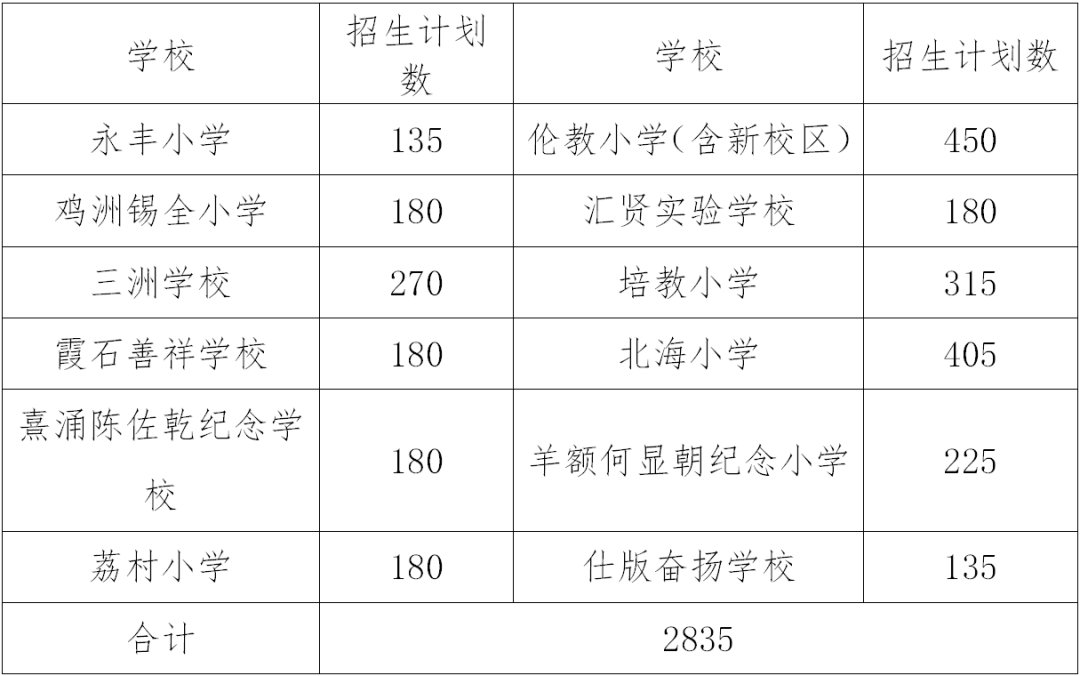 2020年顺德伦教街道小学一年级户籍生招生方案出炉