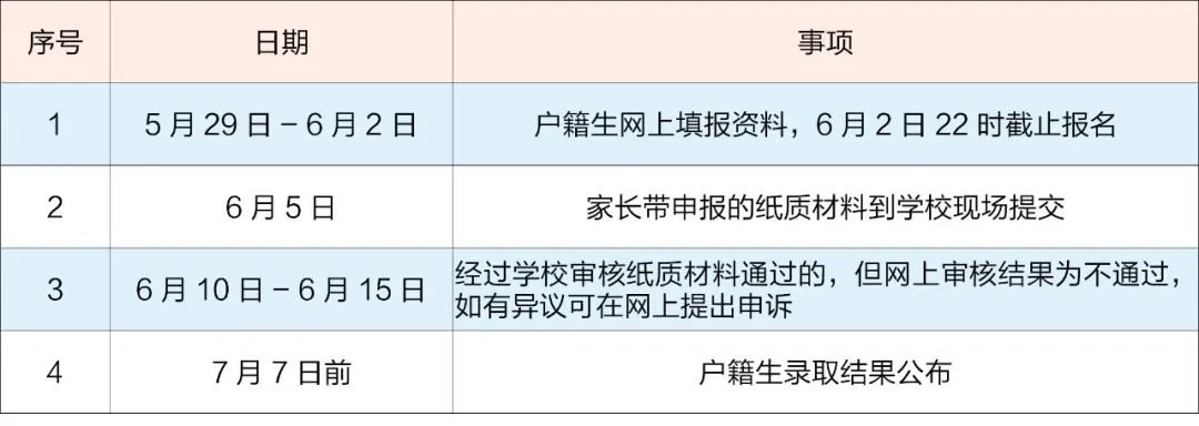 家长先在网上报名,然后到学校提交纸质材料。申报材料是报名小孩的户口簿原件和复印件。(户口簿原件核对后返还,复印件须含户口簿首页、学生及父母所在页)