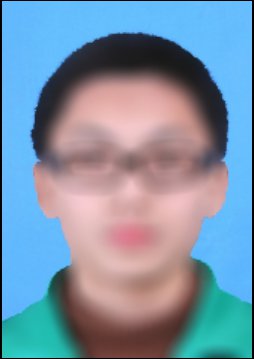 被拍摄人后方需放置背景板,背景板颜色为天蓝色,面积大于被拍摄人,垂直放置。