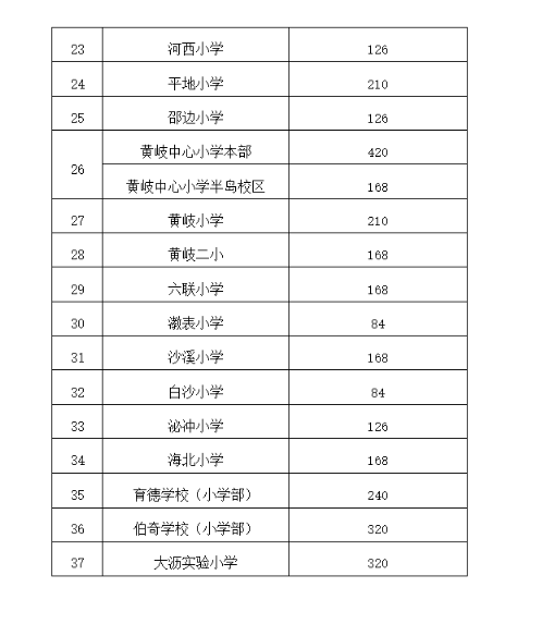 ①原泌冲小学、白沙小学、沙溪小学、海北小学的学区不变。