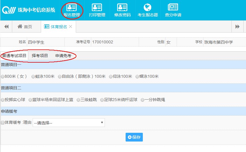 依次点击菜单“报名管理”“体育报名”,打开体育报名信息填写界面。