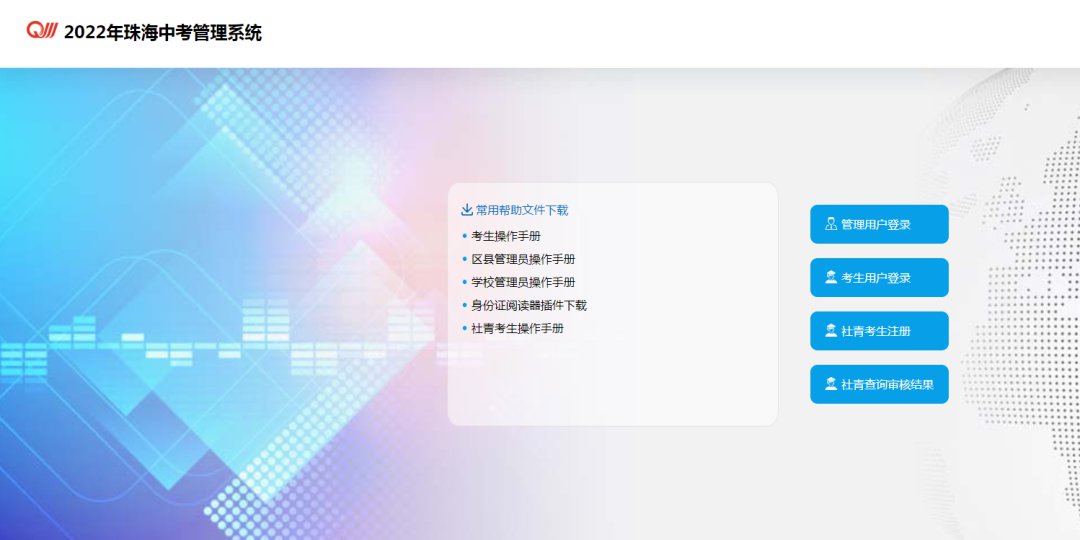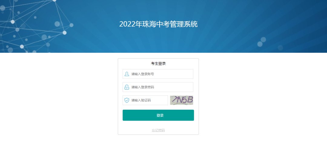 点击页面“考生用户登录”按钮,考生凭学校下发的准考证号和初始密码登录“珠海市中考管理系统”。