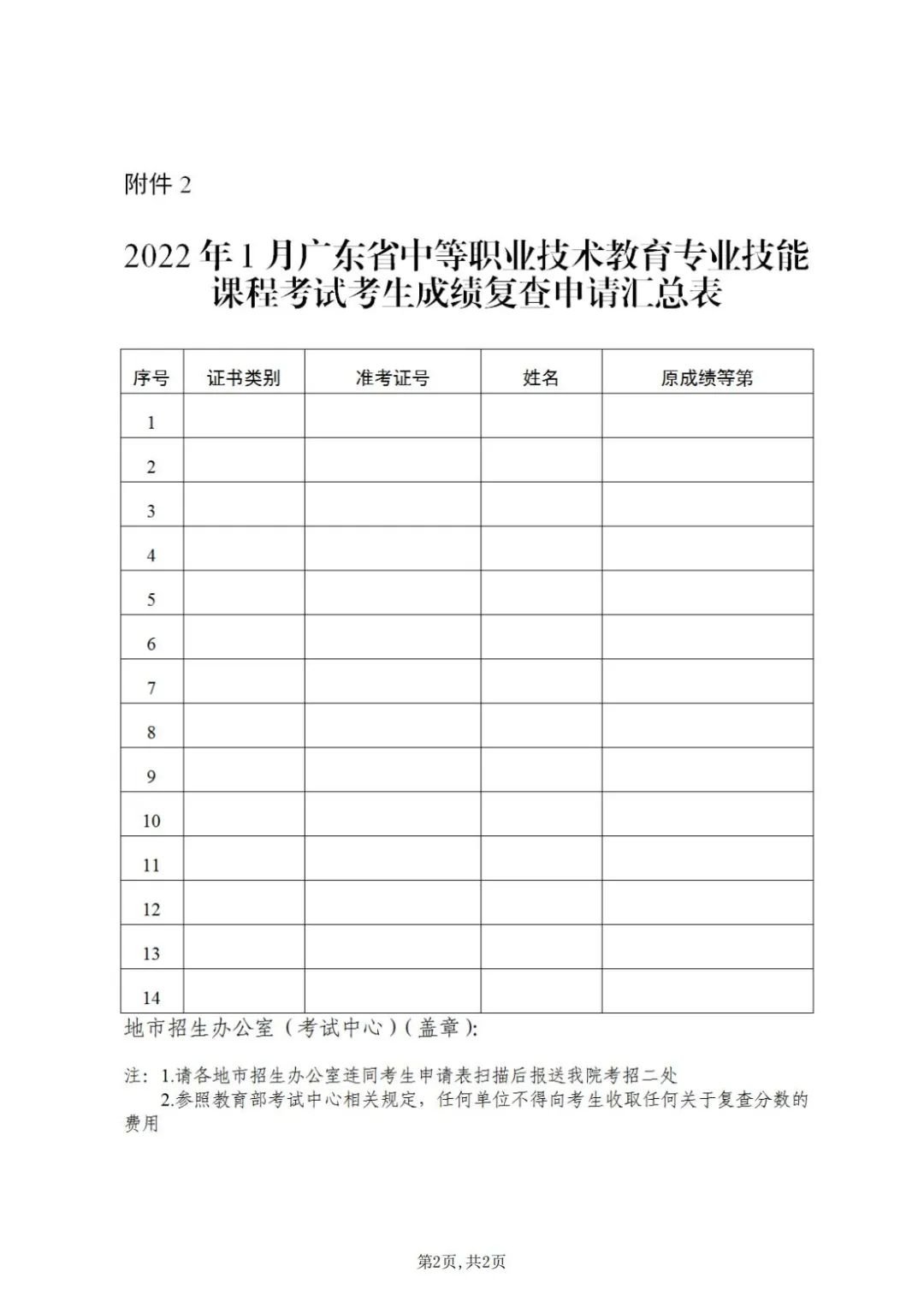 考生如对本人成绩有疑问,可在3月7日16:00前向当地市、县(区)招生考试部门提出复查成绩的书面申请(附件1)。复查内容为成绩统计合成是否有误、答卷是否漏评,不涉及评分标准的宽严问题。请各市招生考试部门负责汇总申请复查成绩的考生名单(附件2)及数据(电子版),加盖公章后于3月9日16:00前报送到我院考试招生二处。