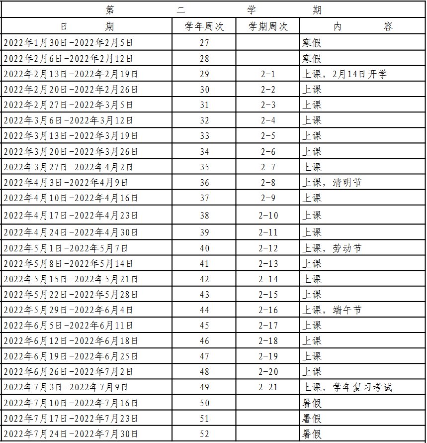 校历显示,第二学期开学时间在2022年2月14日。