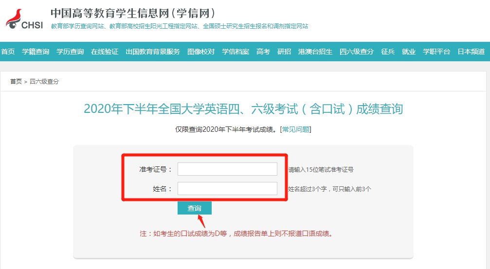 中国高等教育学生信息网(学信网)四六级成绩查询入口:点击进入