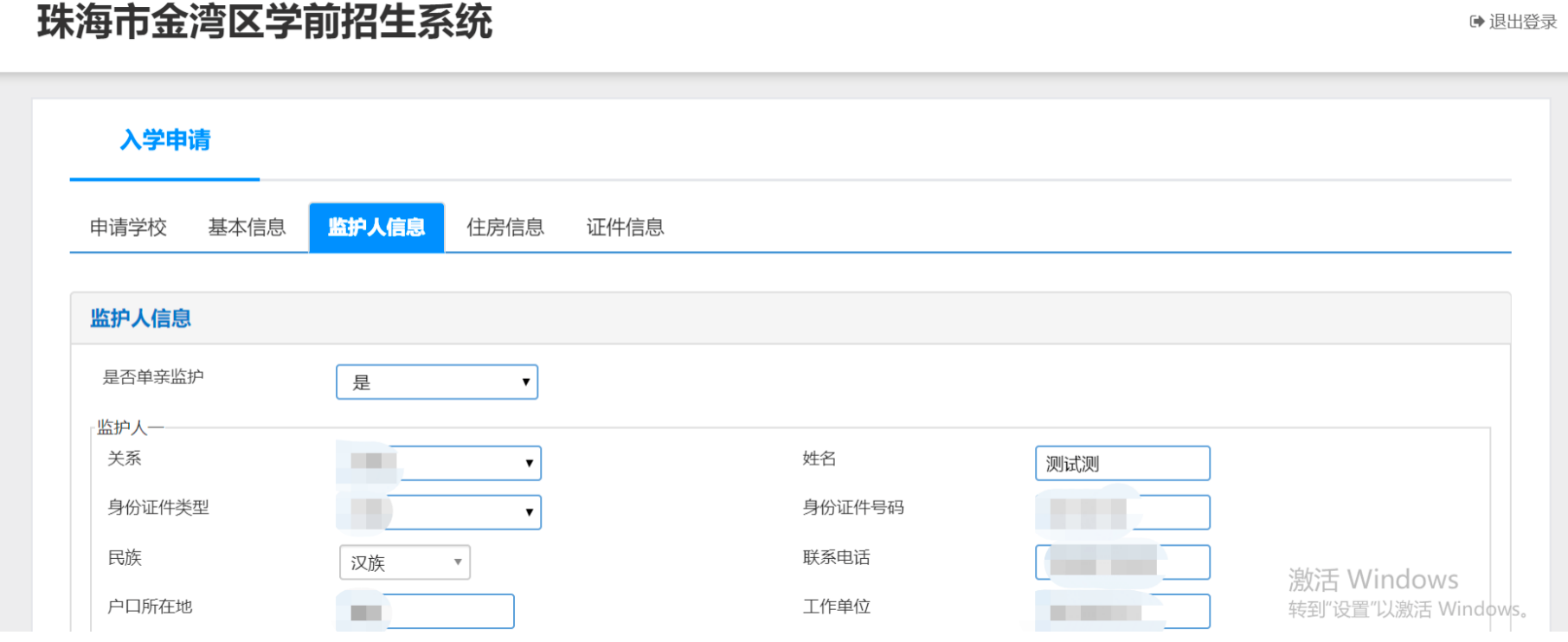 3.如实填写家长信息(法定监护人,一般为孩子父母,填写非孩子父母的需要交监护人相关证明到区教育局)