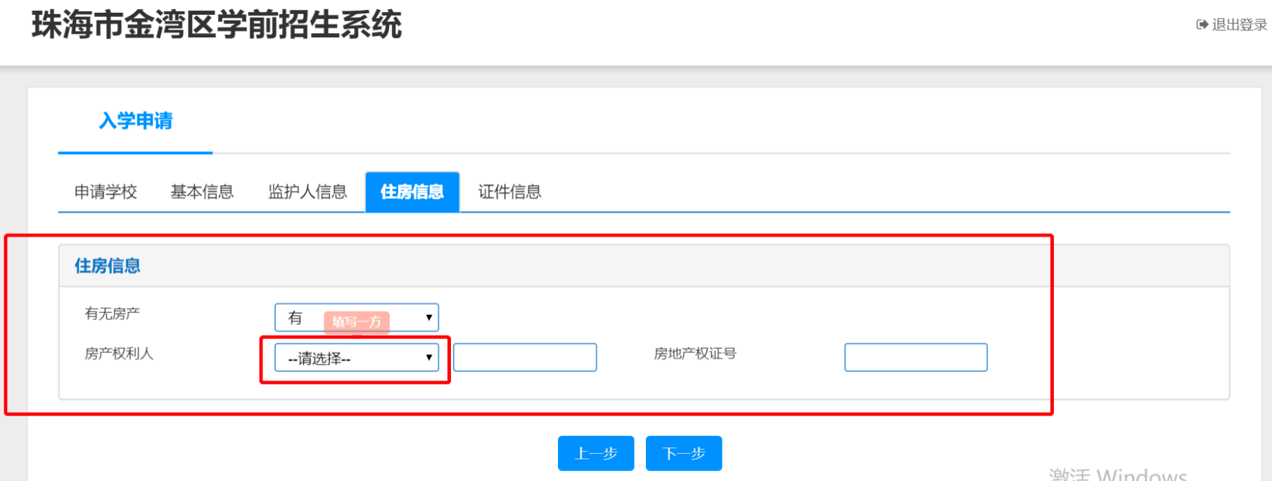房产权利人:选择房产证上的有效权利人,如是两位权利人,选其一即可。