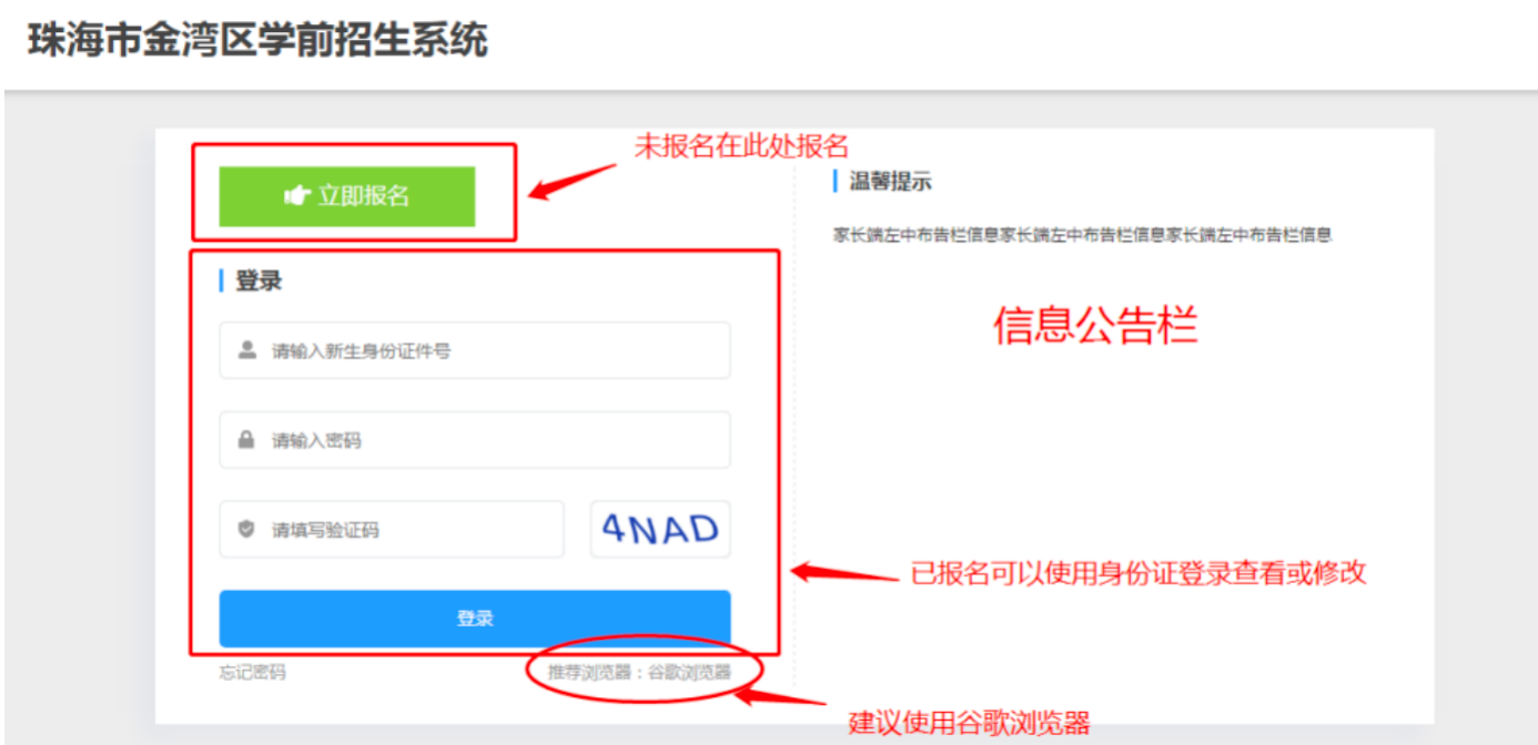 右侧为公告栏,由金湾区教育局在报名设置里自行设置内容;