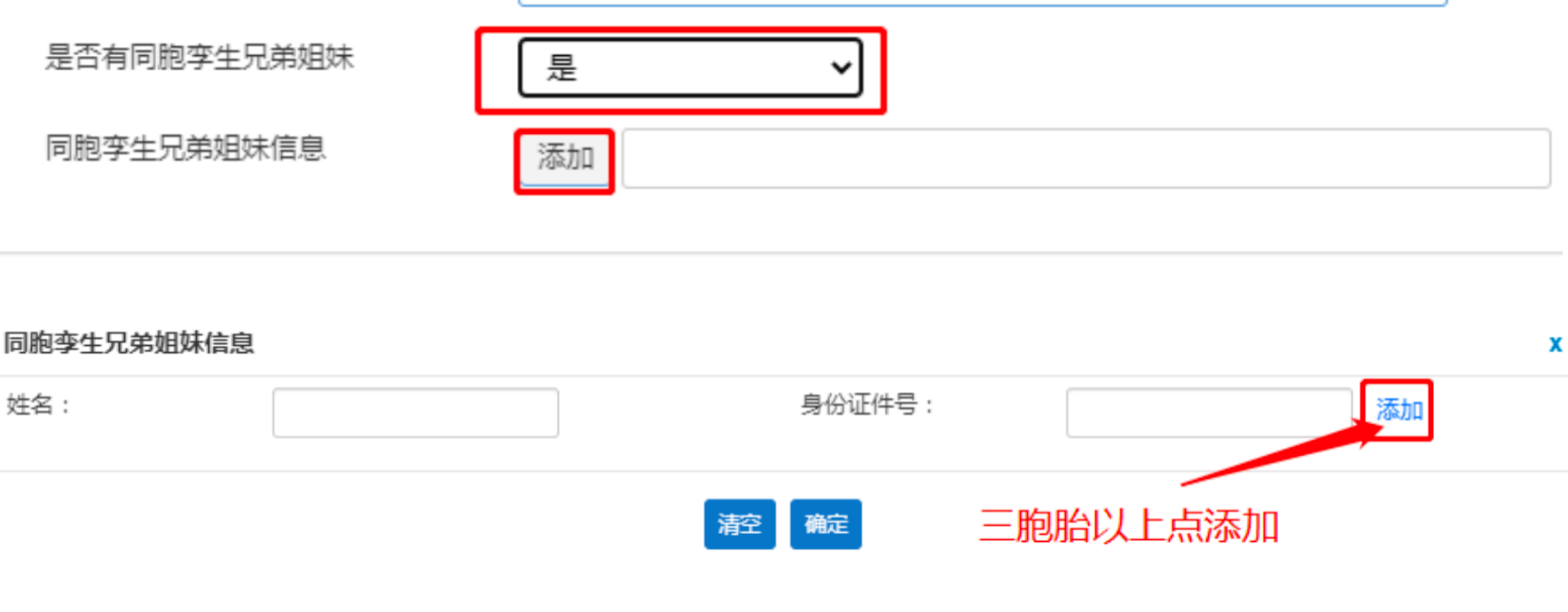 并且在是否有同胞孪生兄弟姐妹处选择是,点击填写同胞孪生兄第姐妹信息,填写同胞孪生兄弟姐妹的个人信息。
