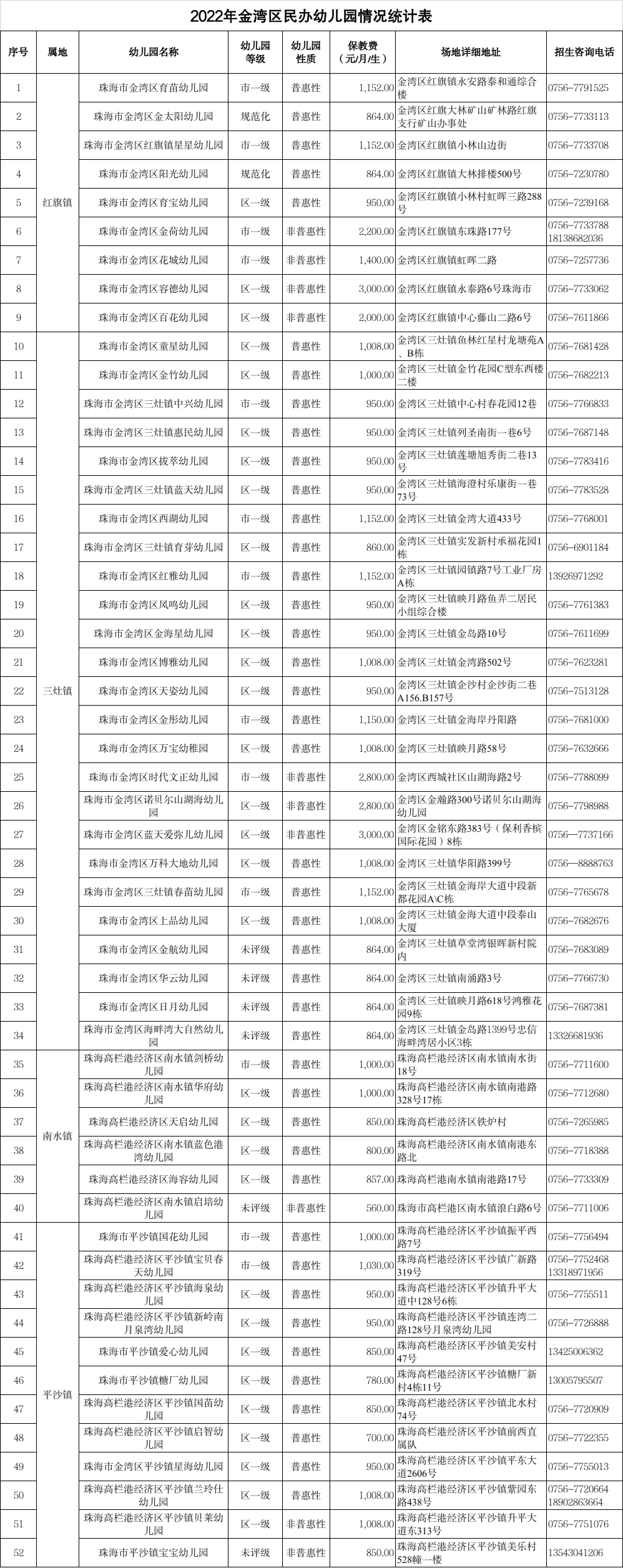 1.2022年金湾区公办幼儿园秋季招生具体幼儿园、各年级招生人数请以金湾区教育局发布的“2022年秋季金湾区公办幼儿园招生细则”为准。招生细则将另行发布,请家长关注“金湾教育”微信公众号和金湾区人民政府网站。