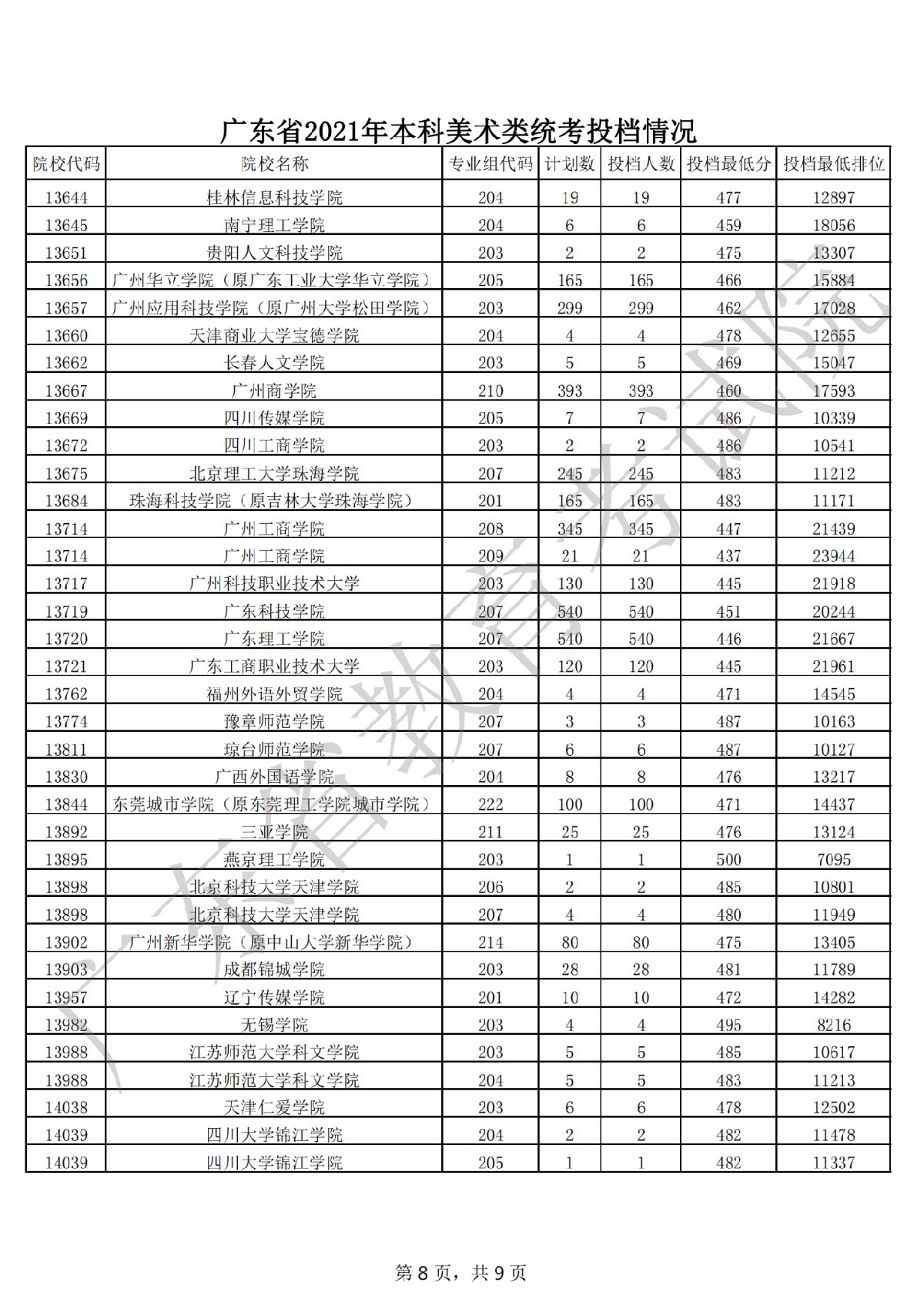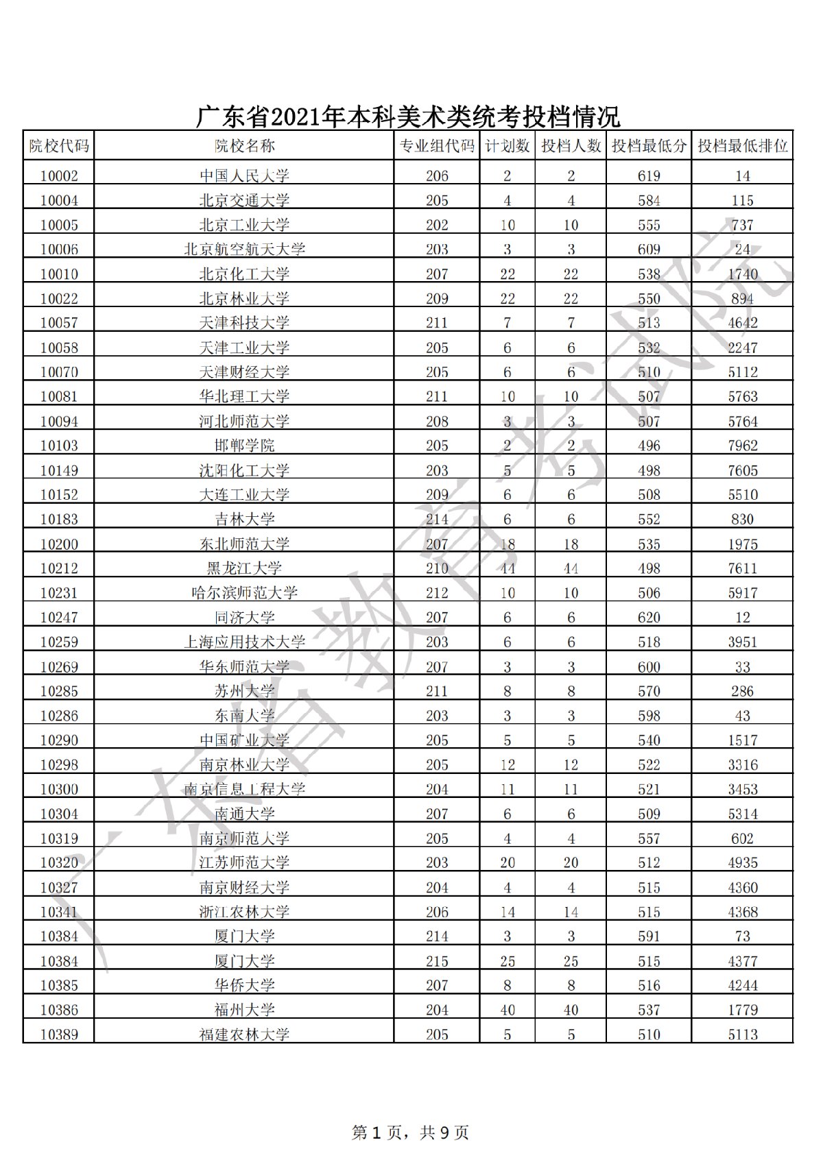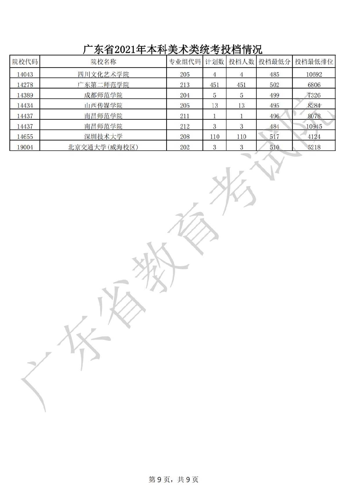 2021广东省本科美术类统考投档情况 2021广东省本科美术类统考投档情况分析