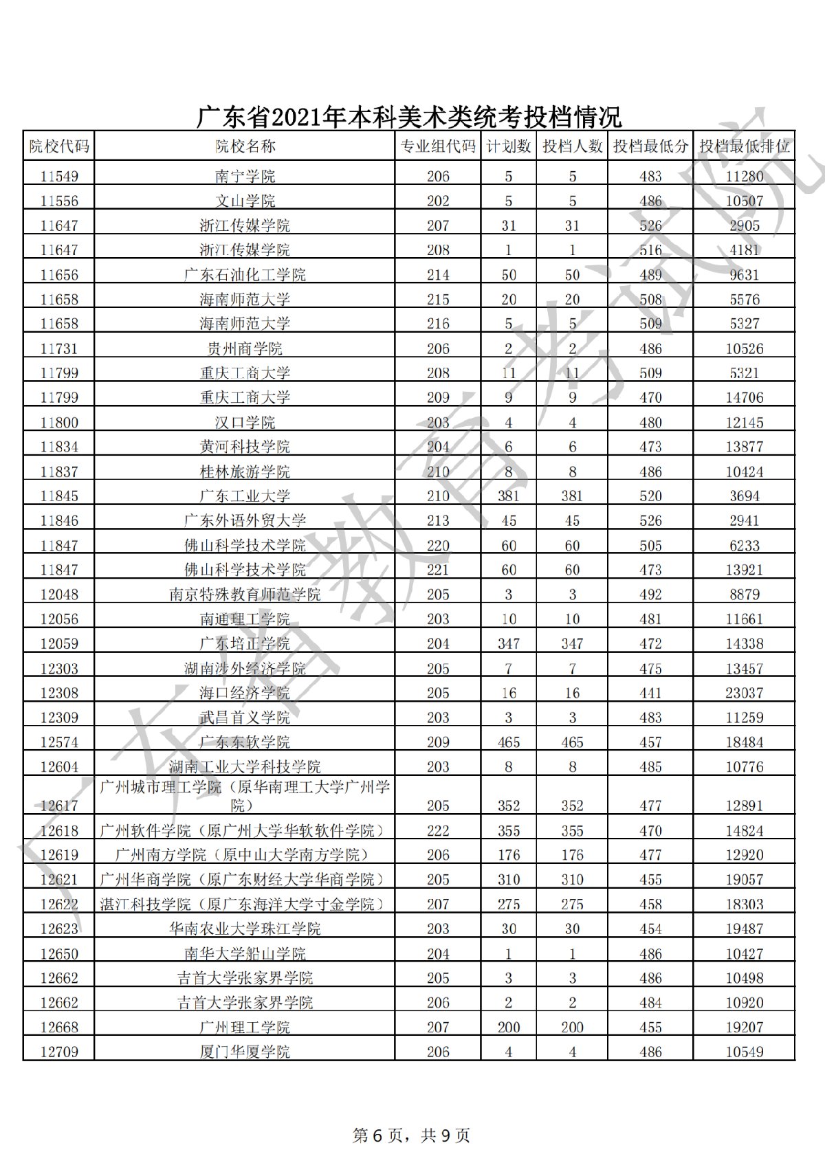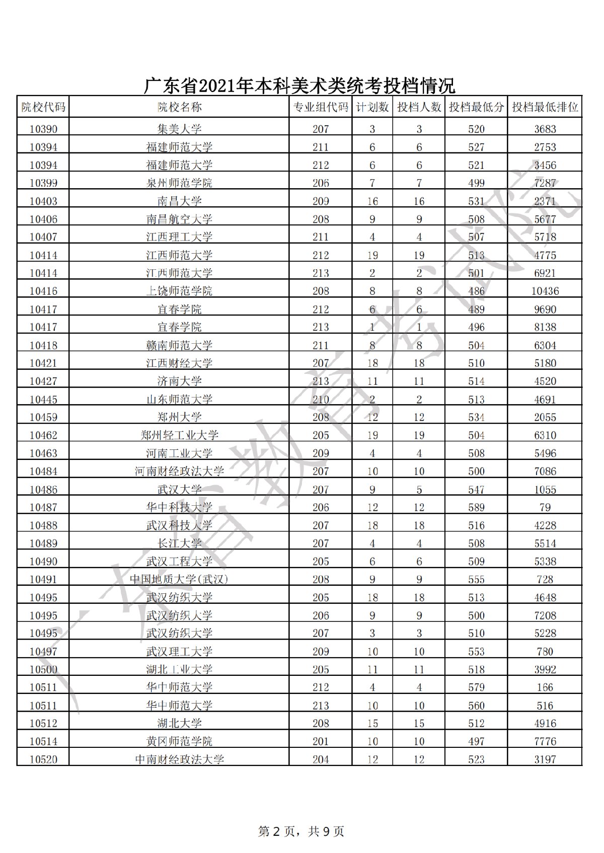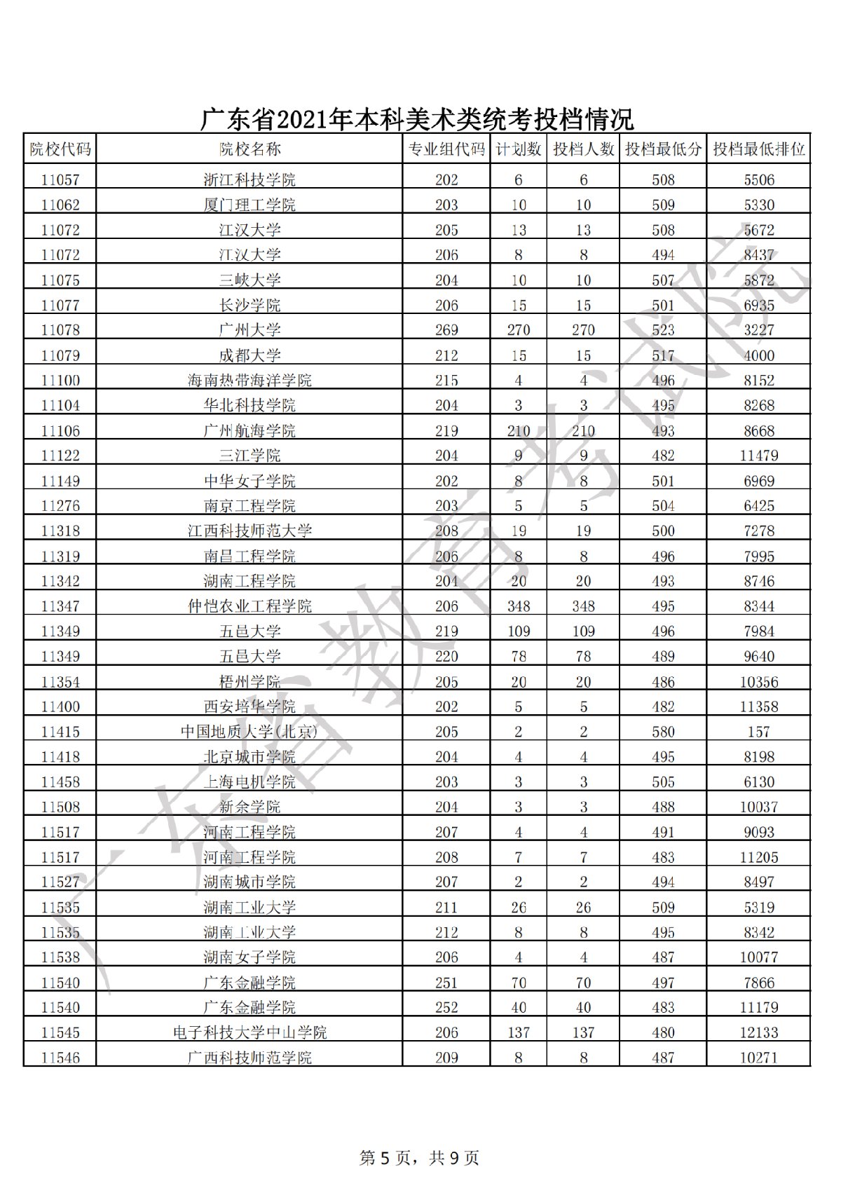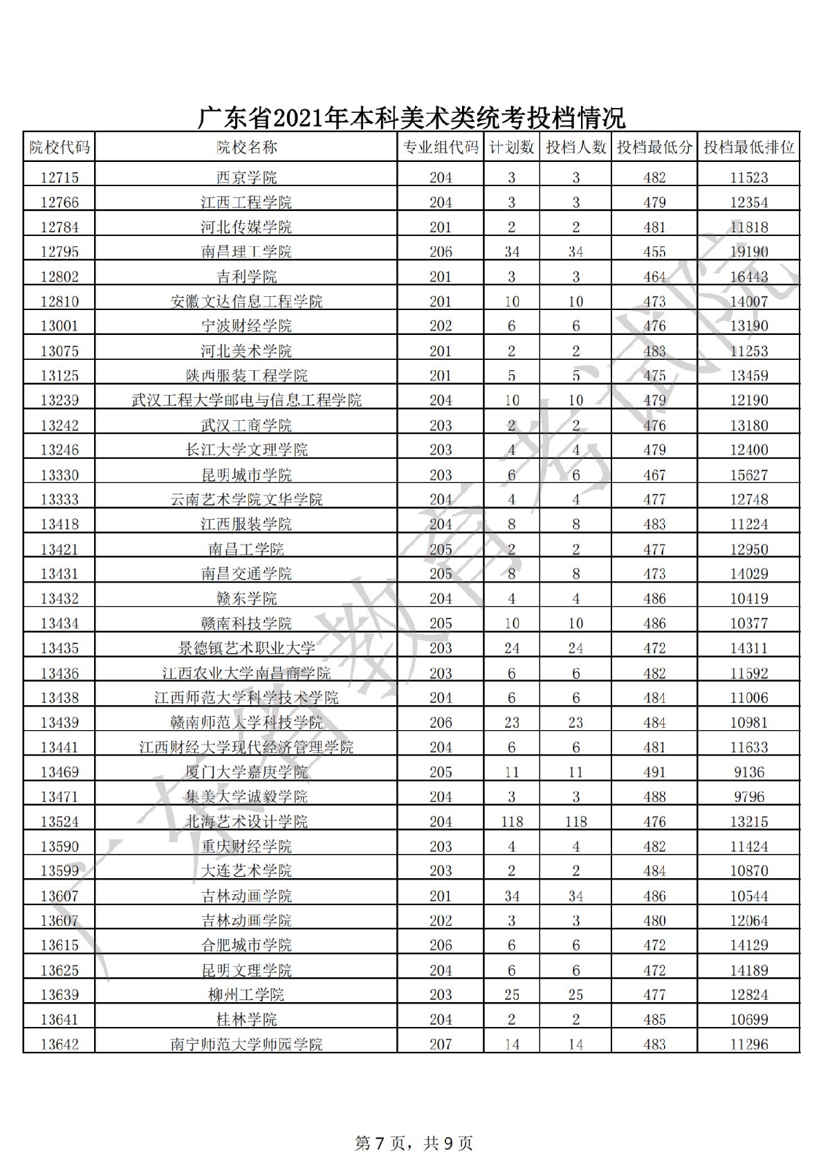 2021广东省本科美术类统考投档情况 2021广东省本科美术类统考投档情况分析