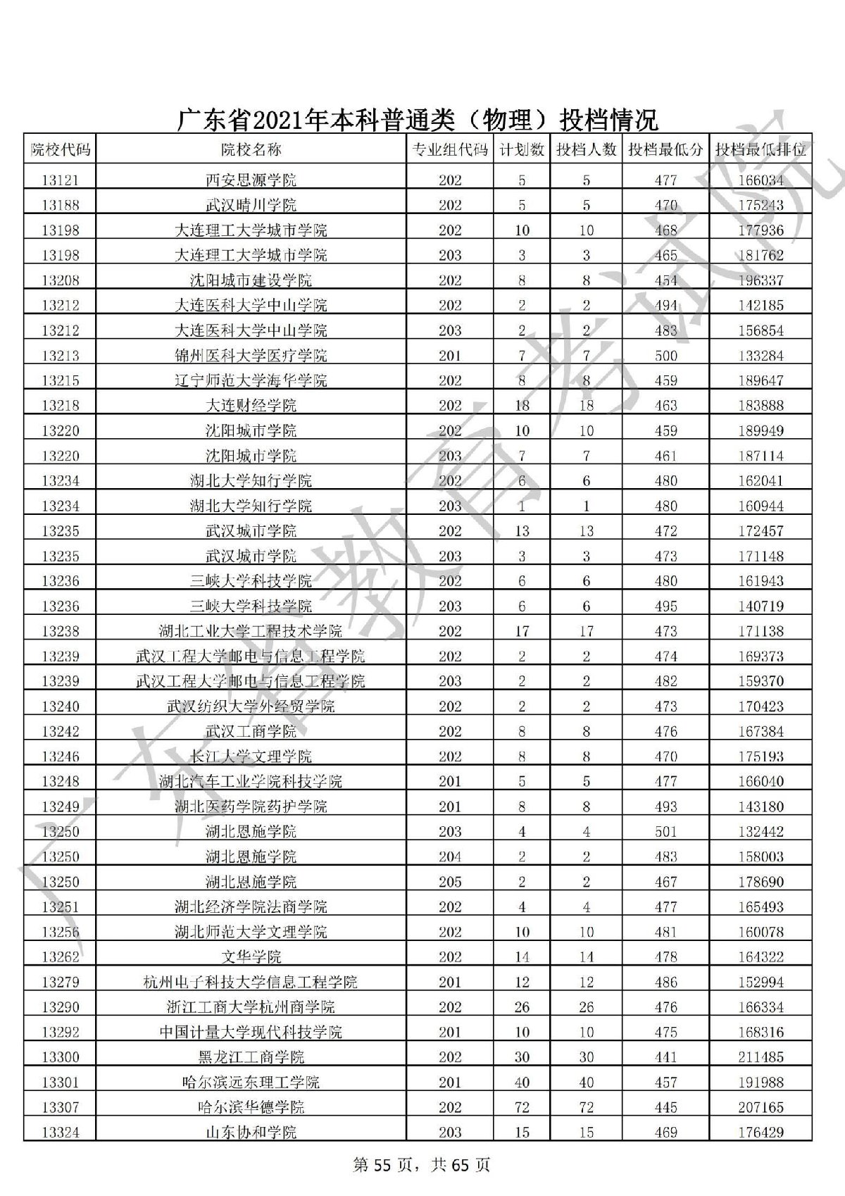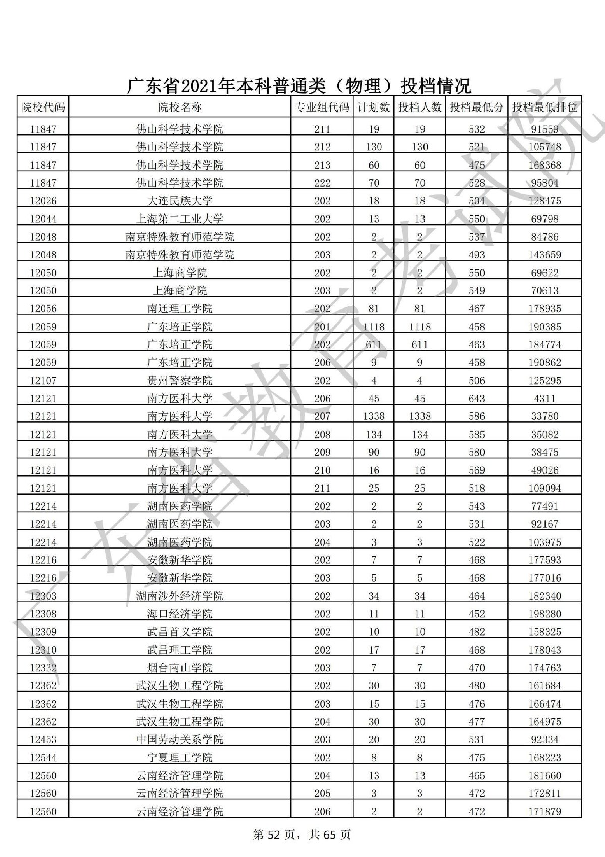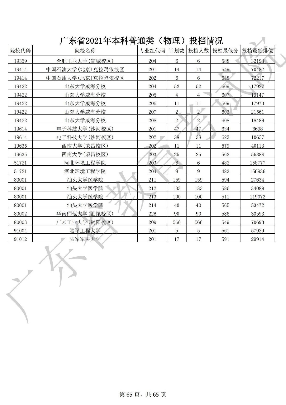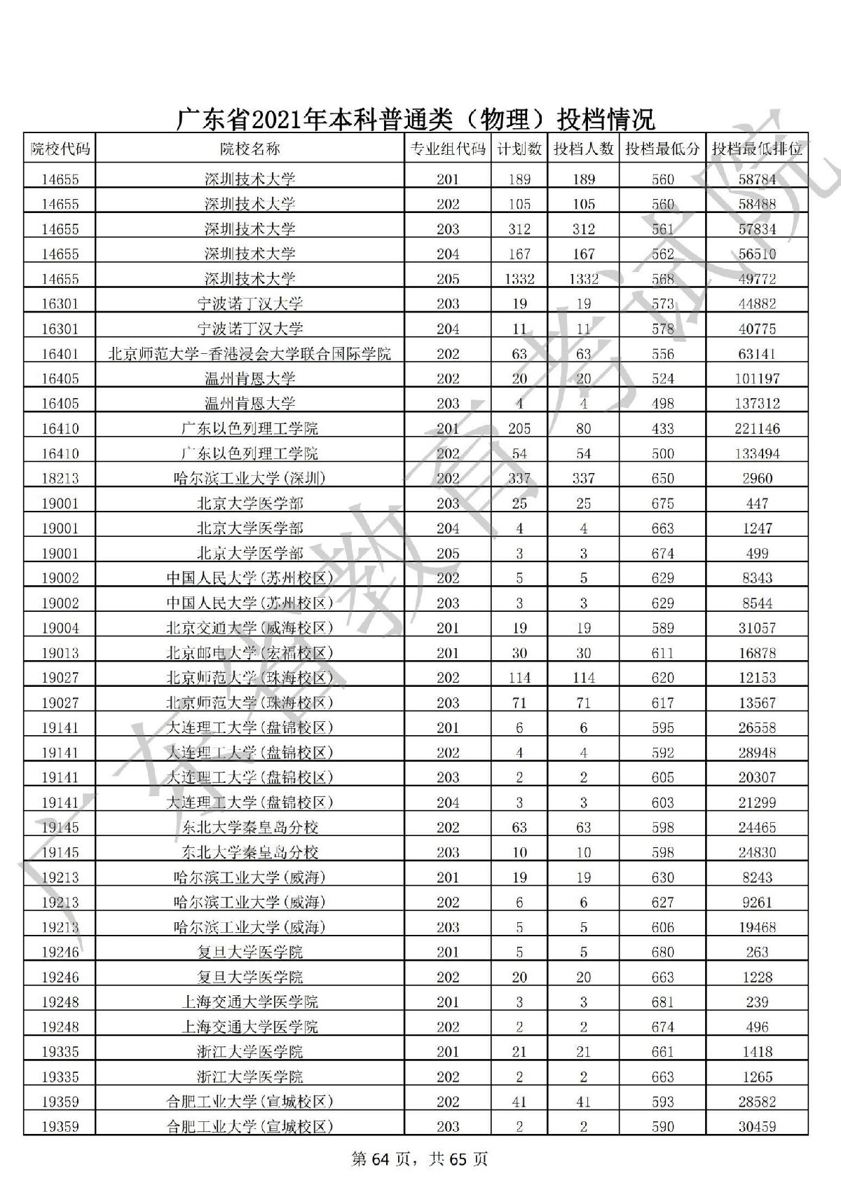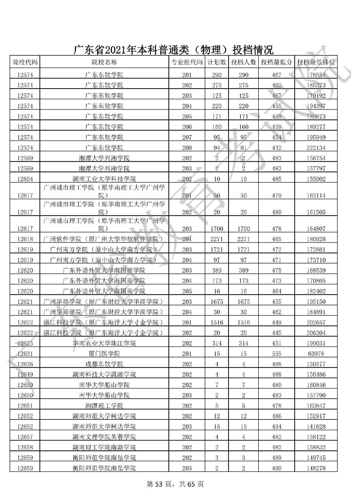 广东省2021年本科普通类 广东省2021年本科普通类(物理投档情况