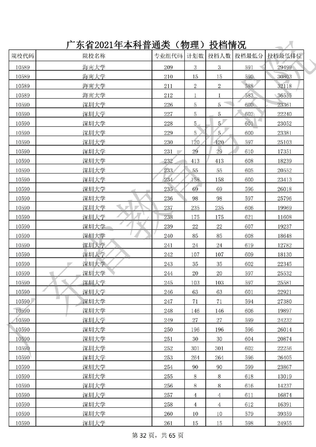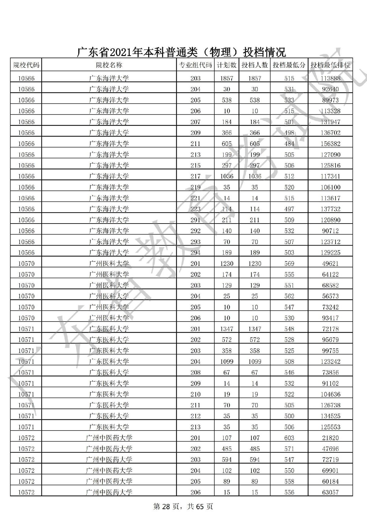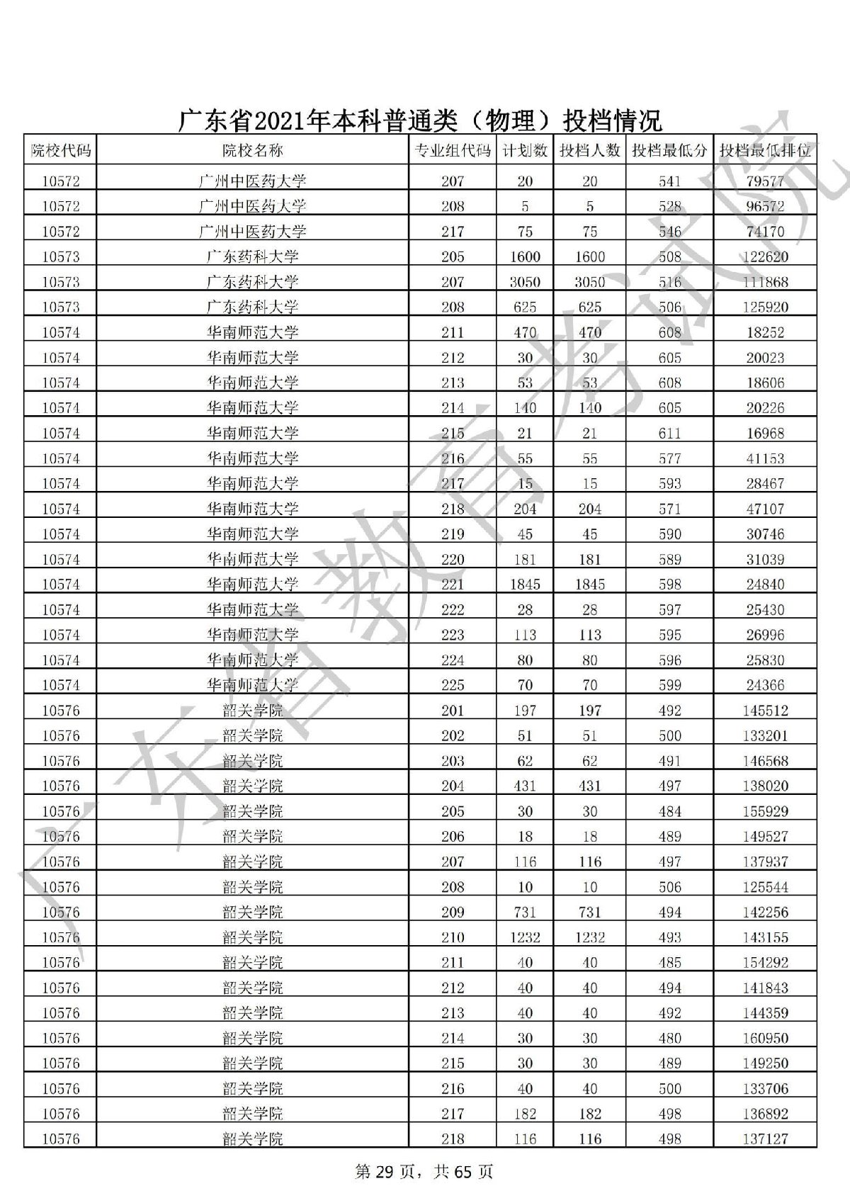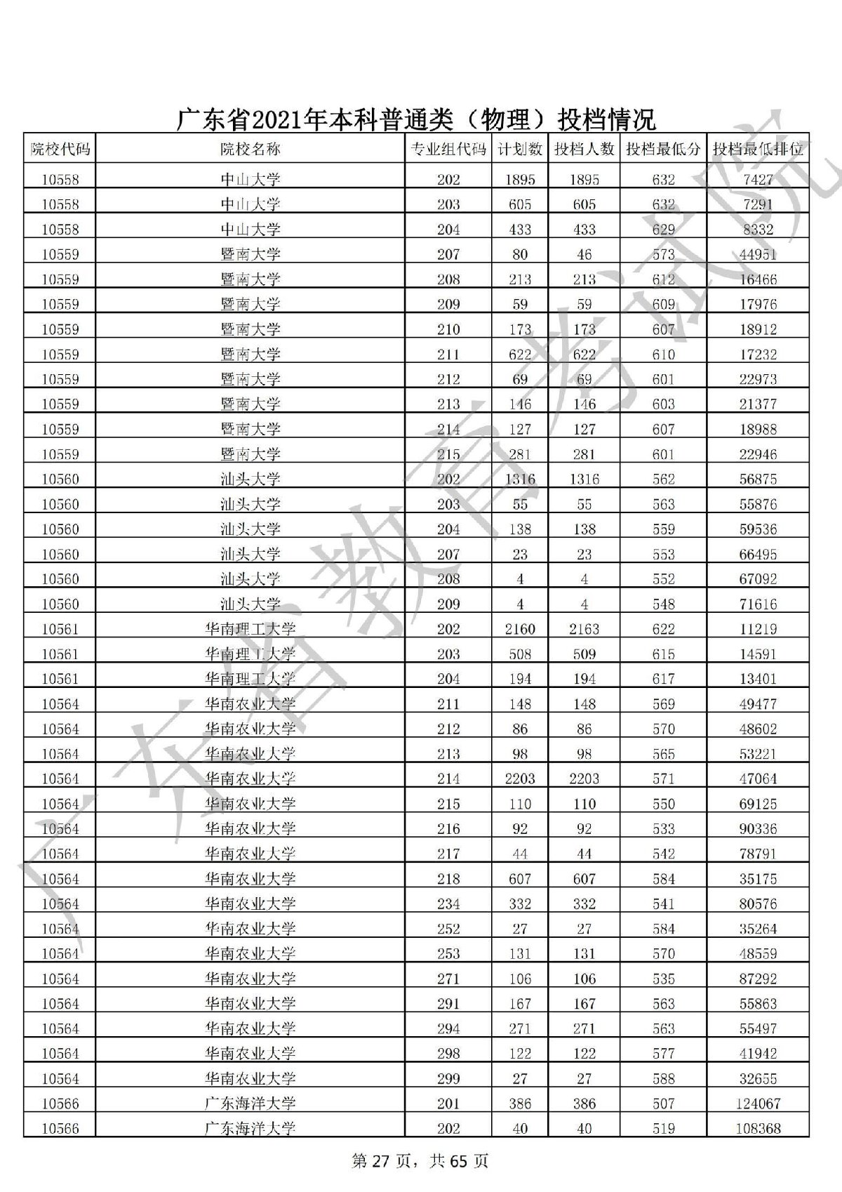 广东省2021年本科普通类 广东省2021年本科普通类(物理投档情况