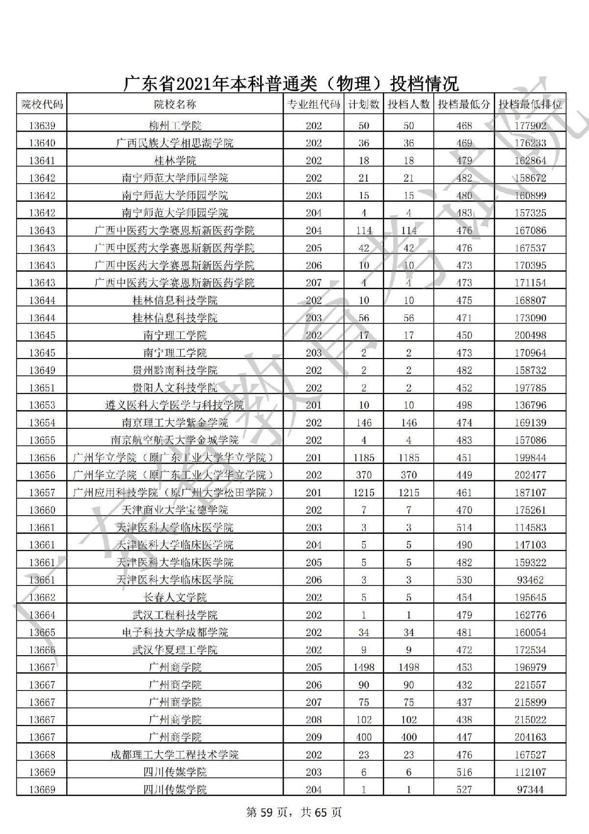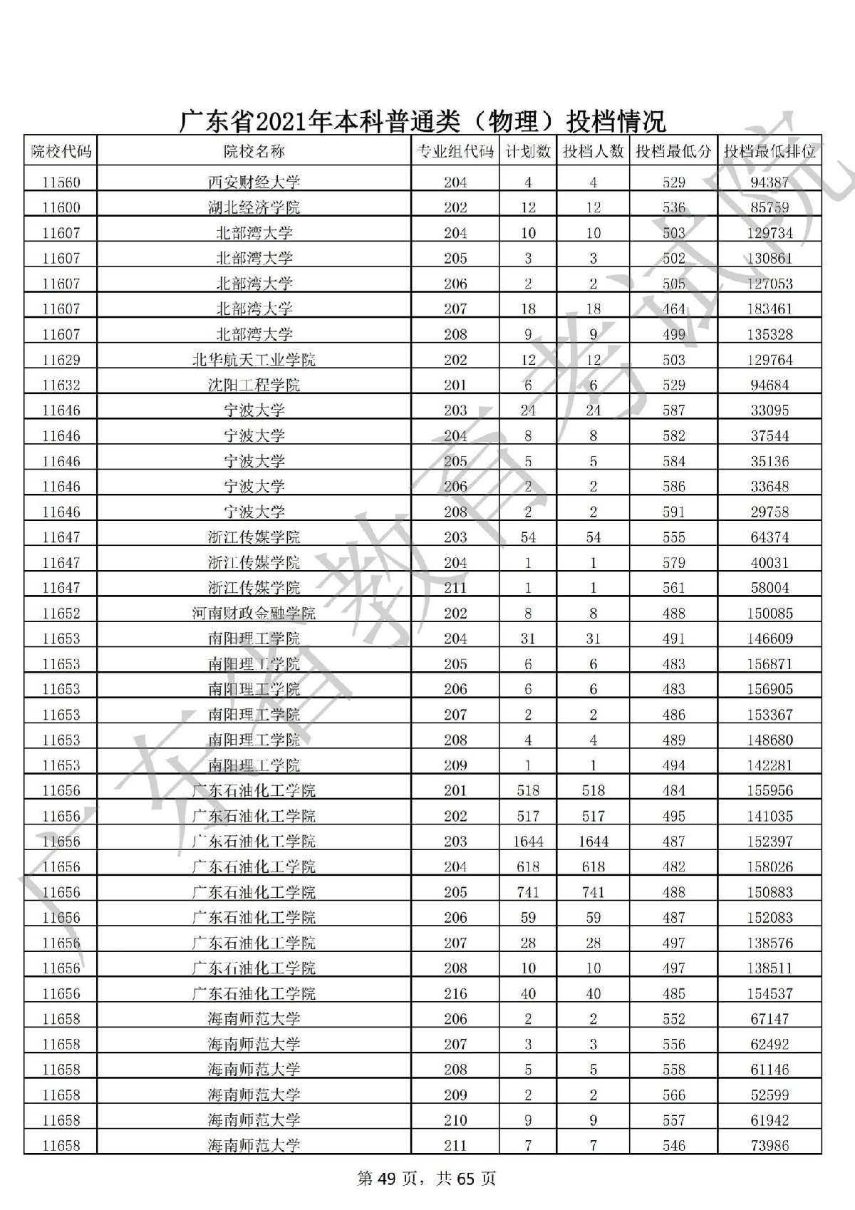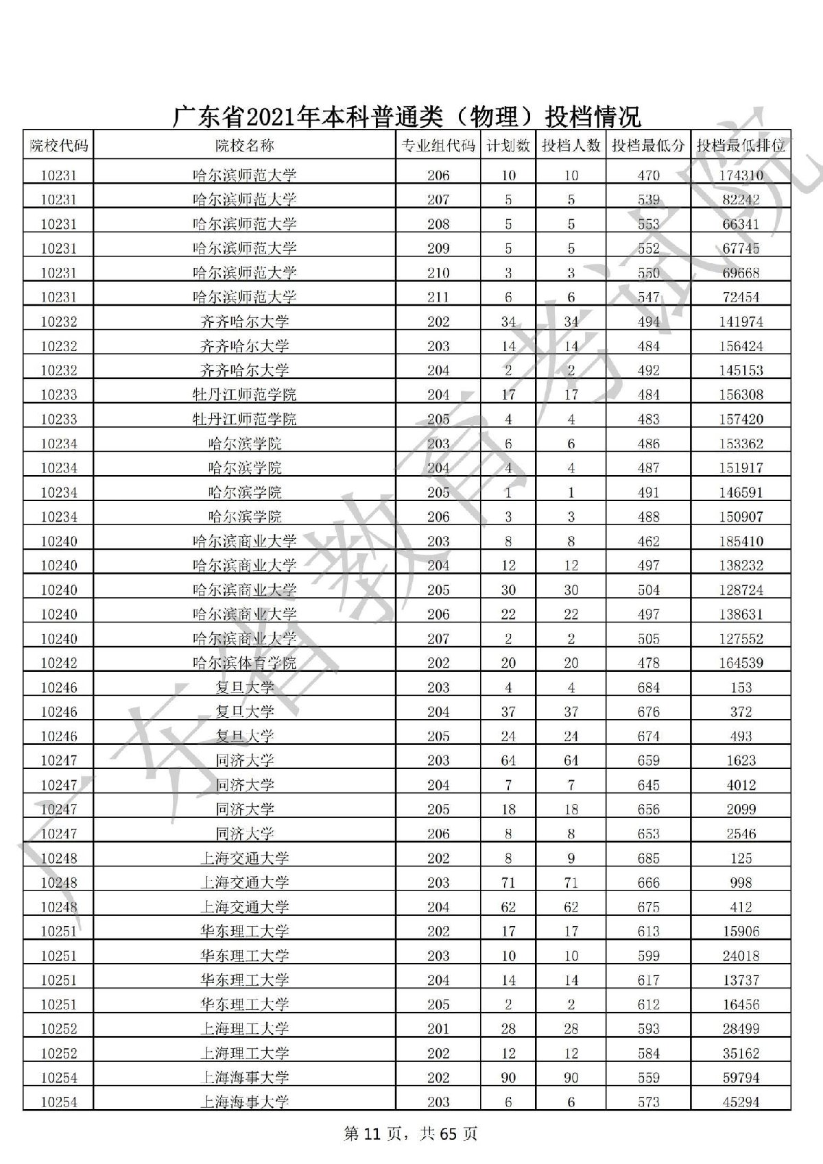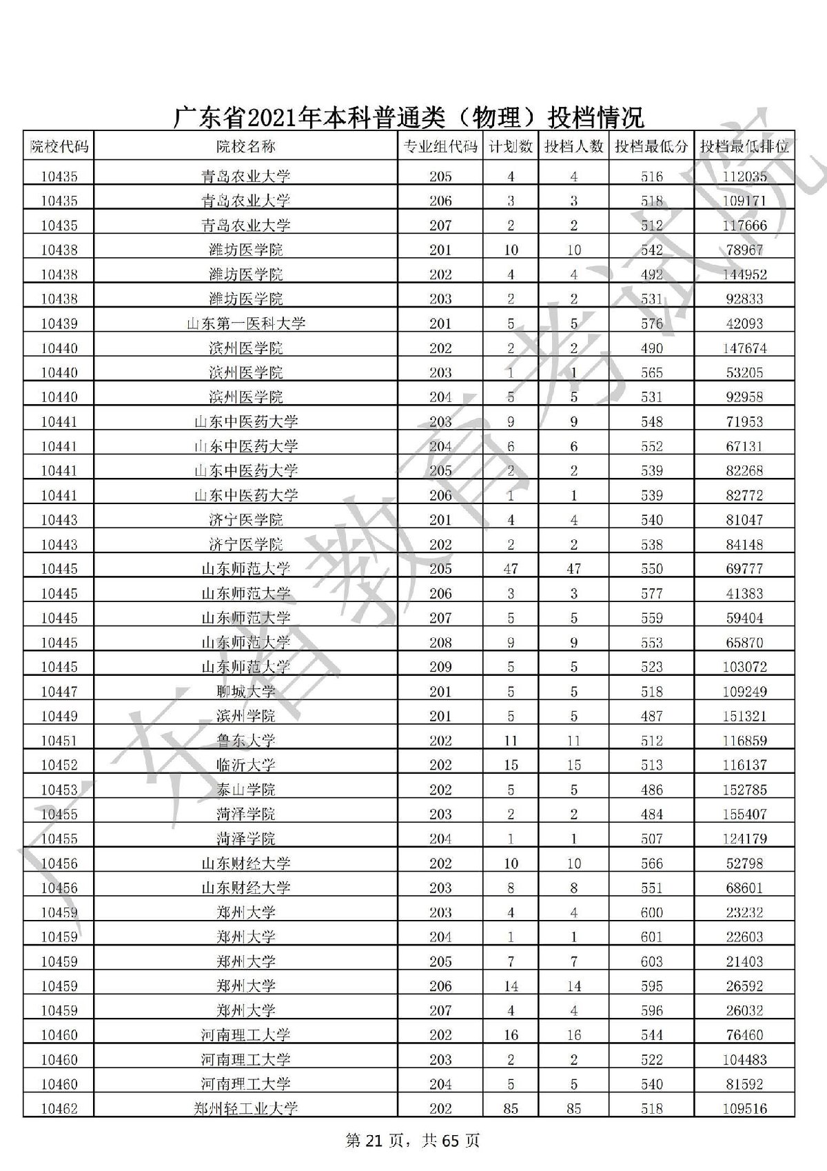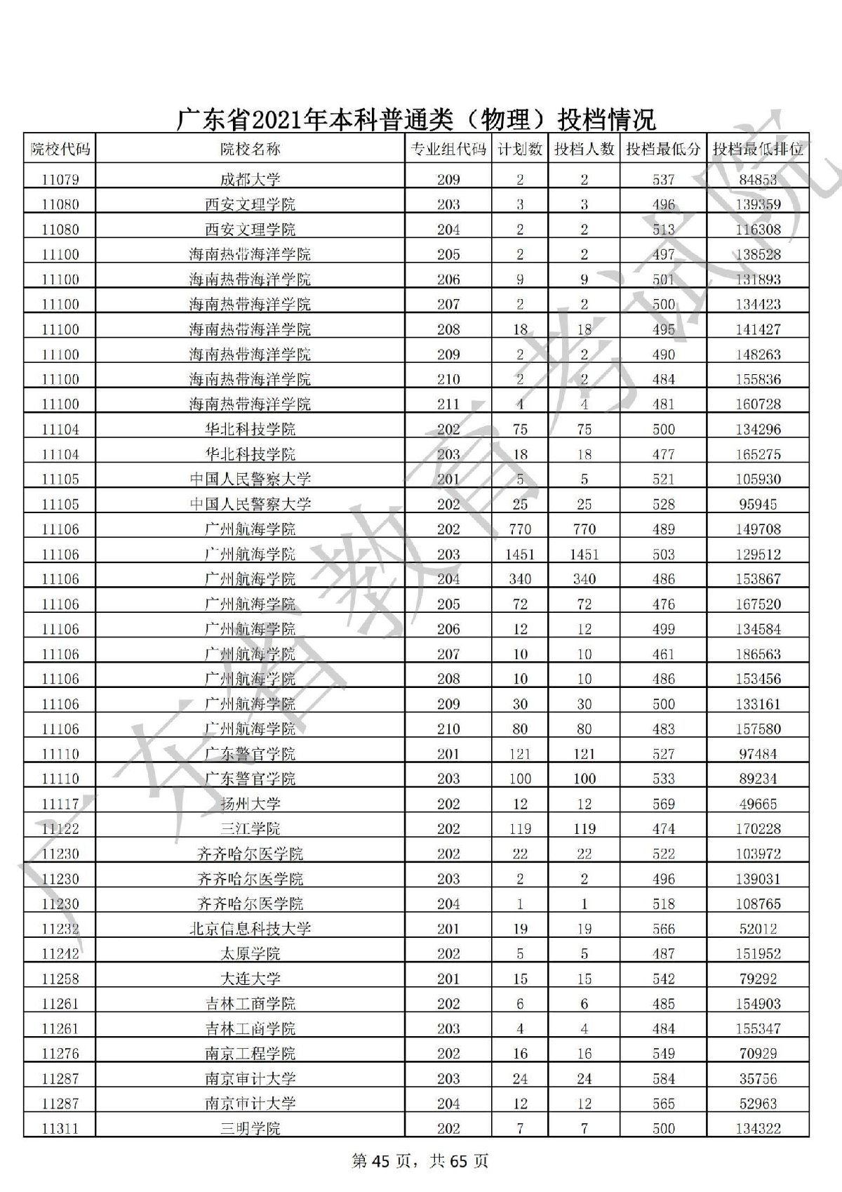 广东省2021年本科普通类 广东省2021年本科普通类(物理投档情况