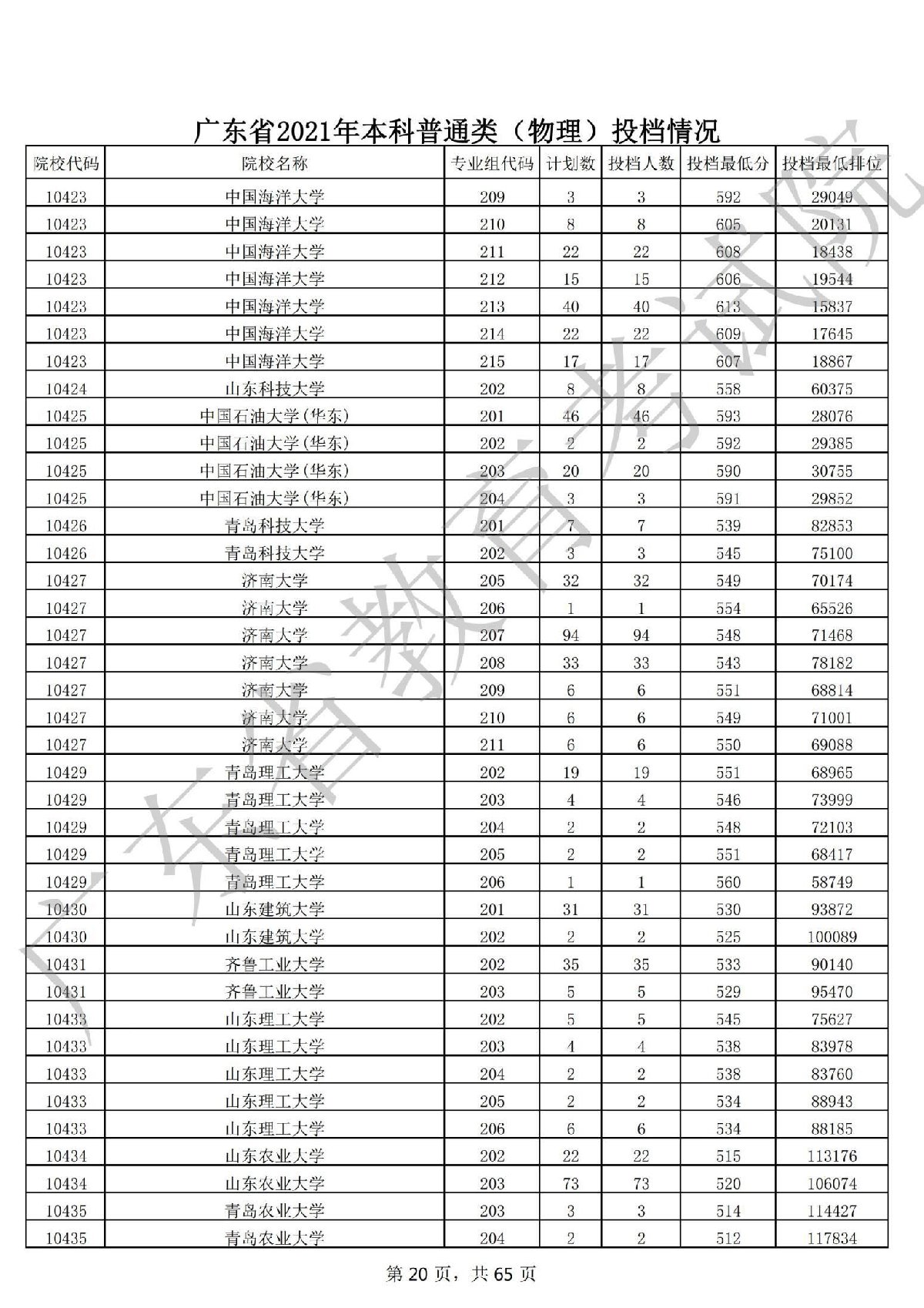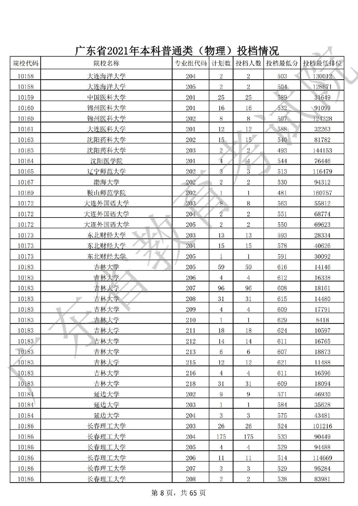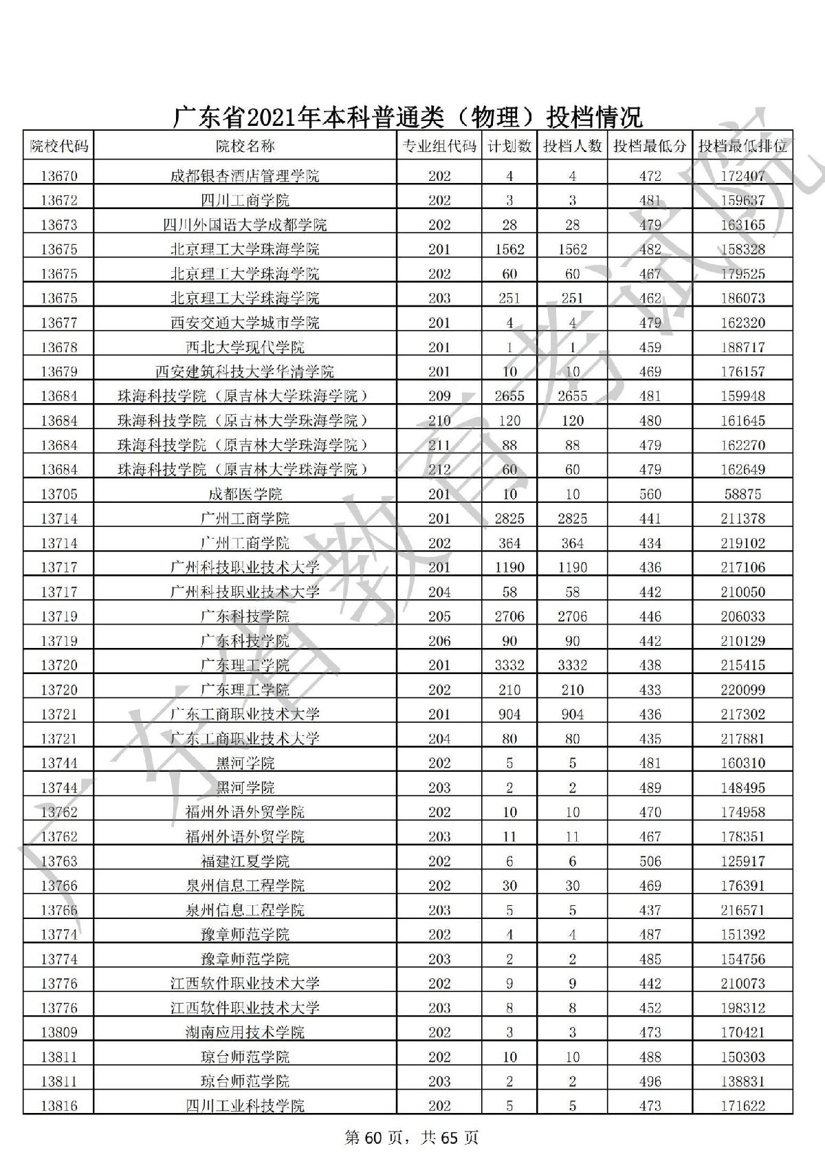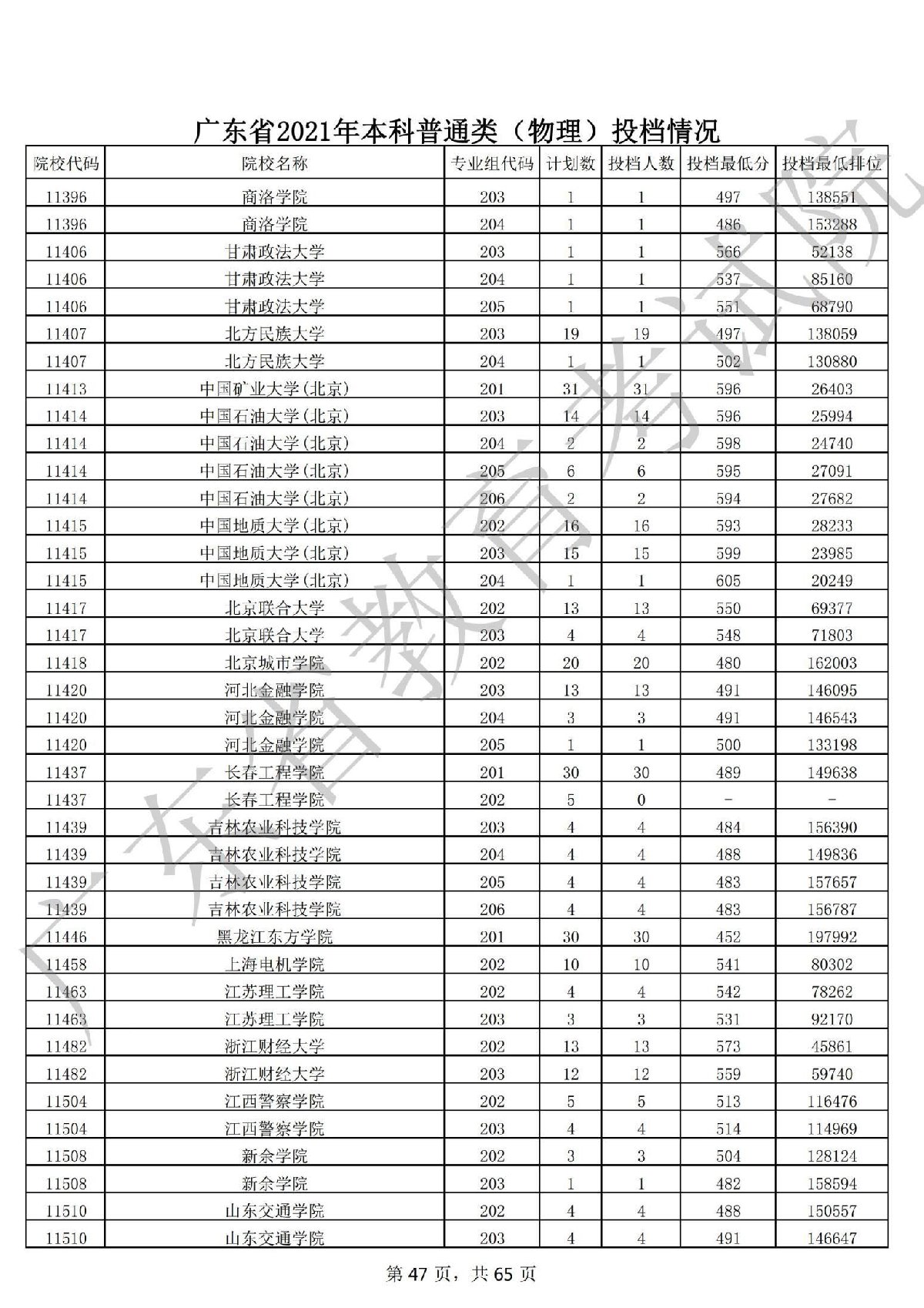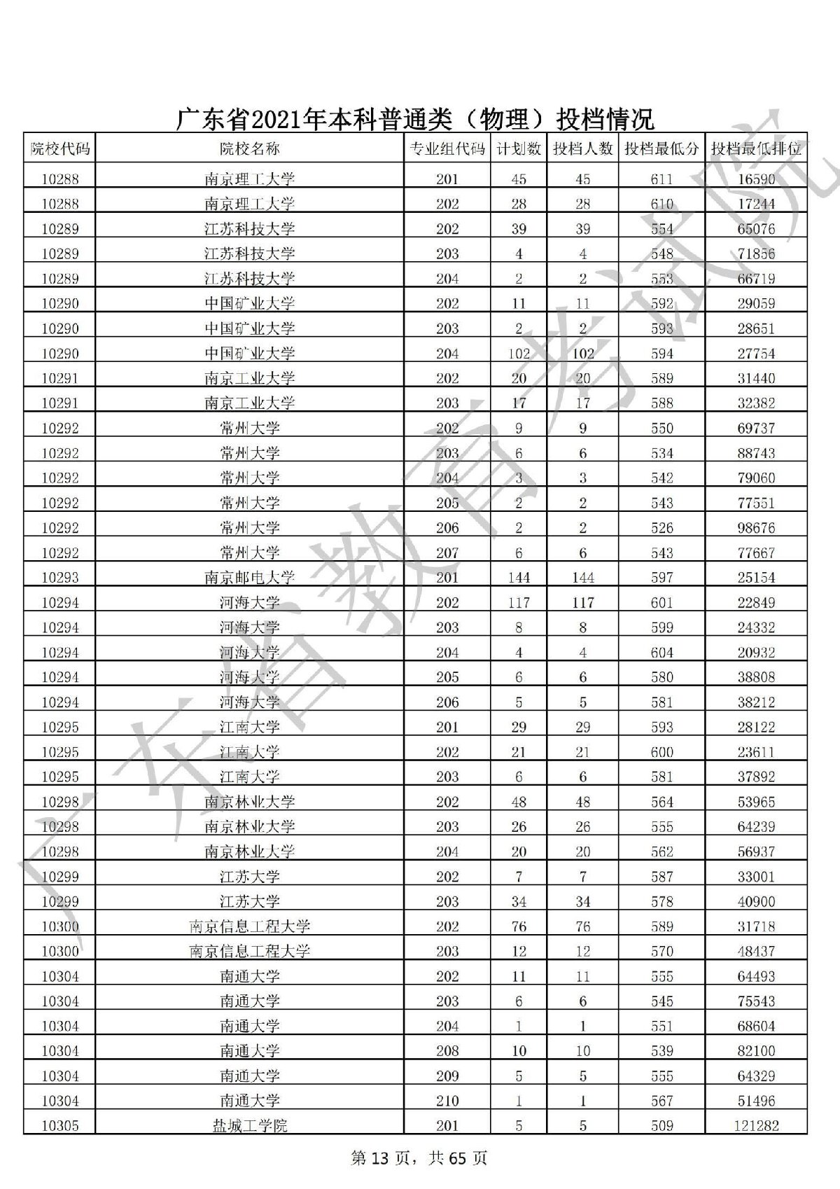 广东省2021年本科普通类 广东省2021年本科普通类(物理投档情况