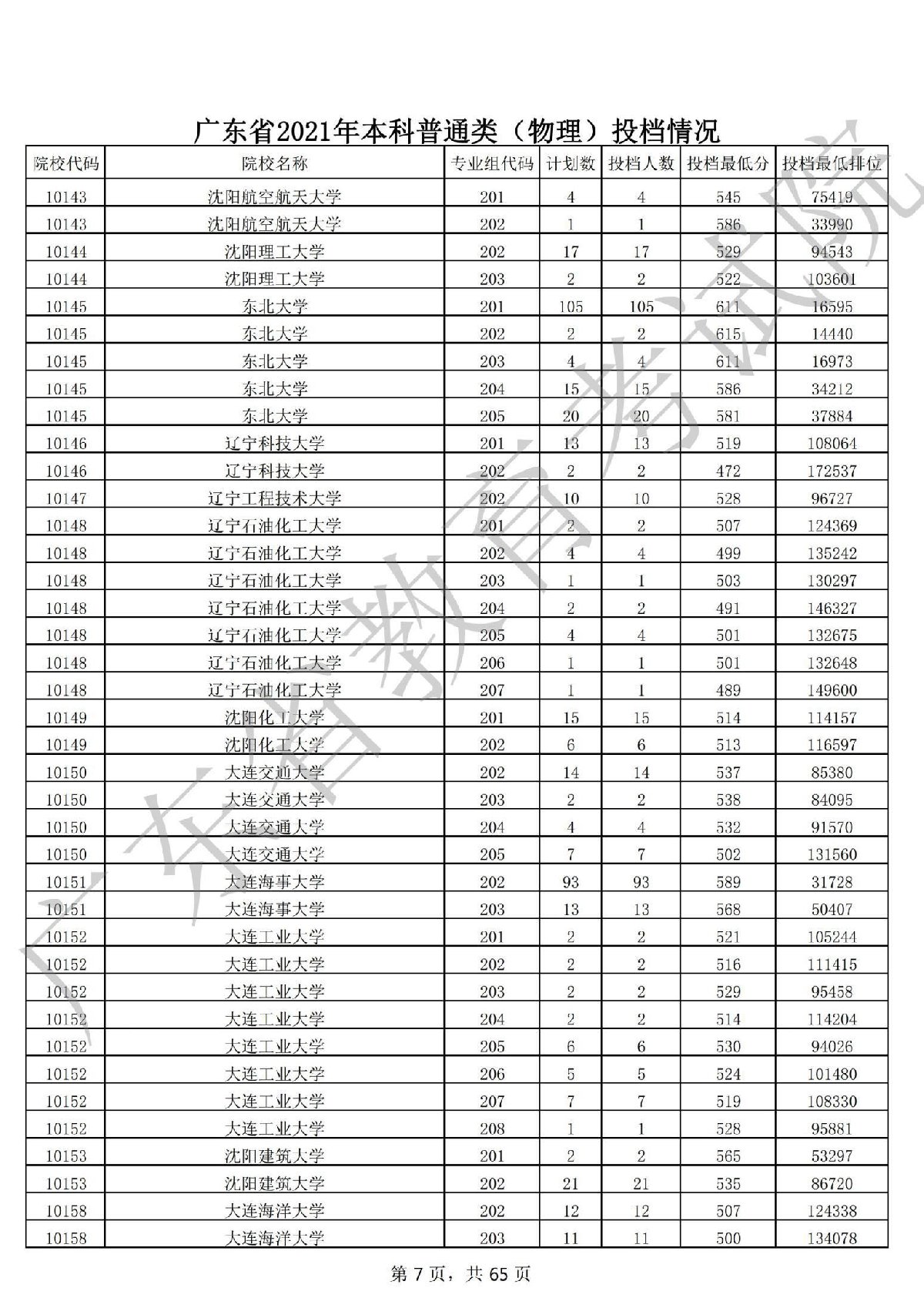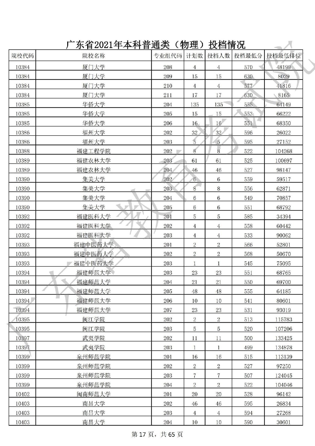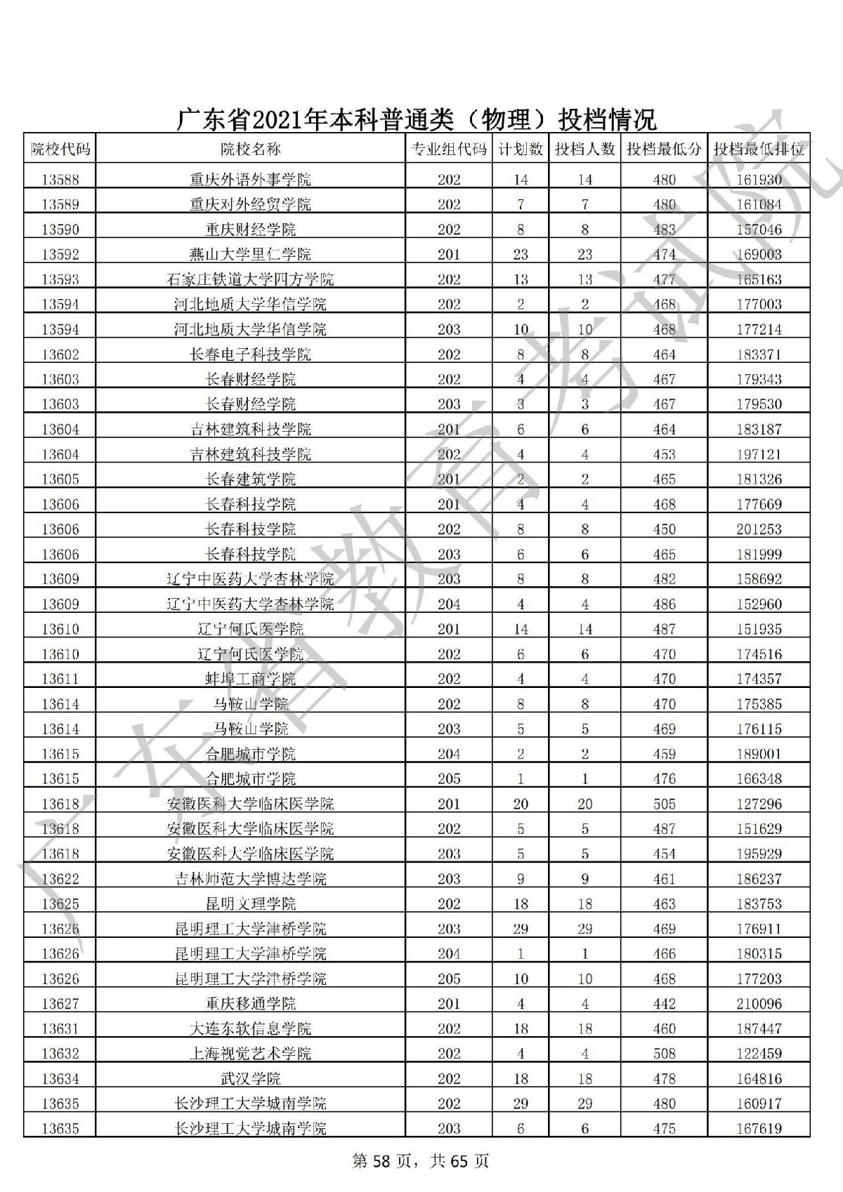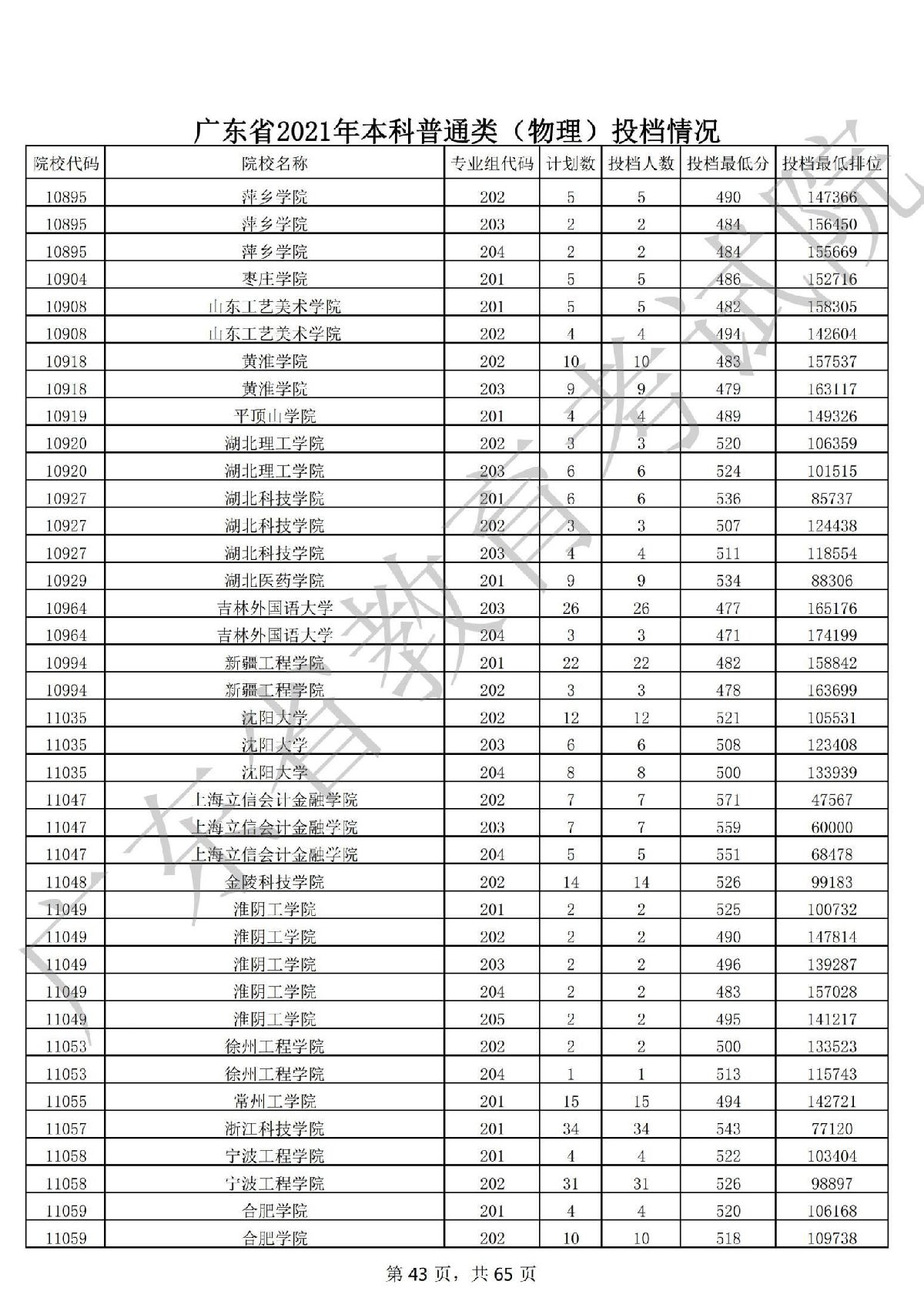广东省2021年本科普通类 广东省2021年本科普通类(物理投档情况