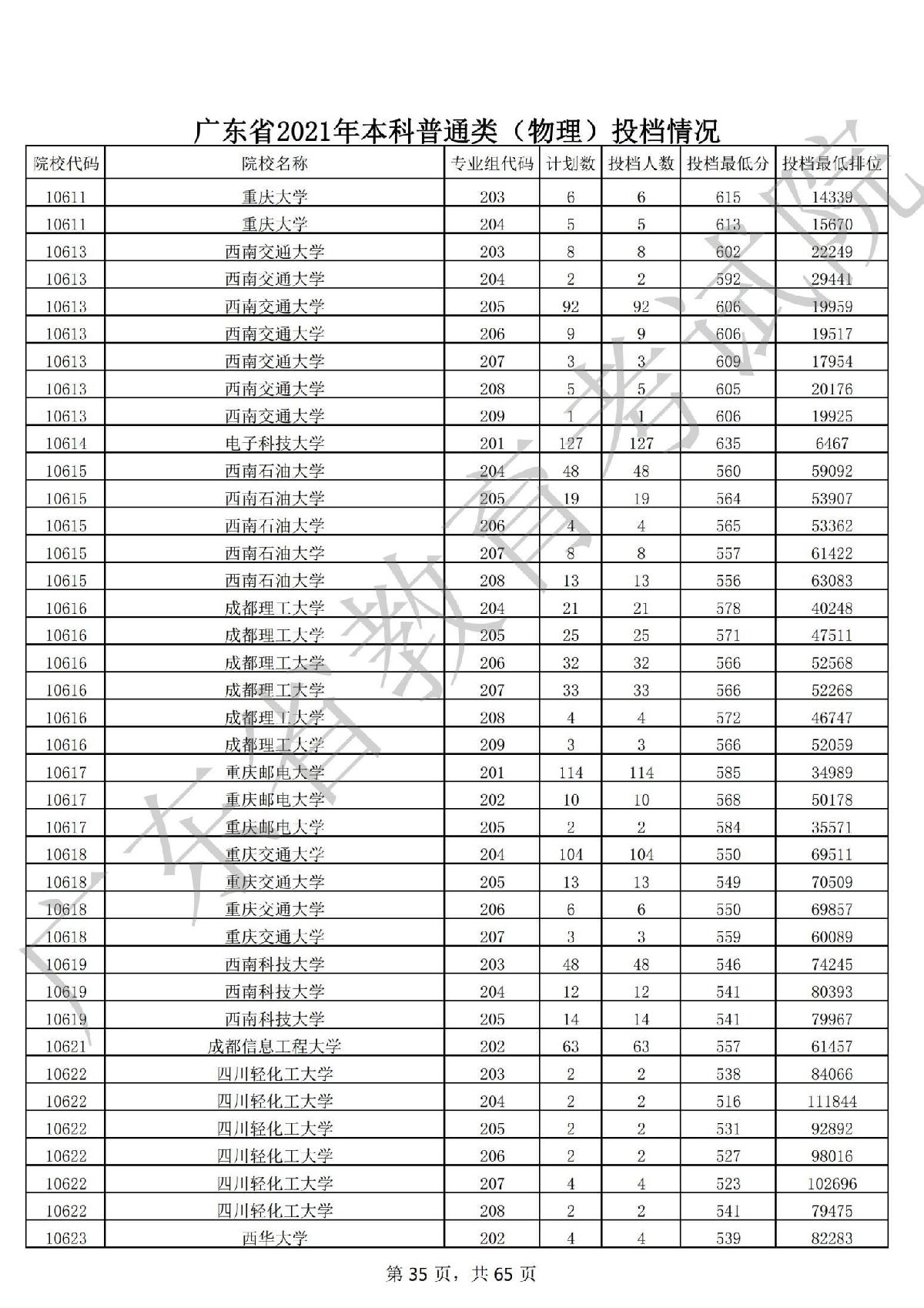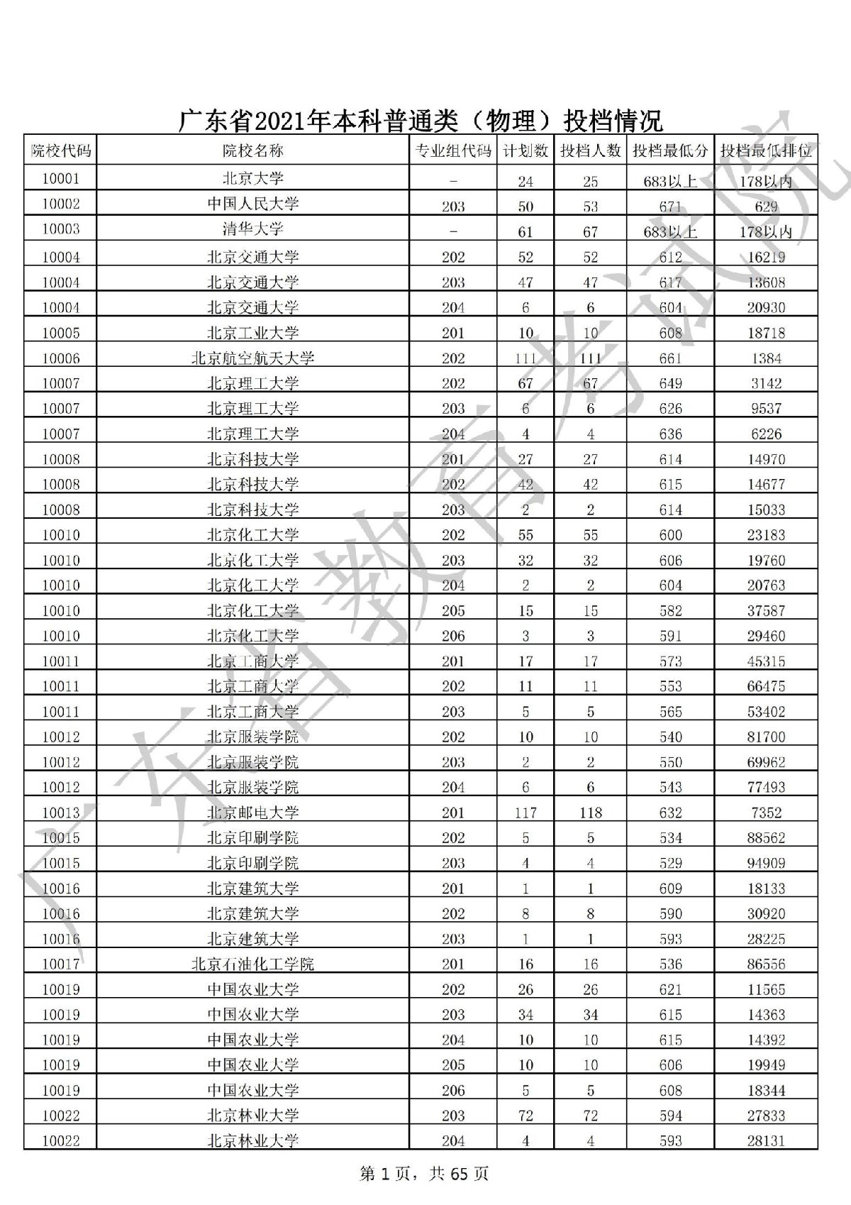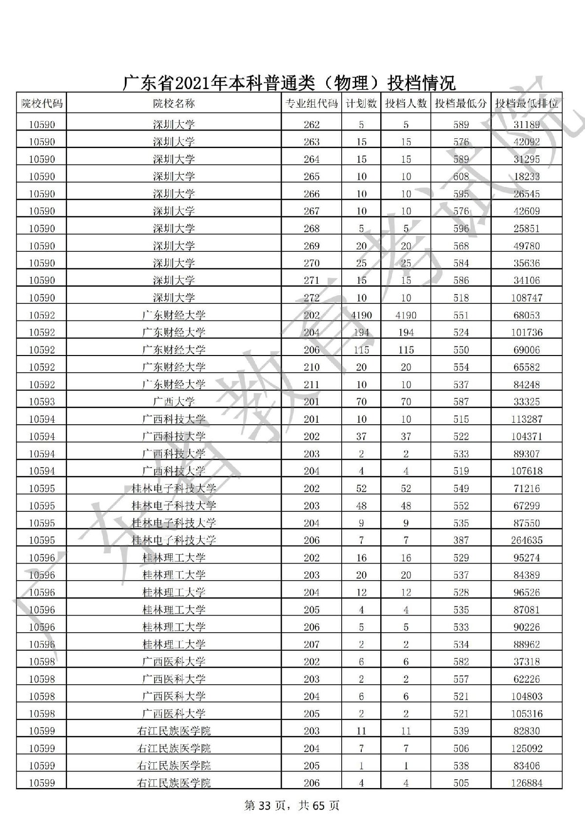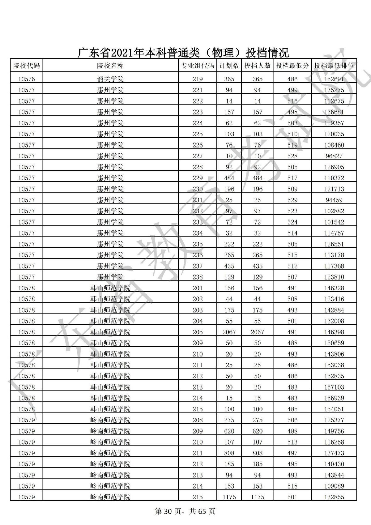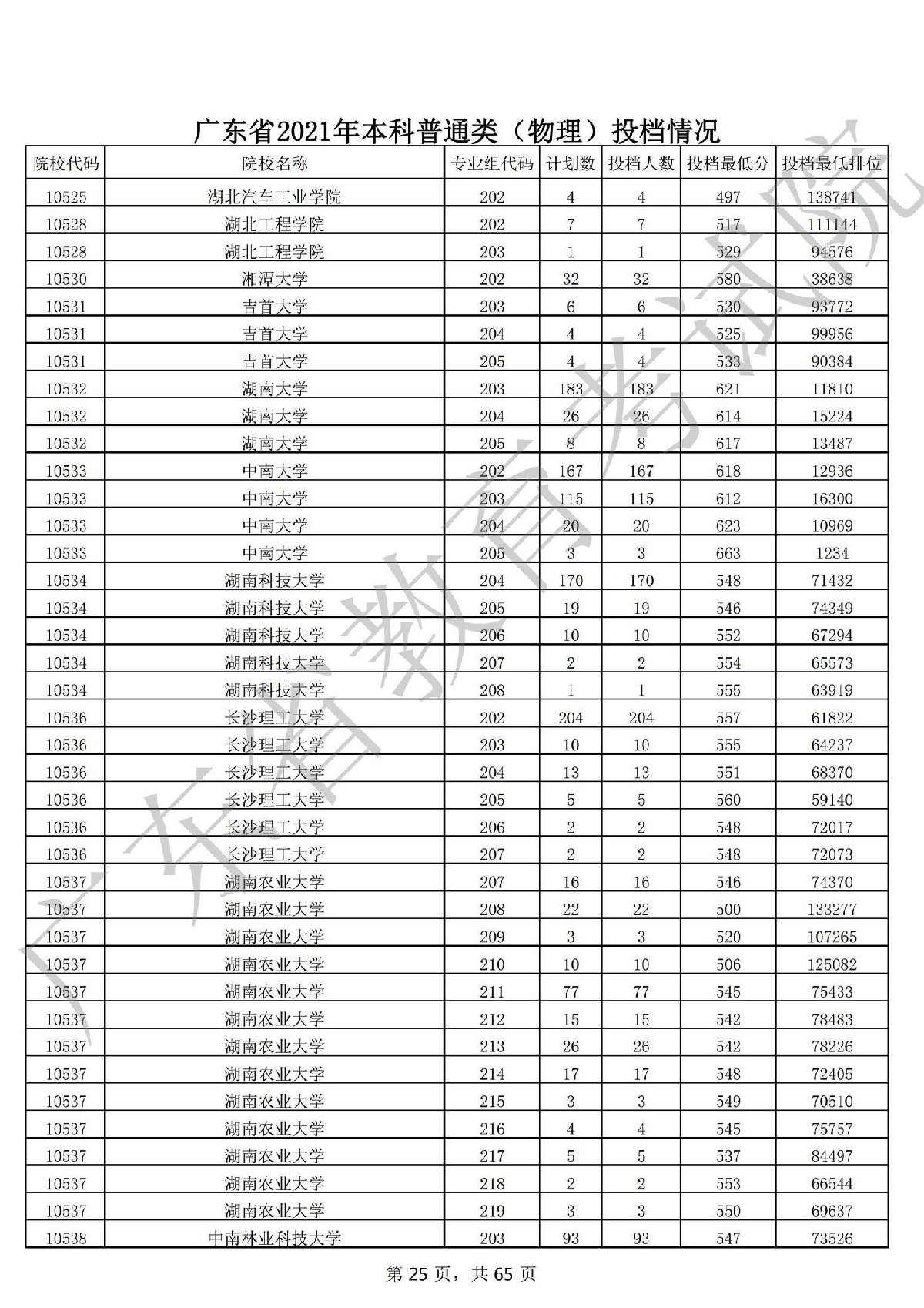 广东省2021年本科普通类 广东省2021年本科普通类(物理投档情况