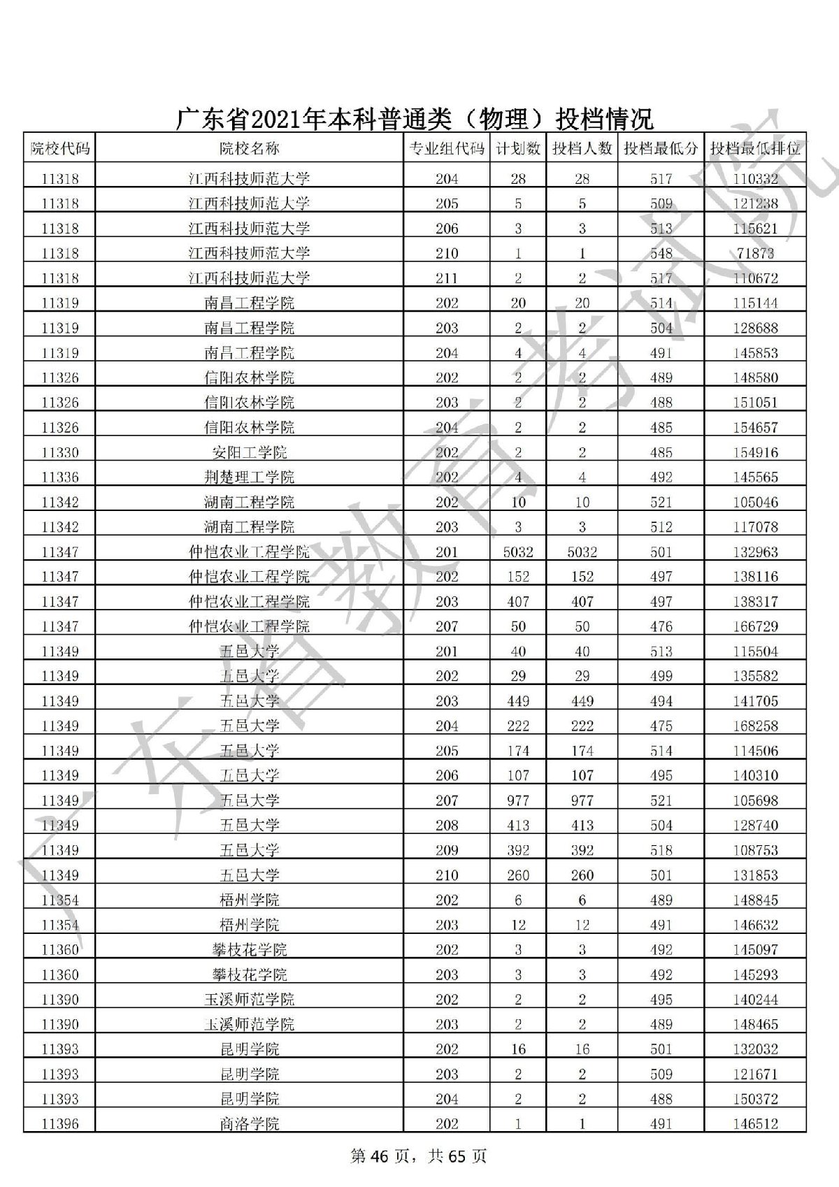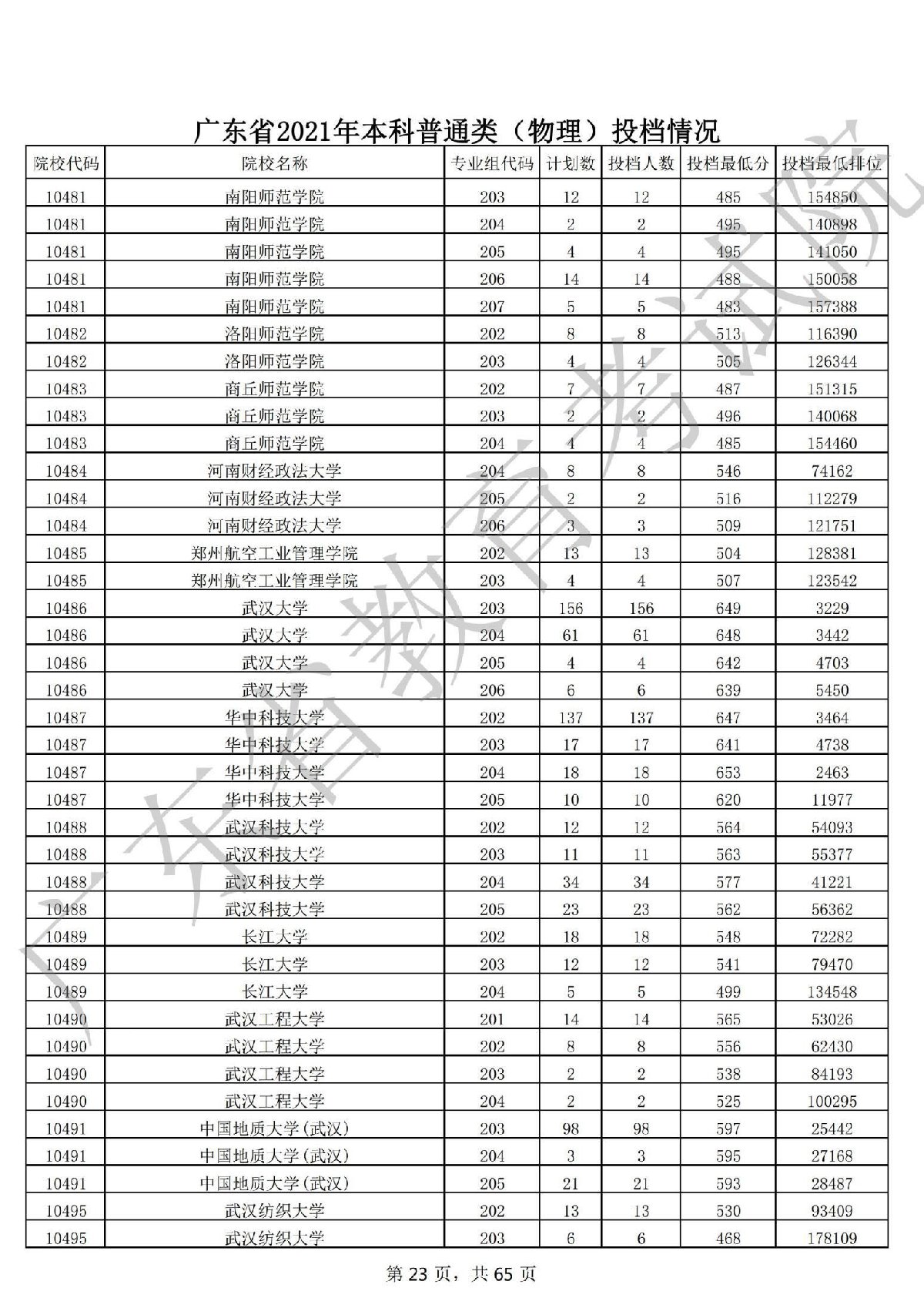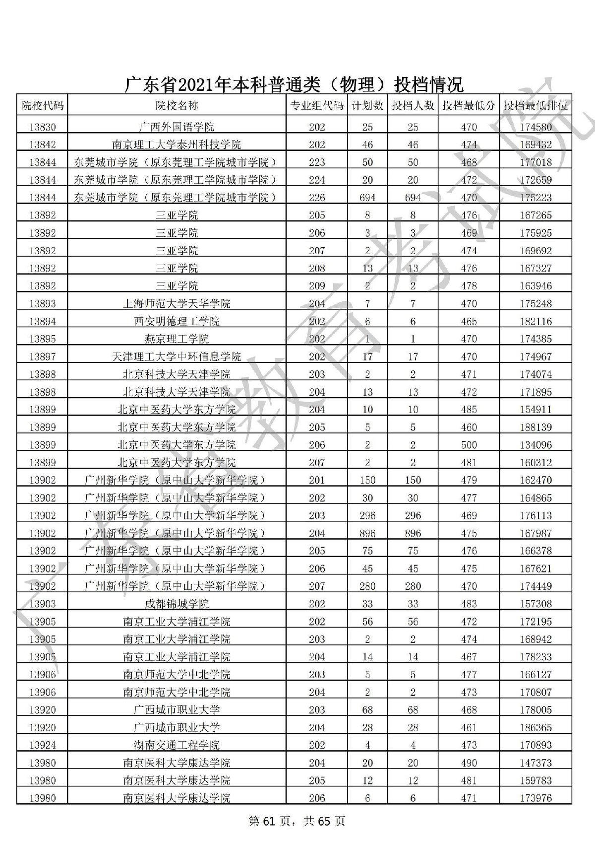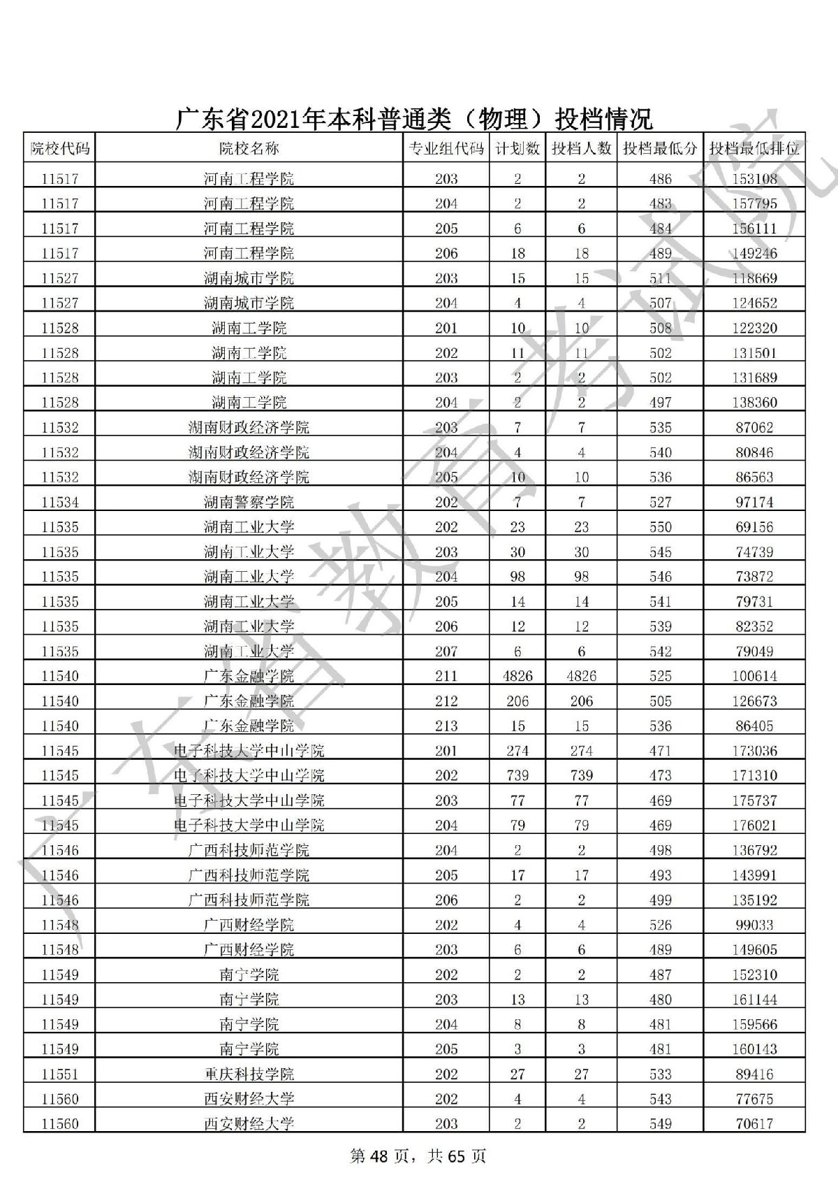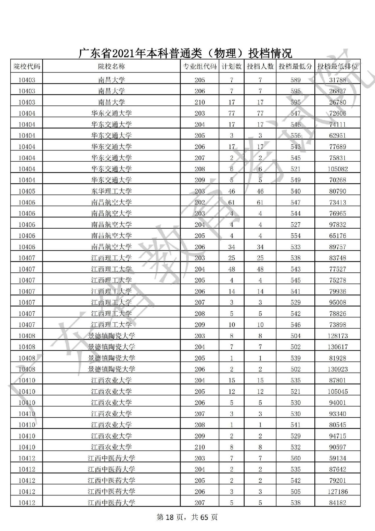 广东省2021年本科普通类 广东省2021年本科普通类(物理投档情况