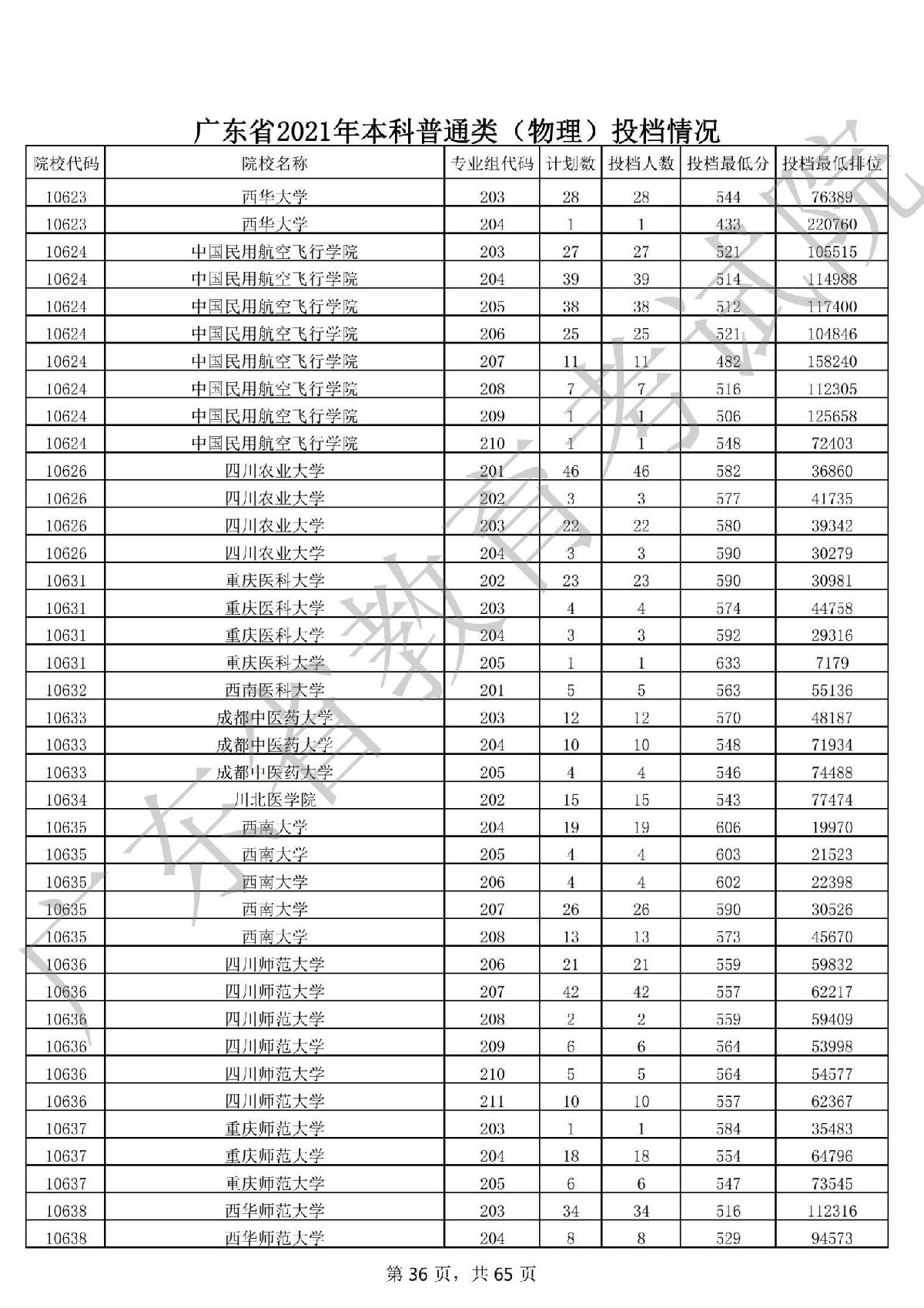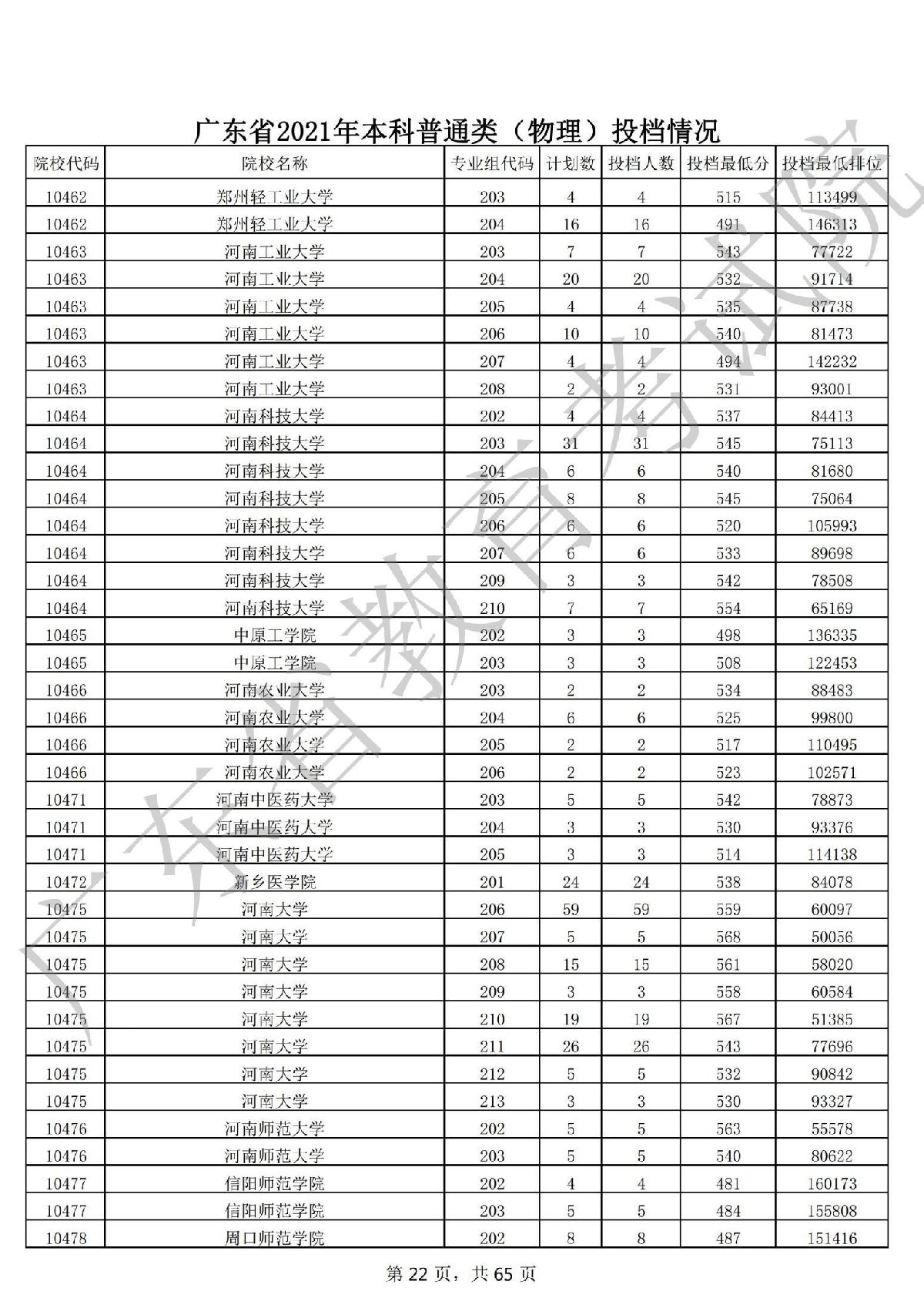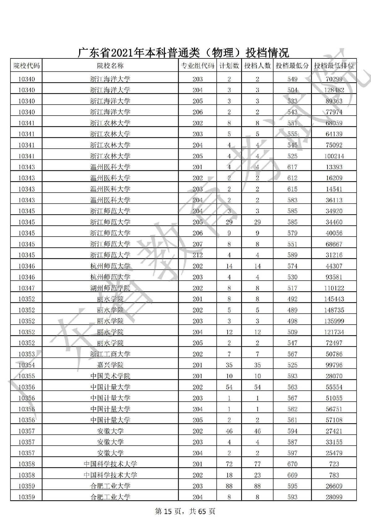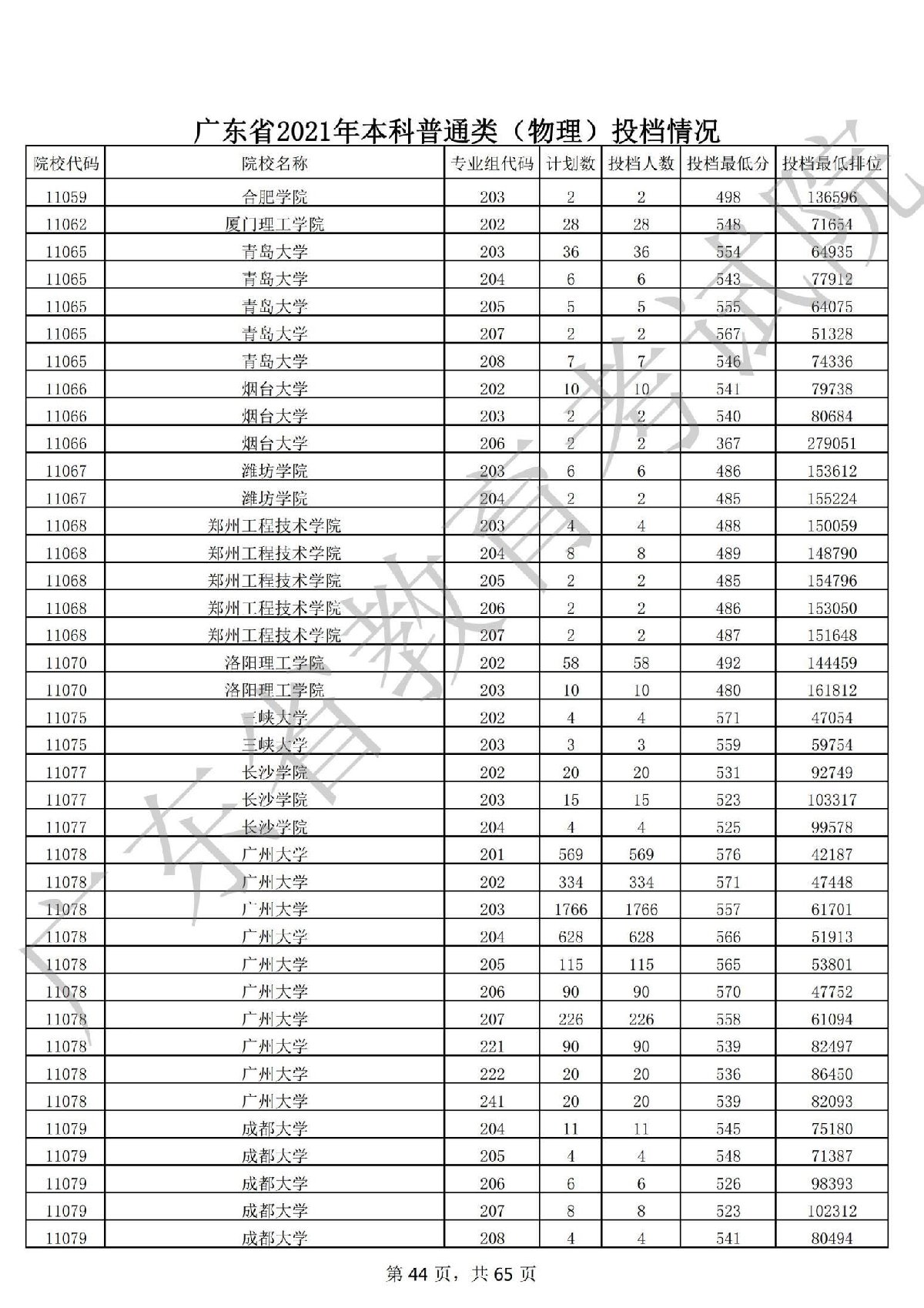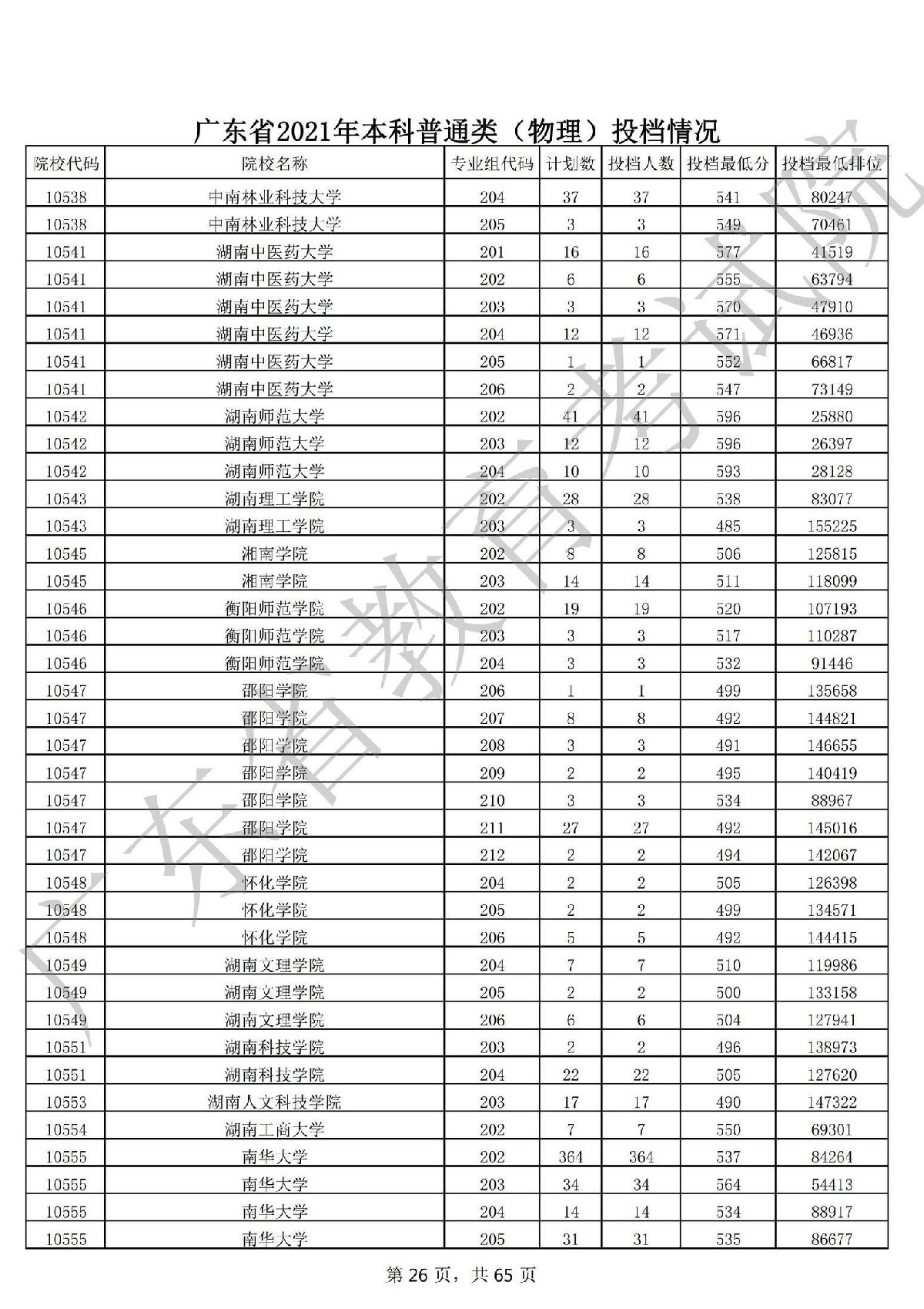 广东省2021年本科普通类 广东省2021年本科普通类(物理投档情况