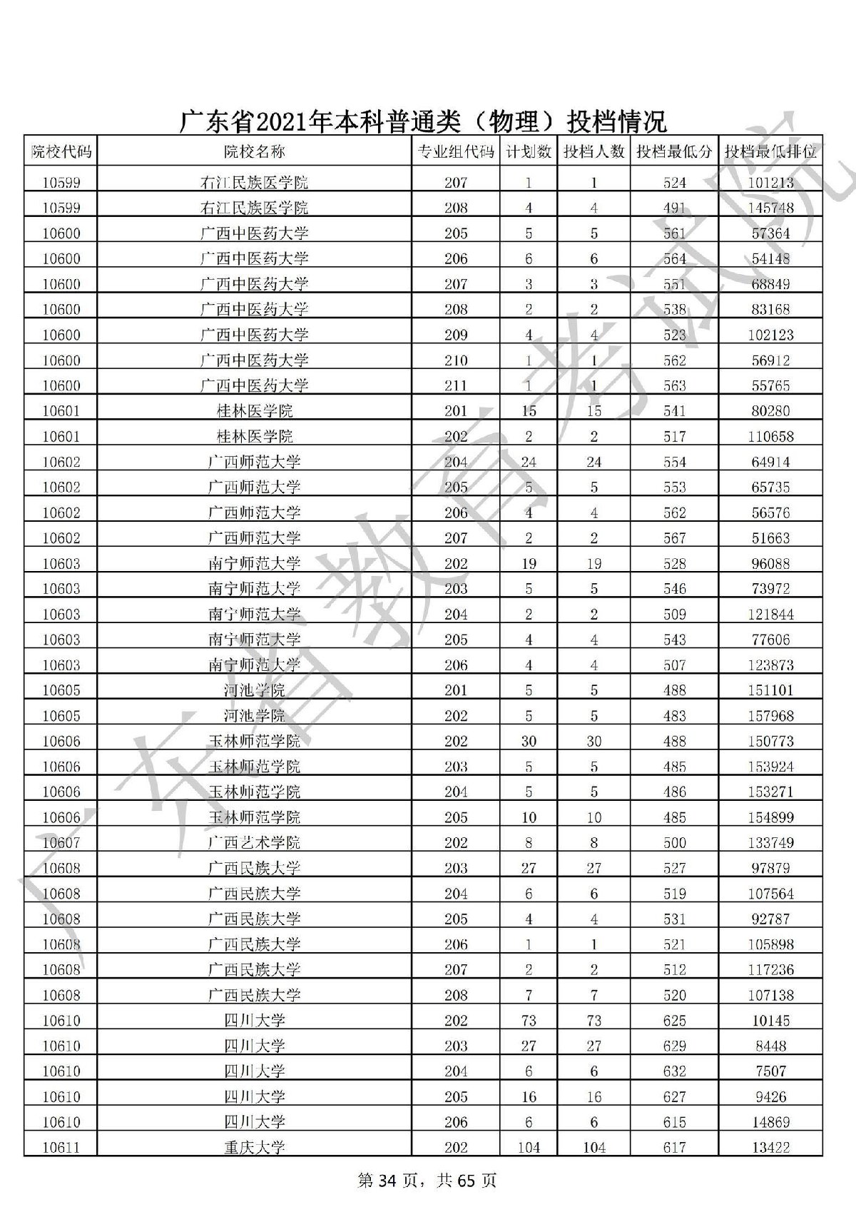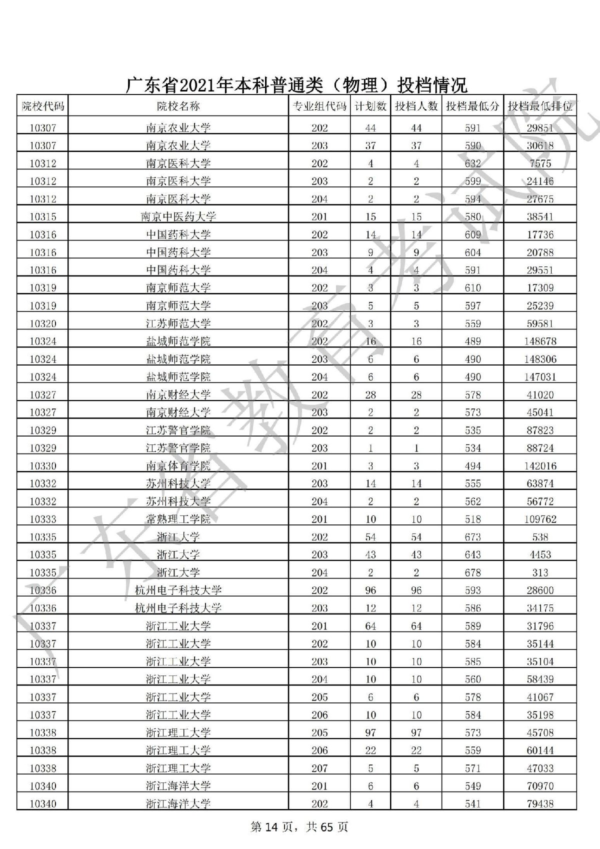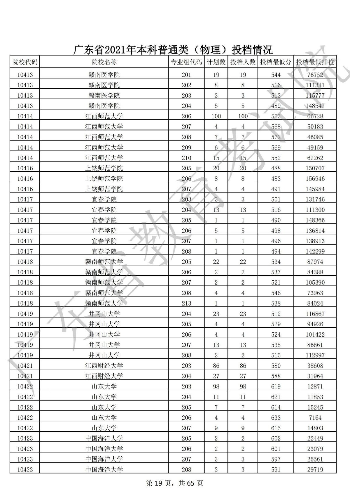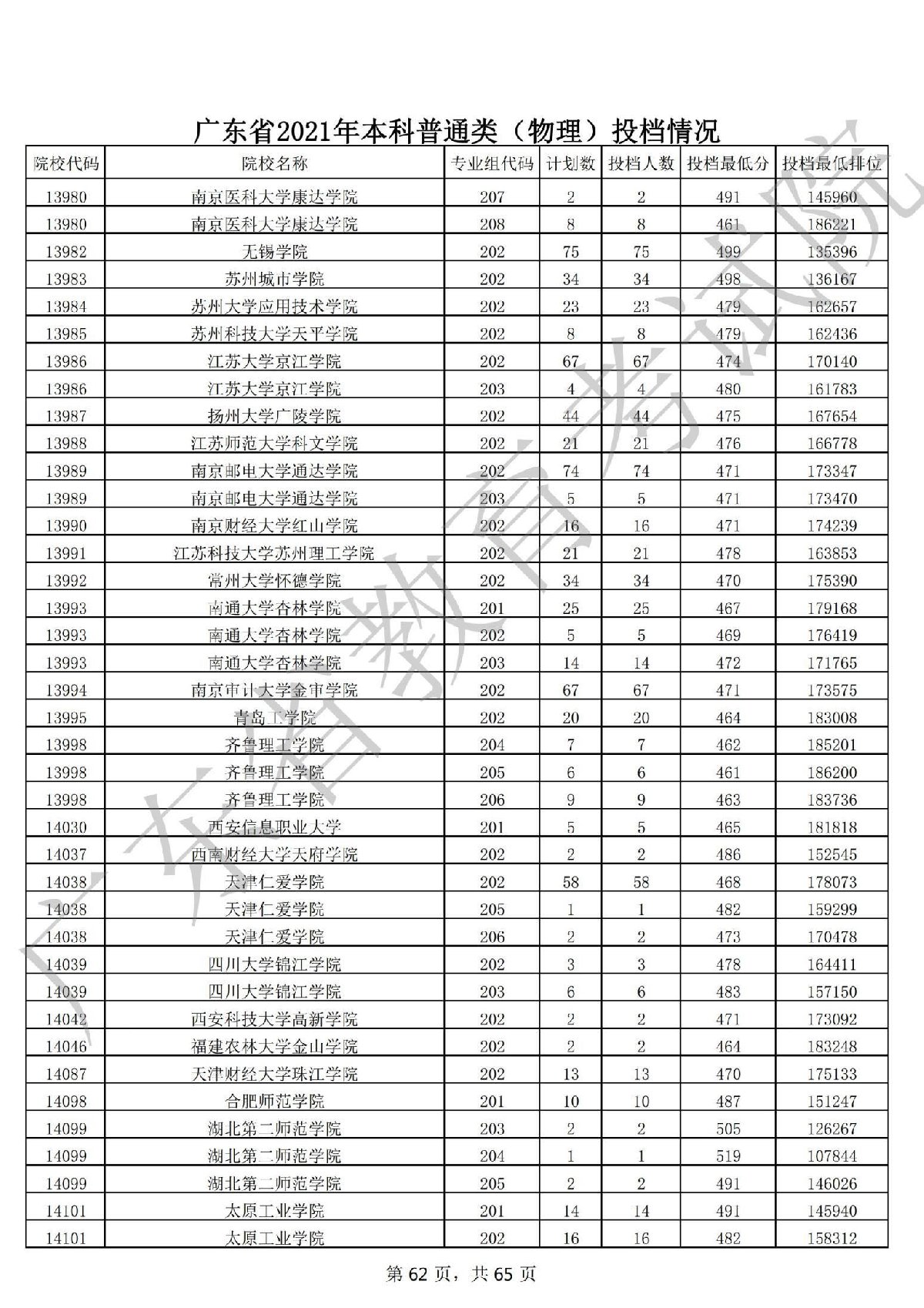 广东省2021年本科普通类 广东省2021年本科普通类(物理投档情况