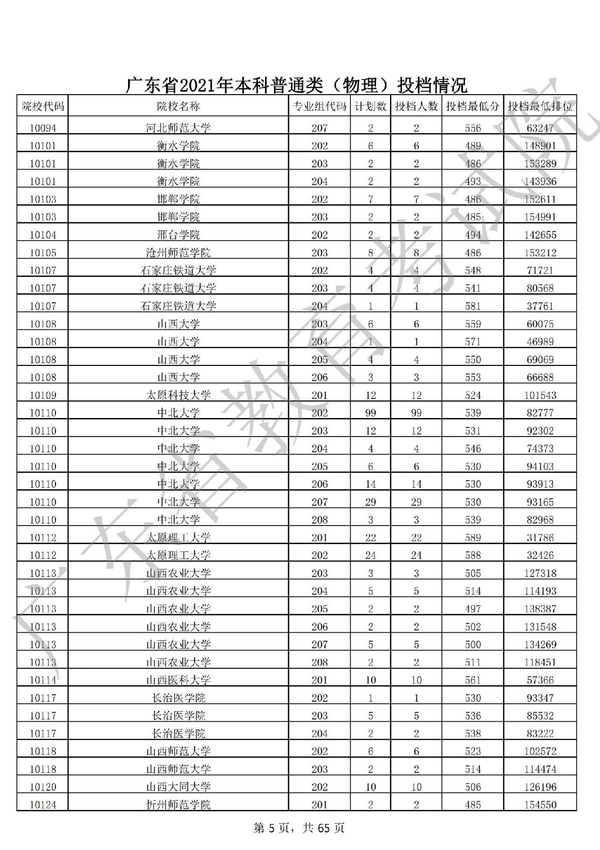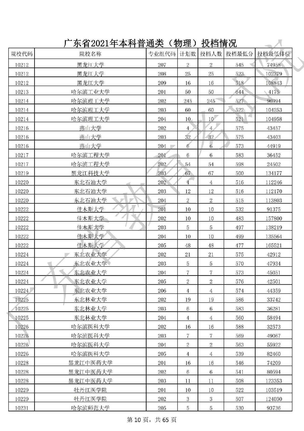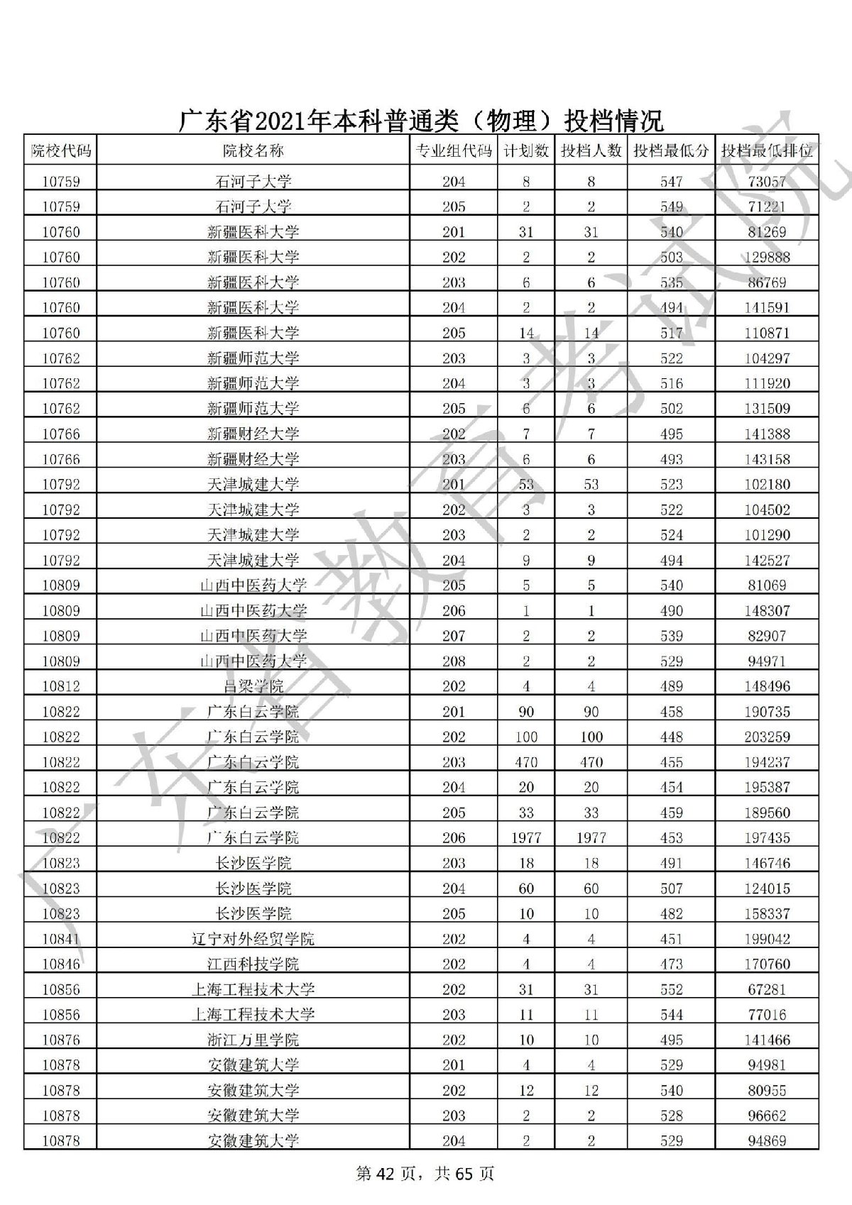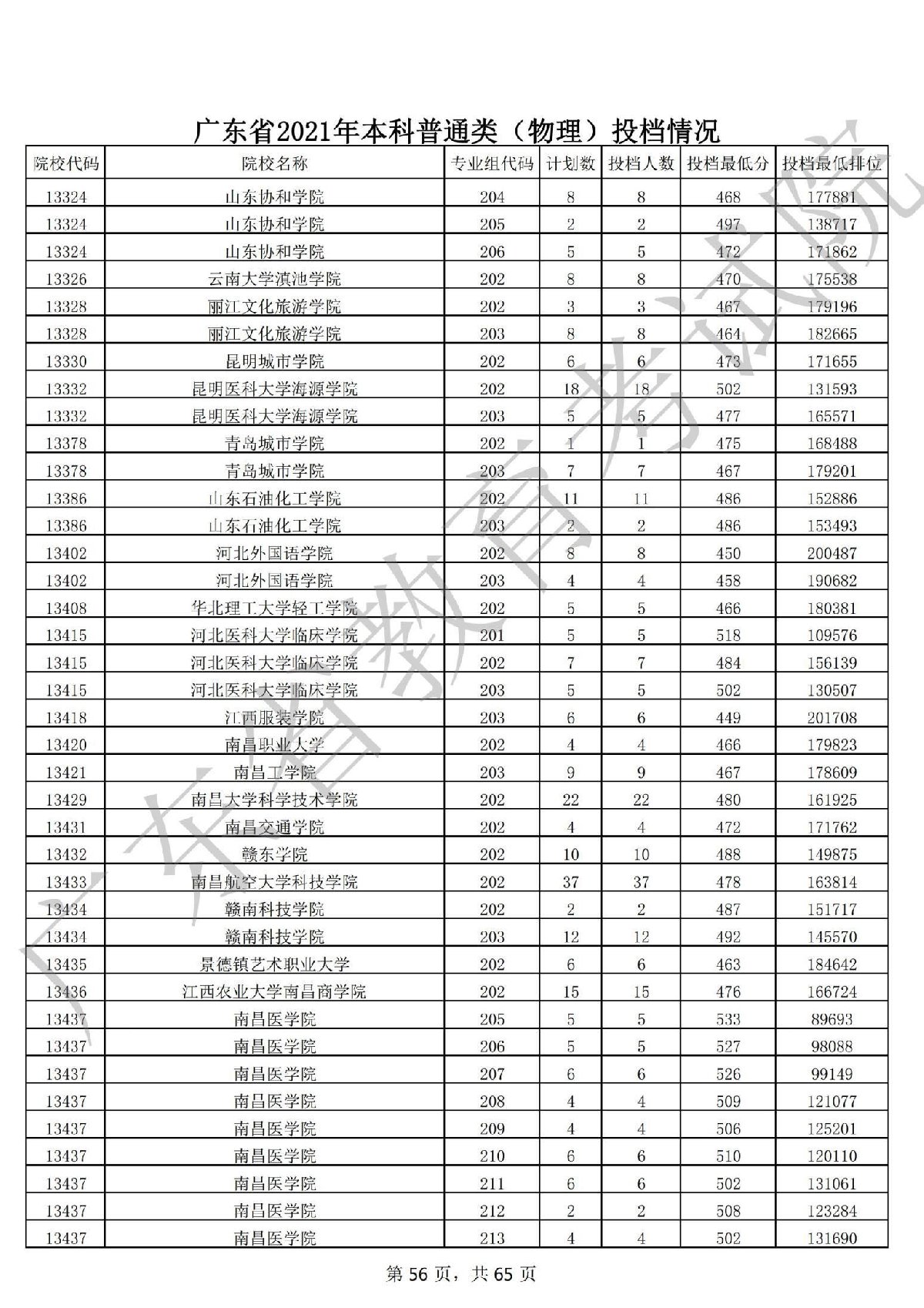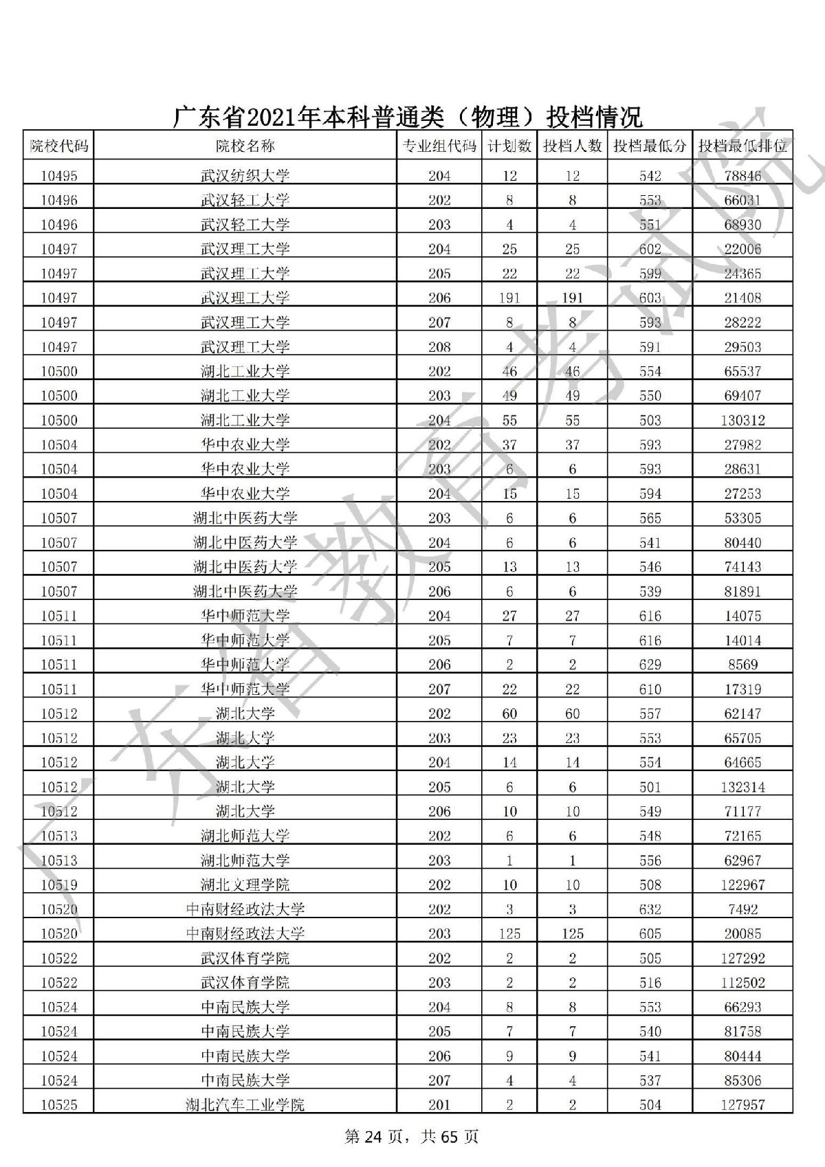 广东省2021年本科普通类 广东省2021年本科普通类(物理投档情况