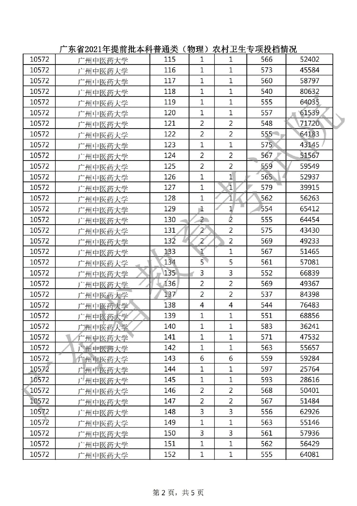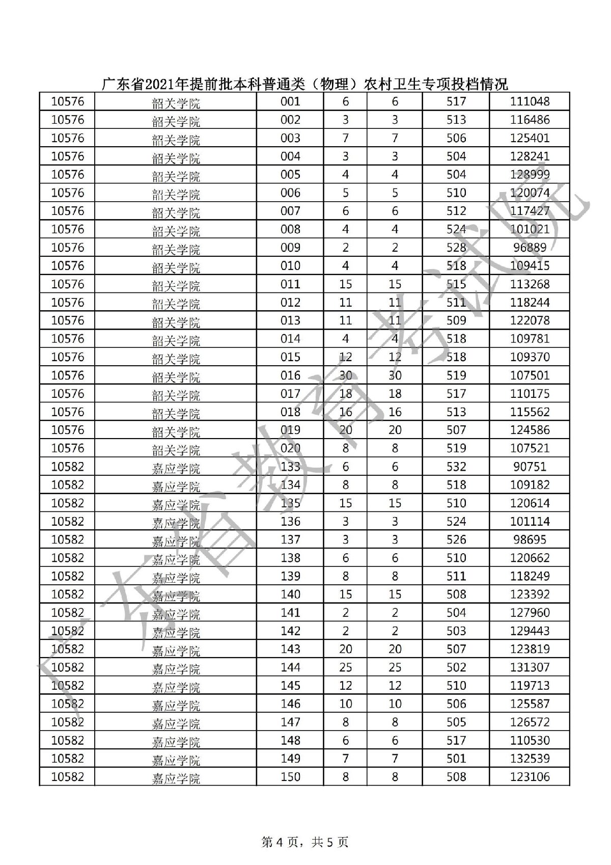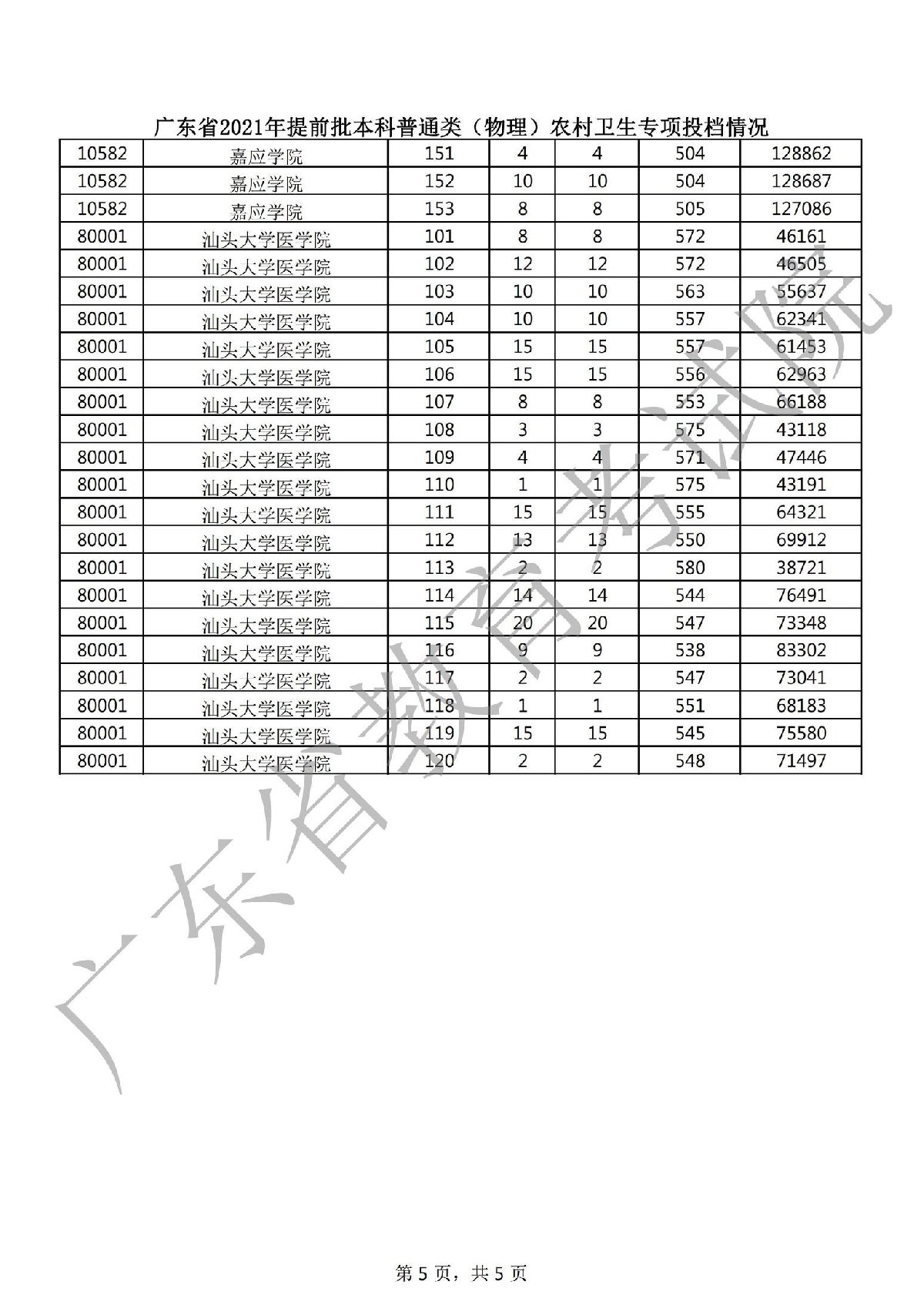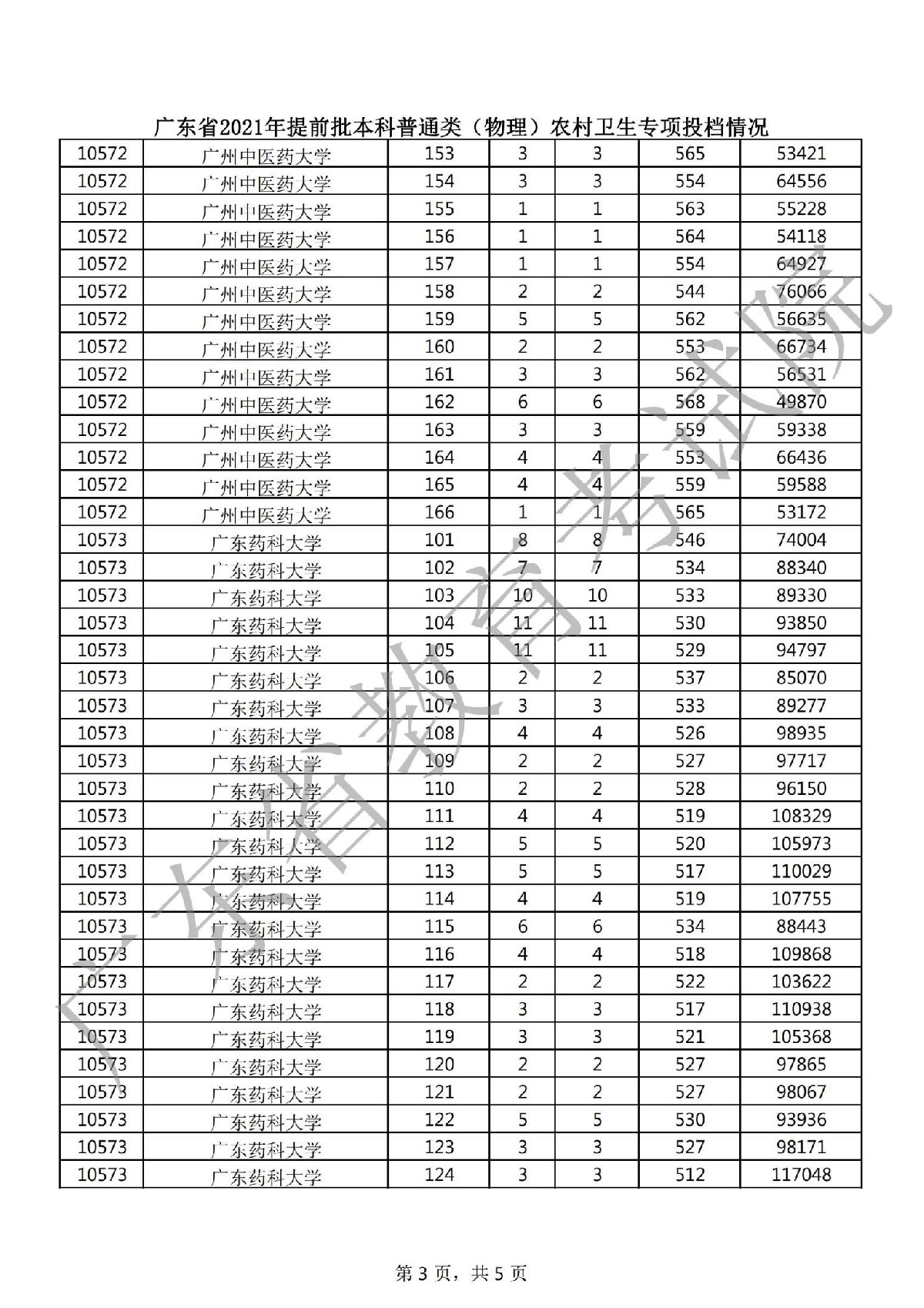 广东省2021年提前批本科普通类(物理)农村卫生专项投档情况