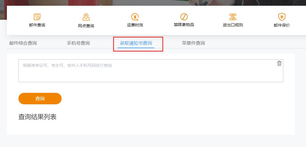 原因2:邮件已发出,但录取院校并未把考生准考证号或考生号与邮件关联。建议点击邮政速递物流线上平台菜单栏「查件」-「邮件查询」,使用报考时预留的手机号查询。