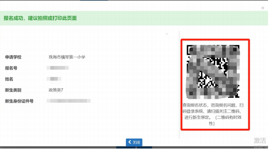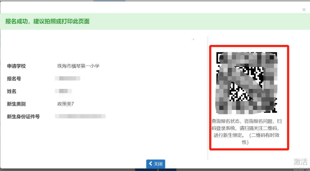 家长报名成功后会弹出二维码,家长用微信扫描后进入公众号,手机报名的,长按二维码进入公众号进行关注绑定。