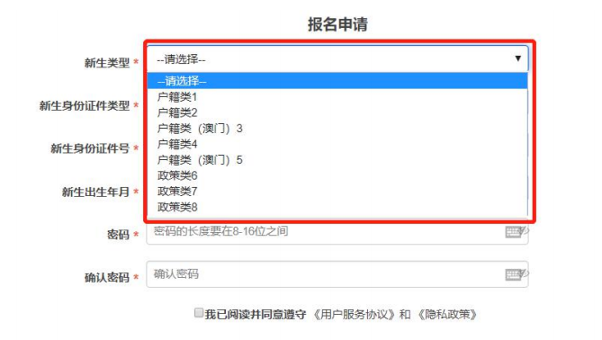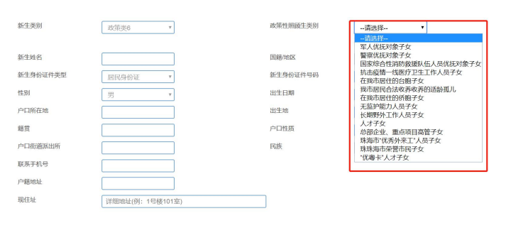 *注:学生类别为政策类6,市政策照顾类子女,需要选择政策类型