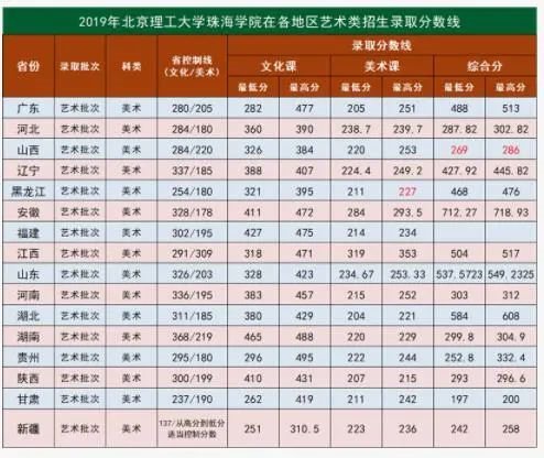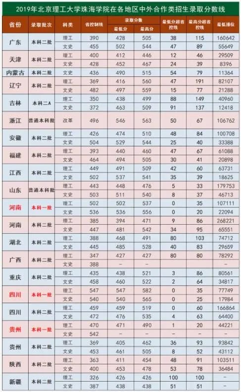 北京理工大学珠海学院历年录取分数线一览