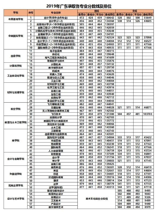 2019年北理珠2020普招分专业录取分数线(广东)