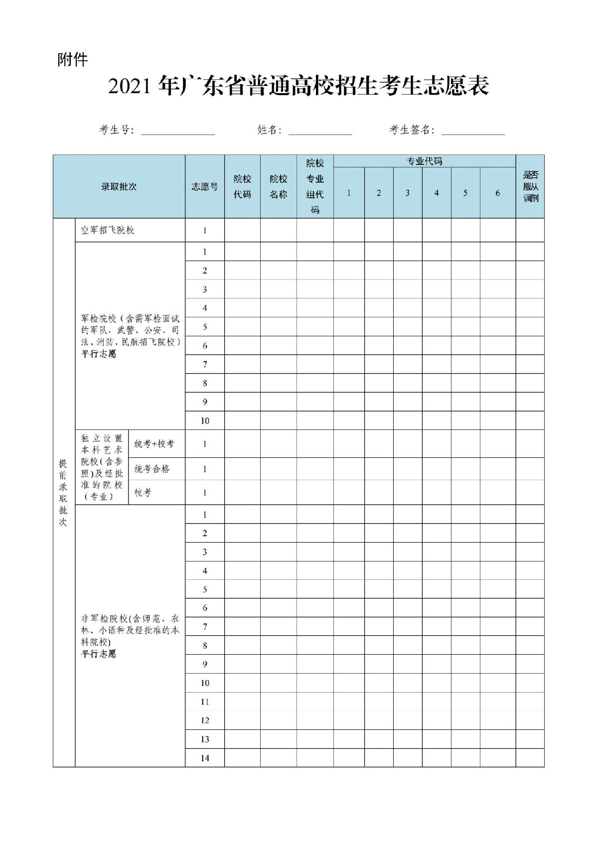 2021广东高考志愿填报表样表模板(2021年广东高考志愿填报样表)
