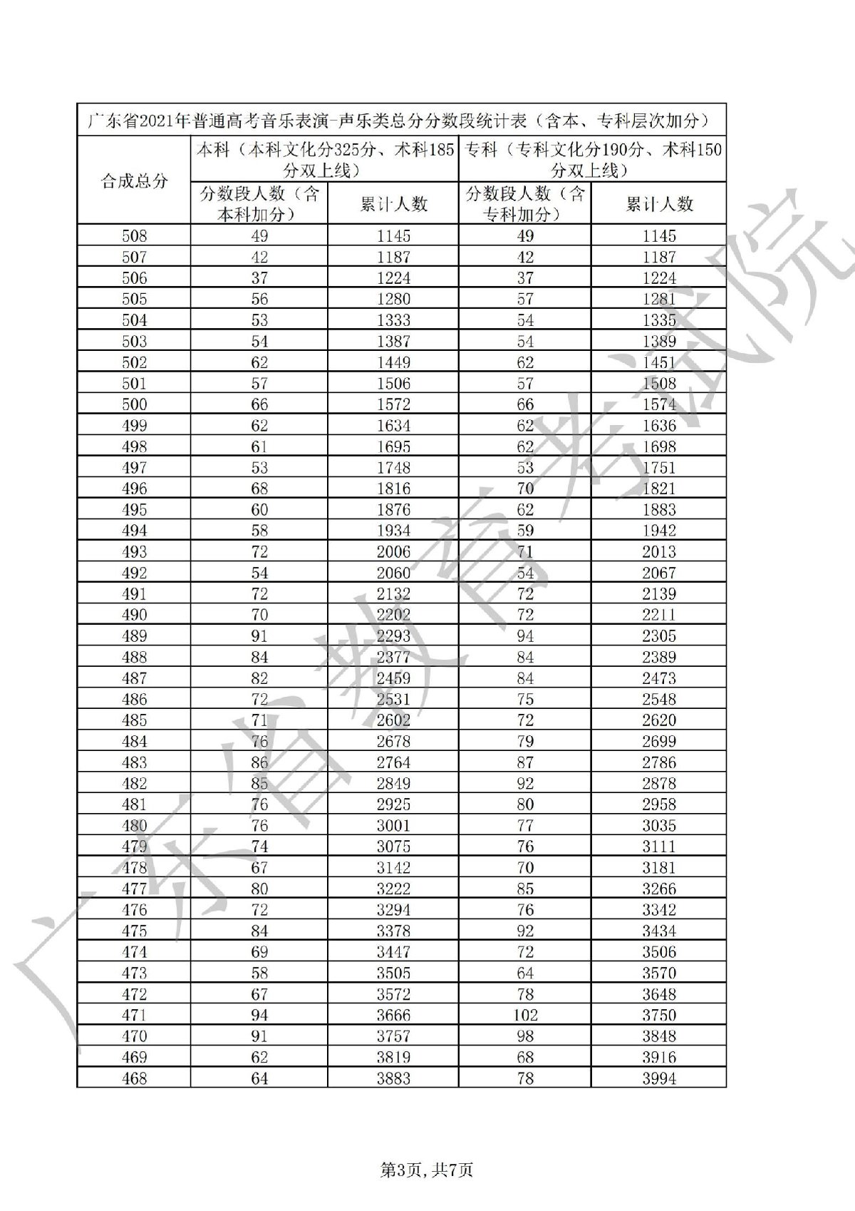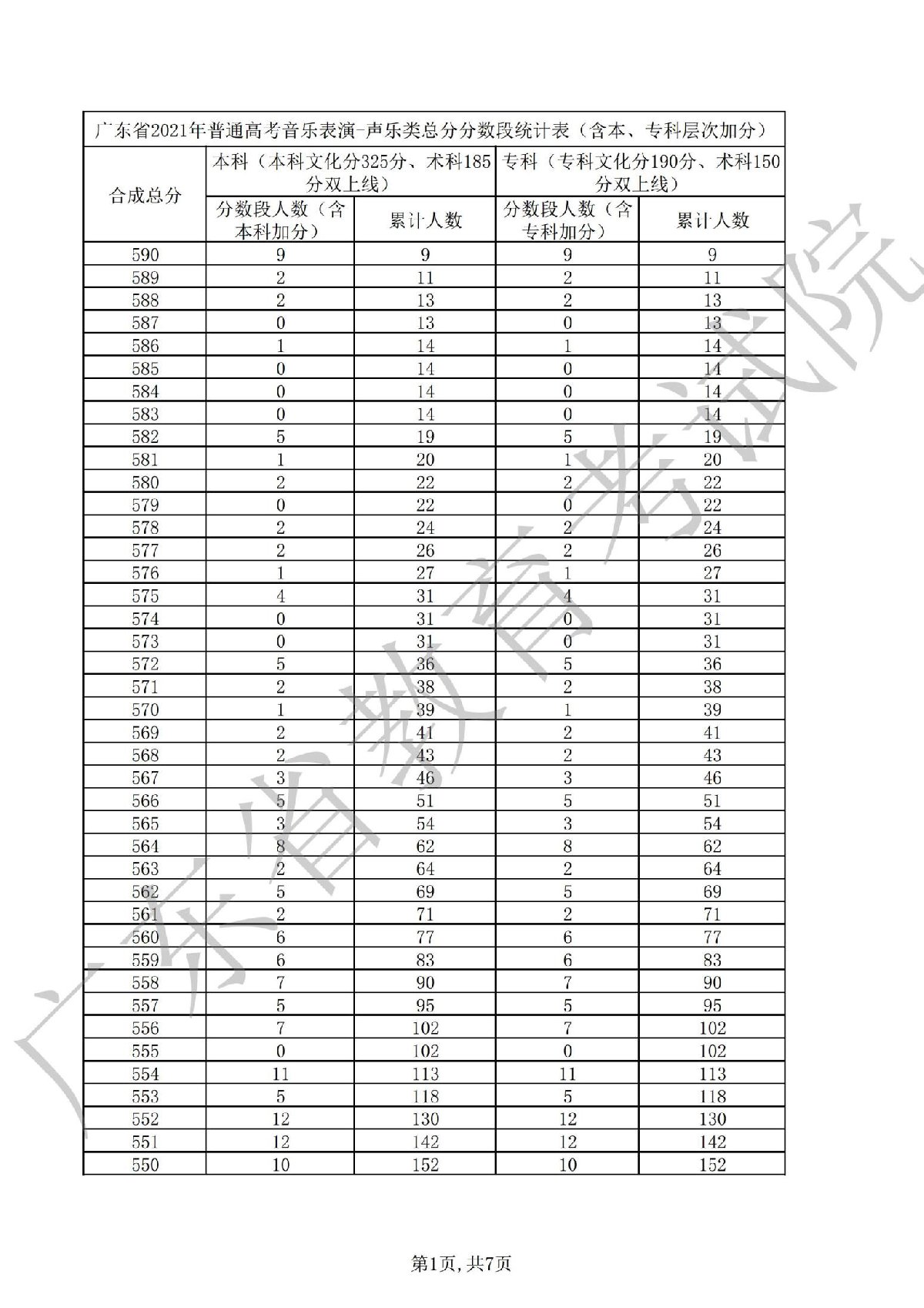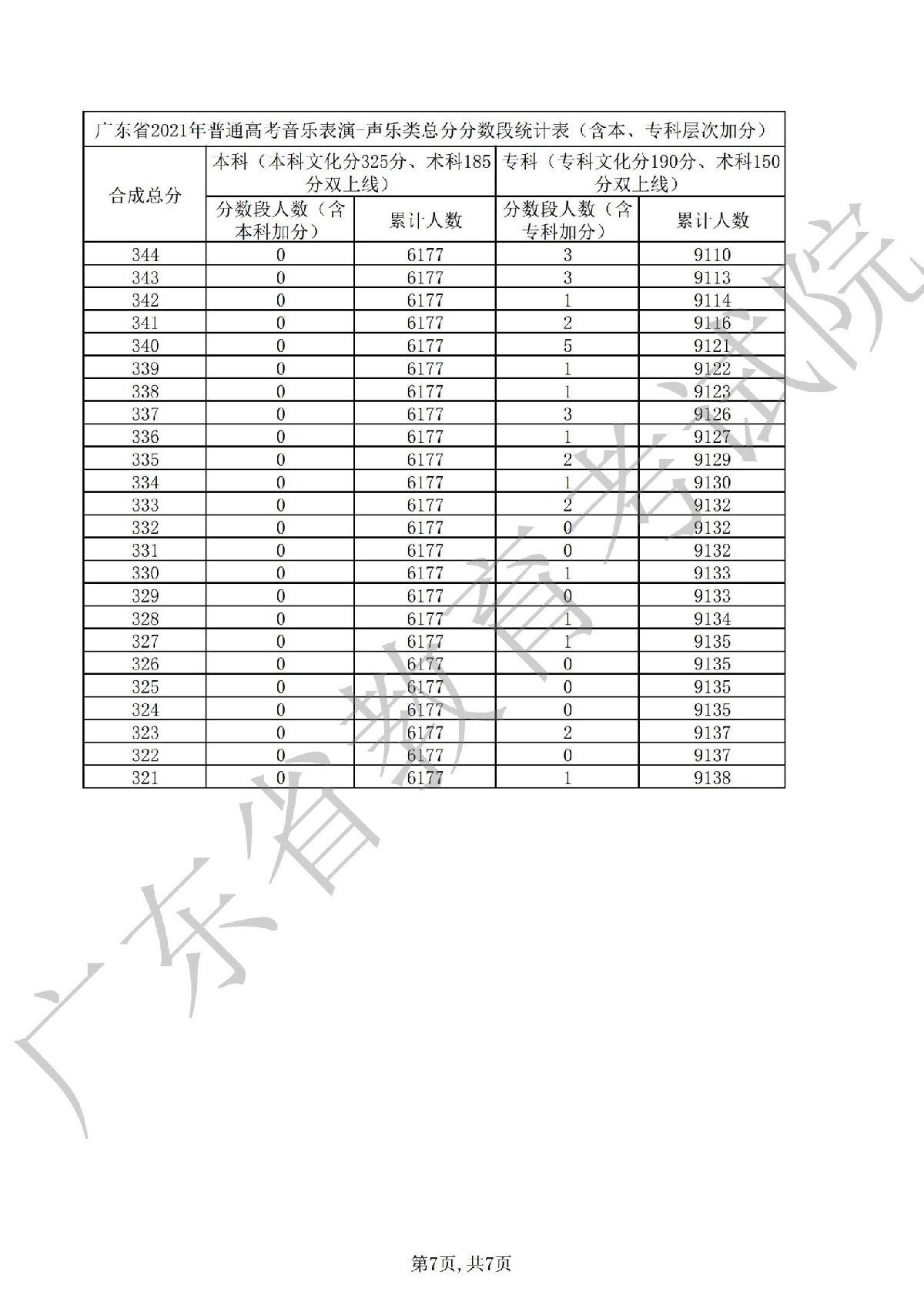 2021广东高考音乐学类总分一分一段表 2021广东高考音乐分数段人数