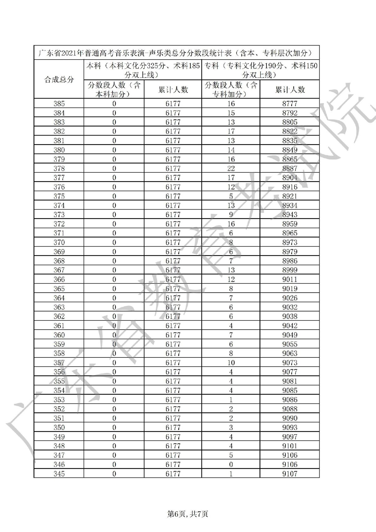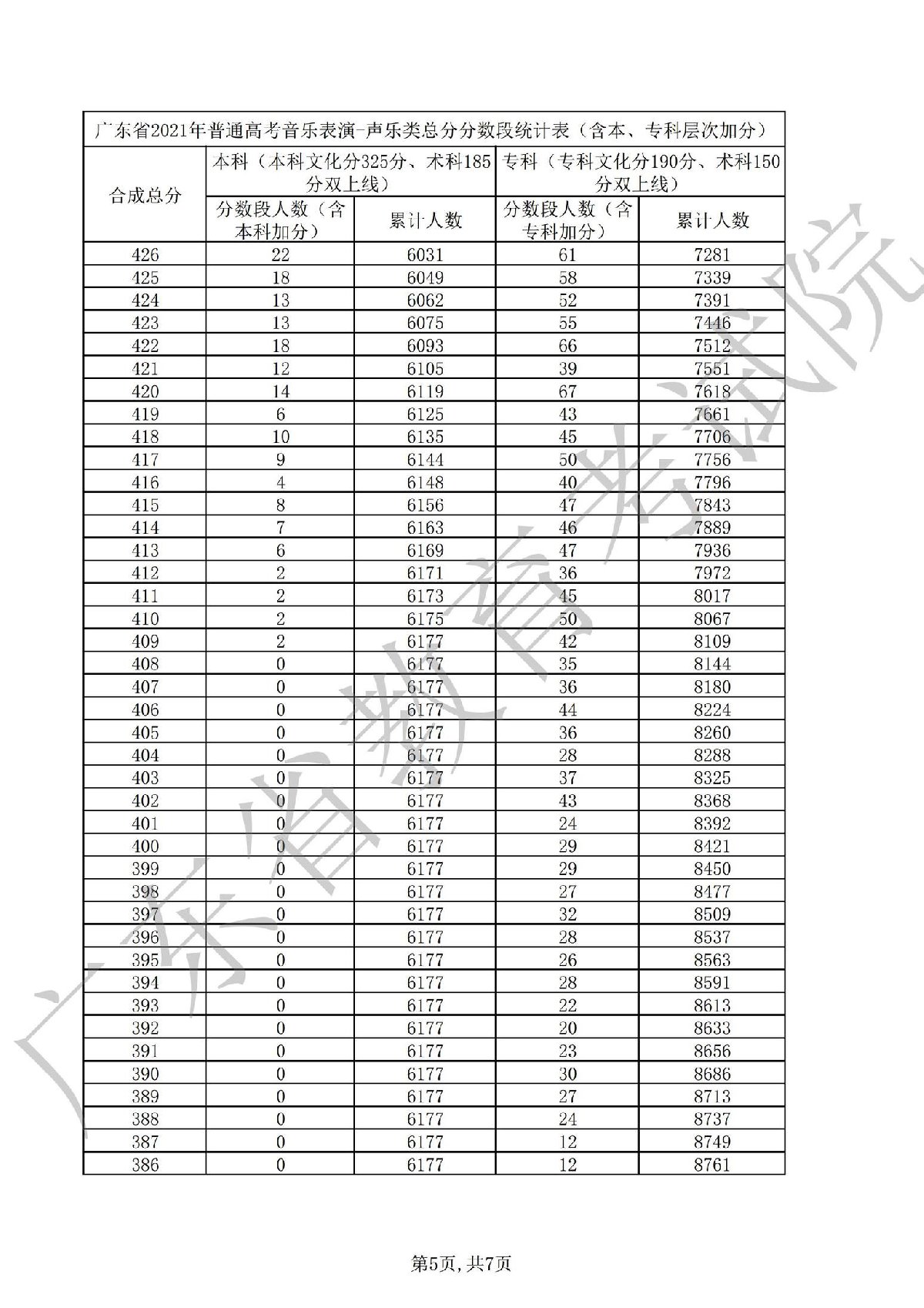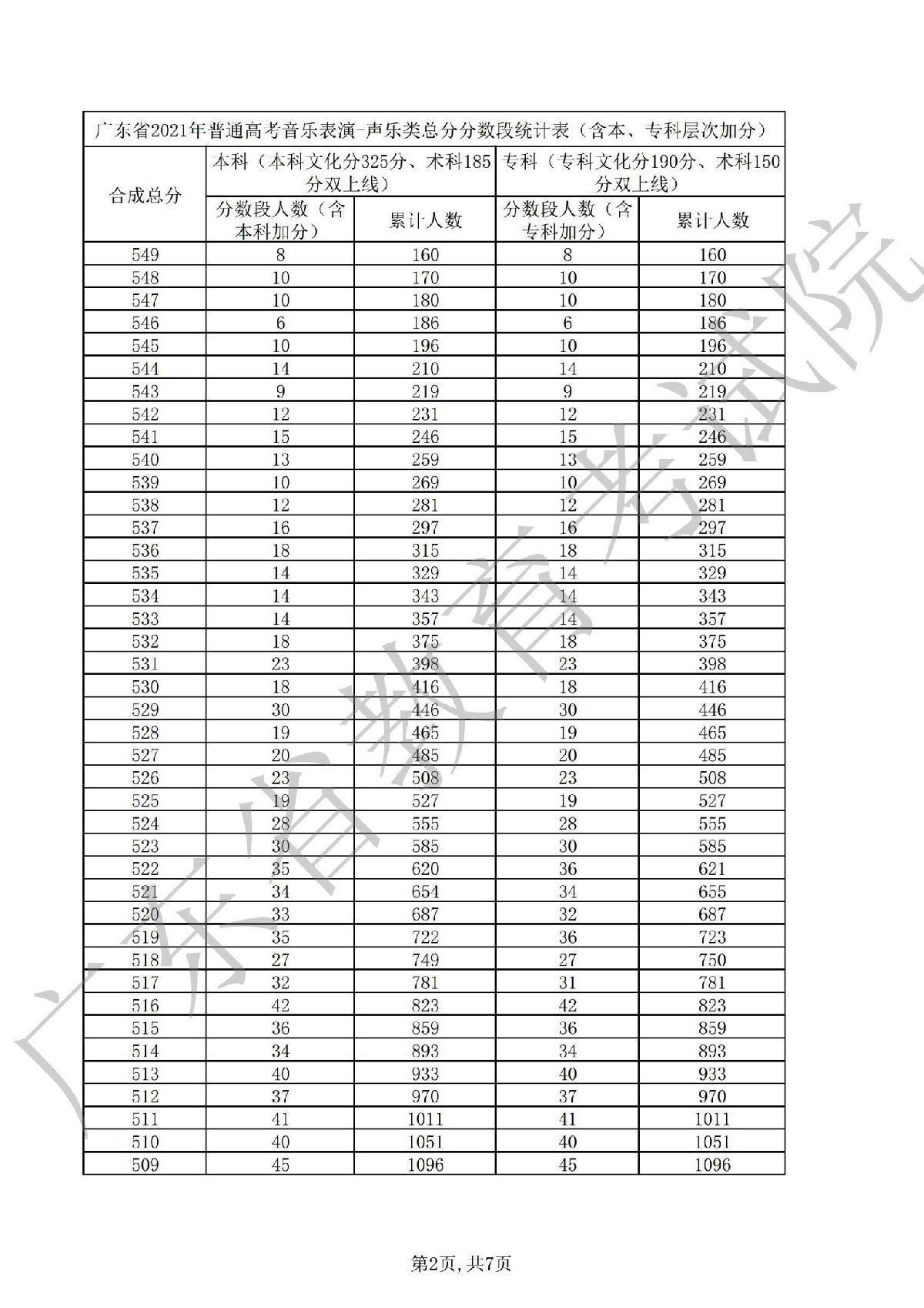 2021广东高考音乐学类总分一分一段表 2021广东高考音乐分数段人数