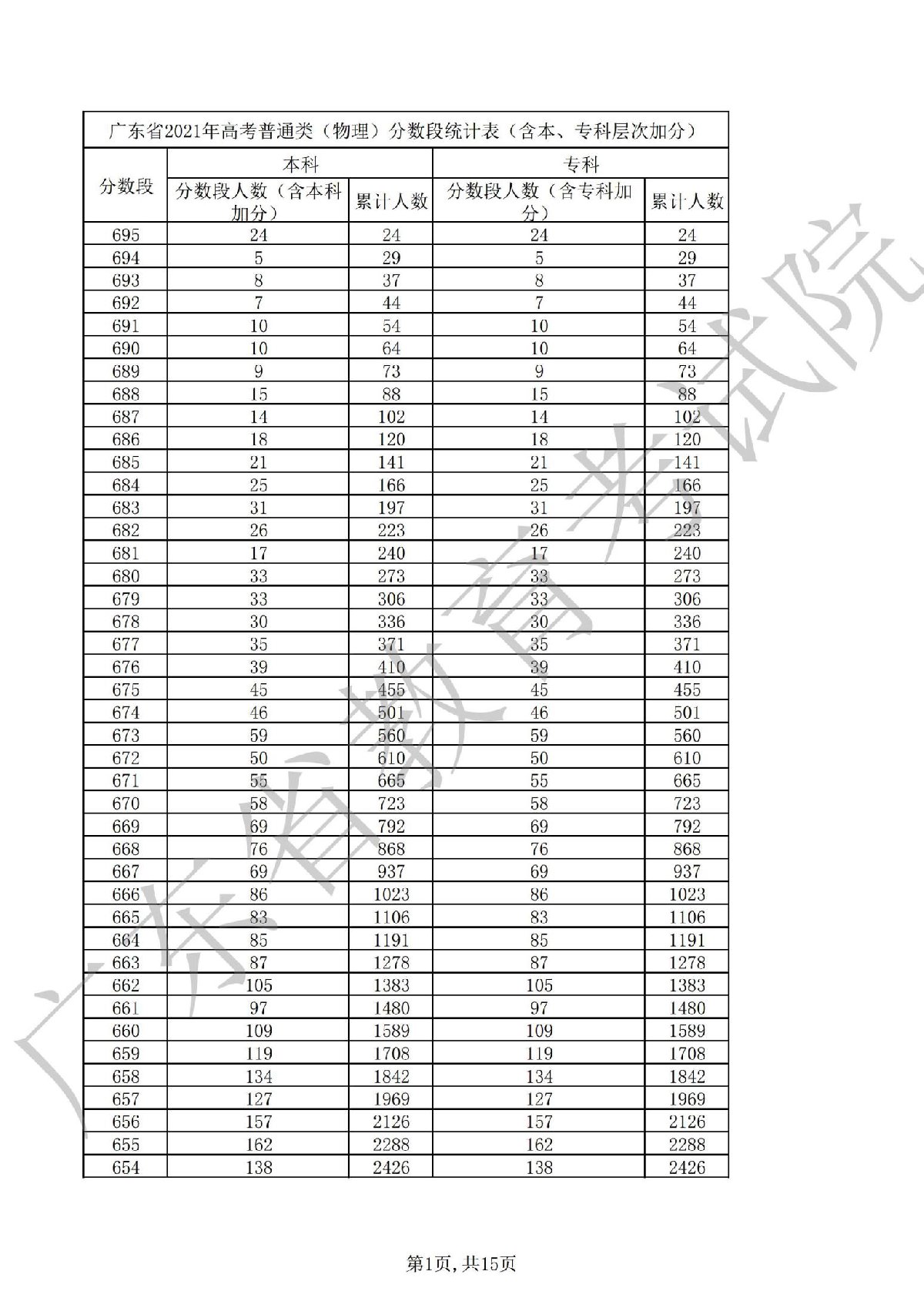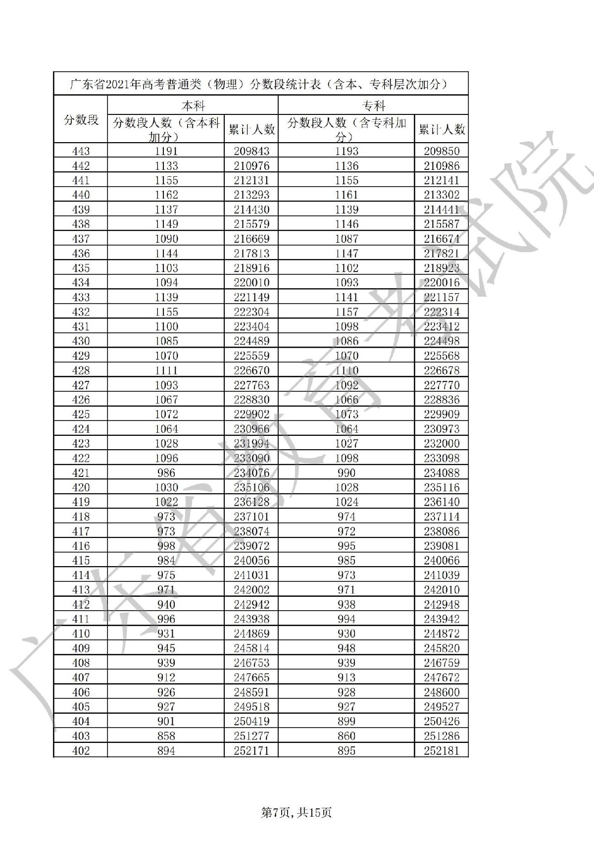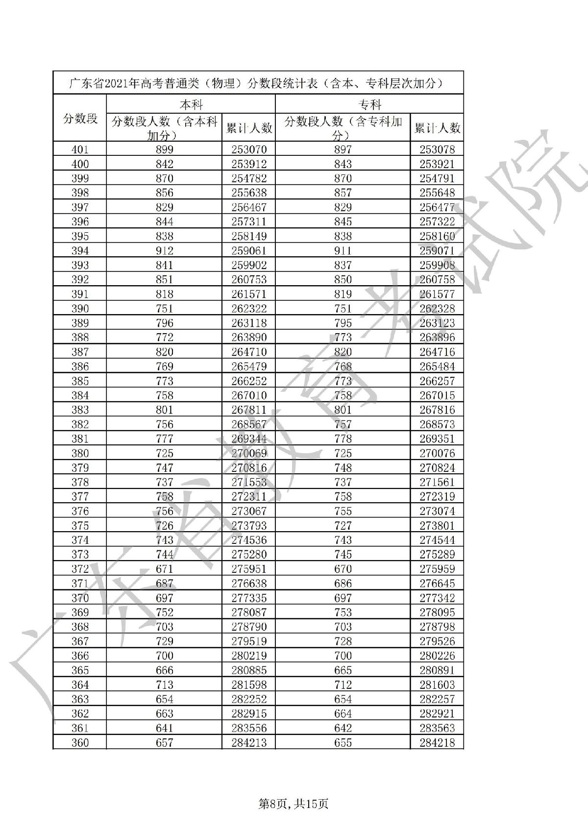 2021广东高考一分一段表 2021广东高考一分一段表理科