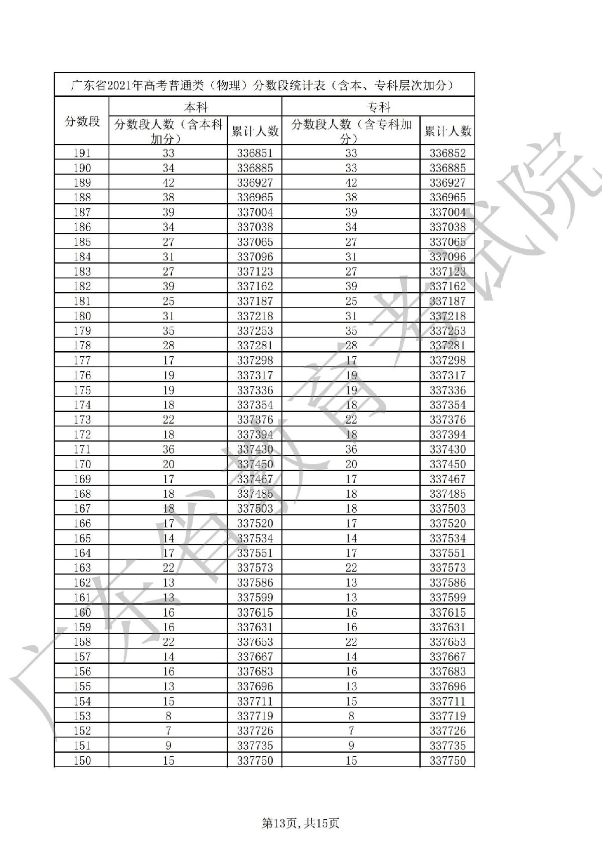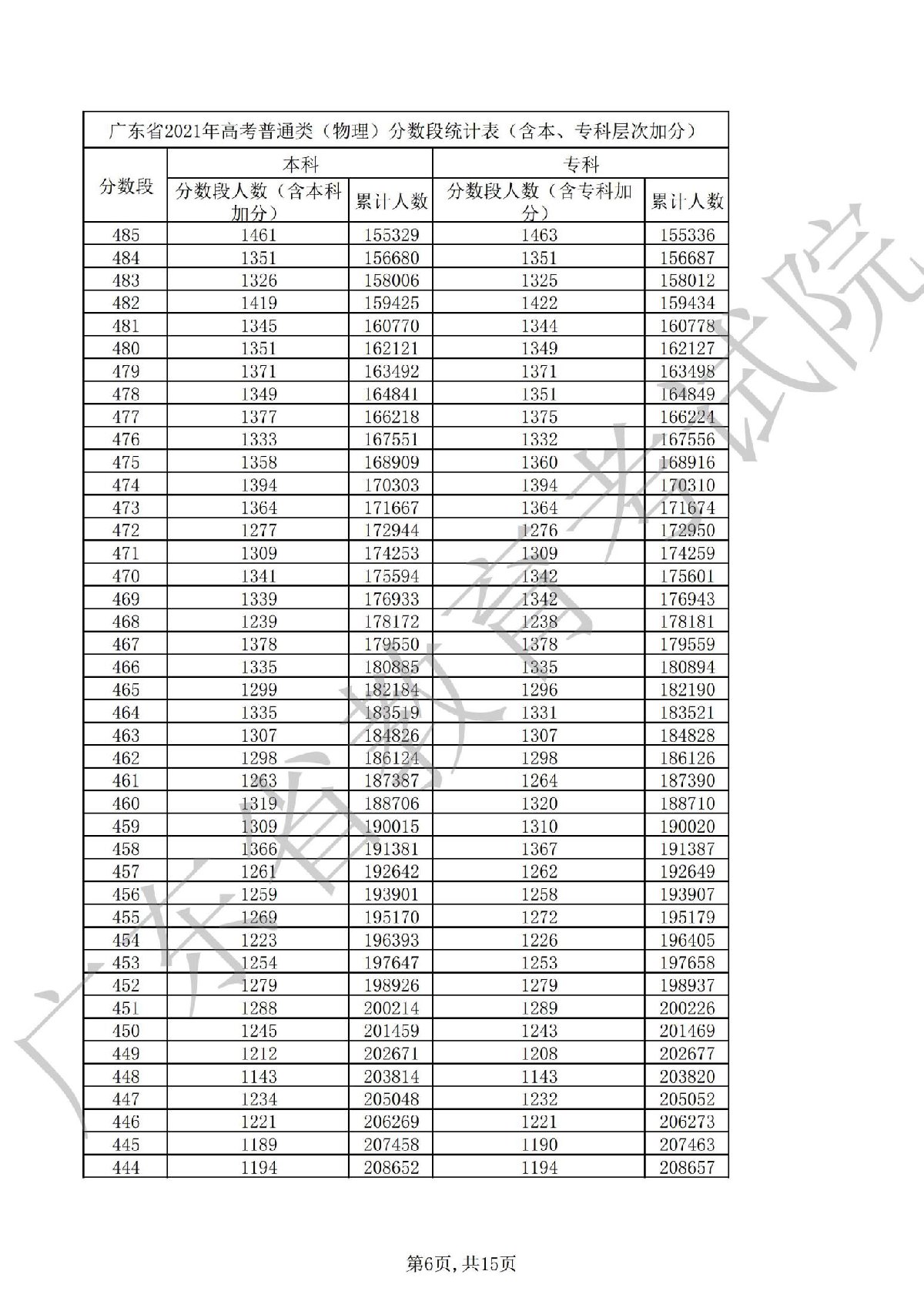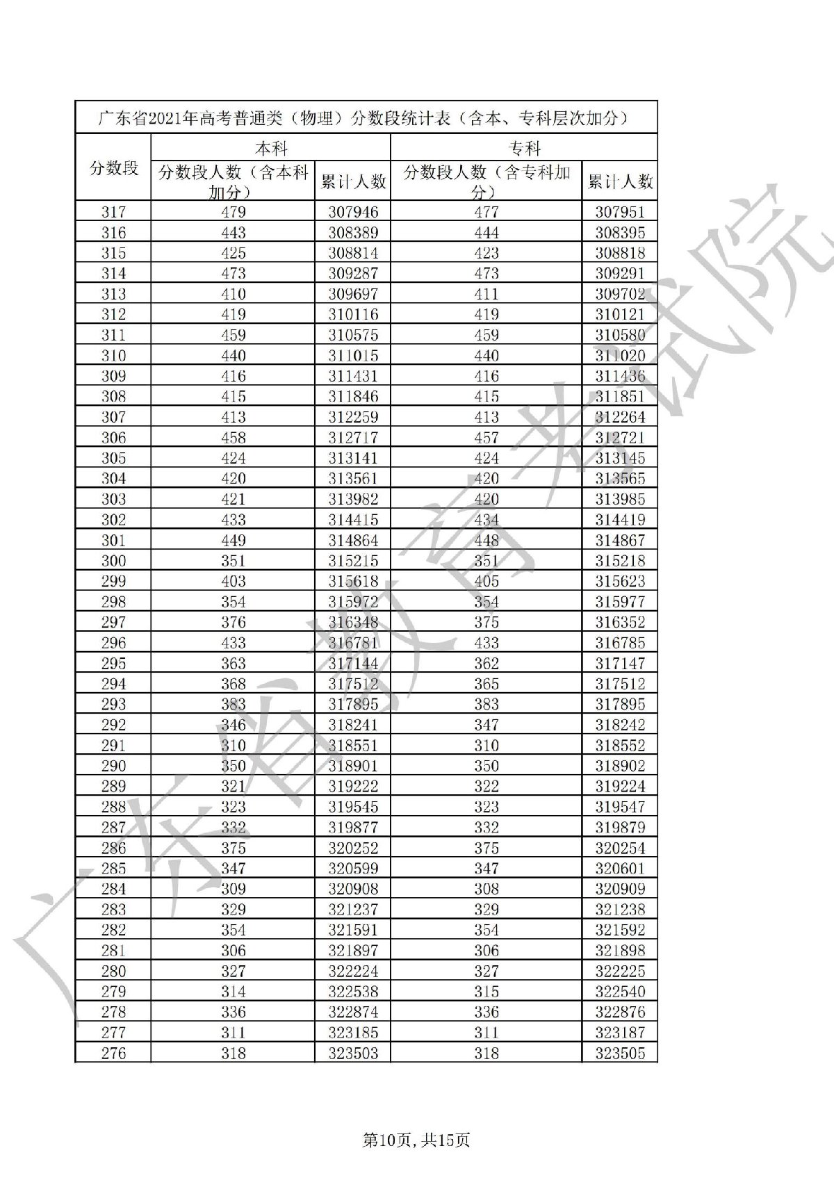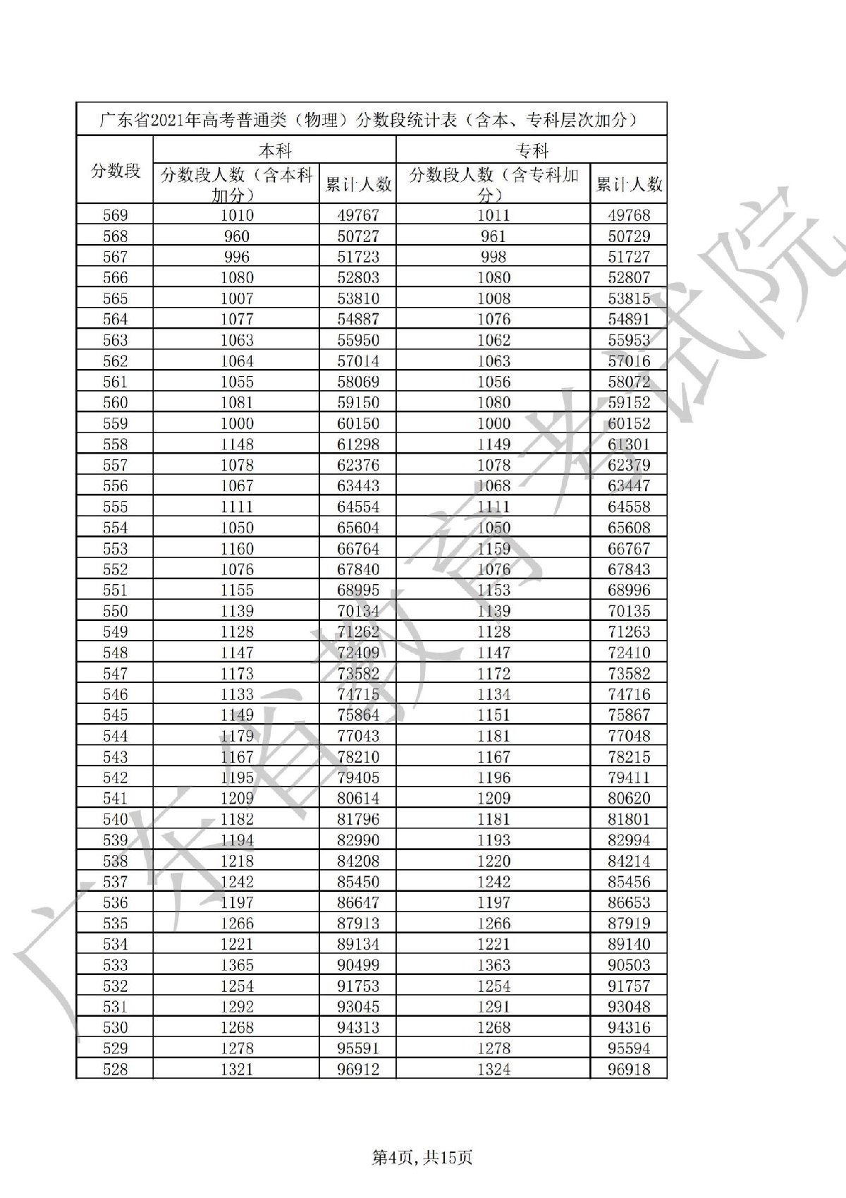 2021广东高考一分一段表 2021广东高考一分一段表理科