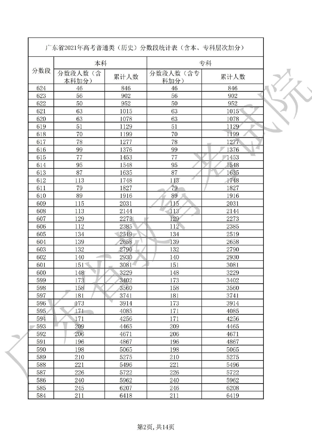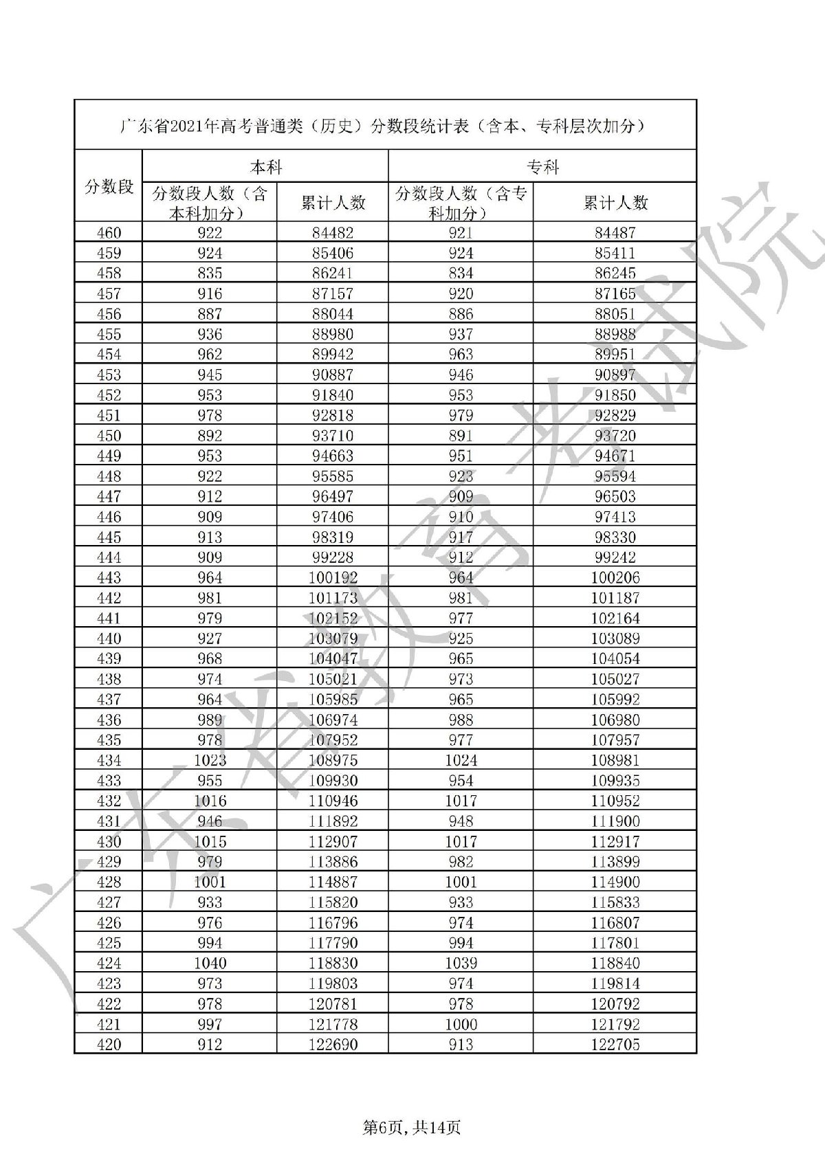 2021广东高考一分一段表 2021广东高考一分一段表理科