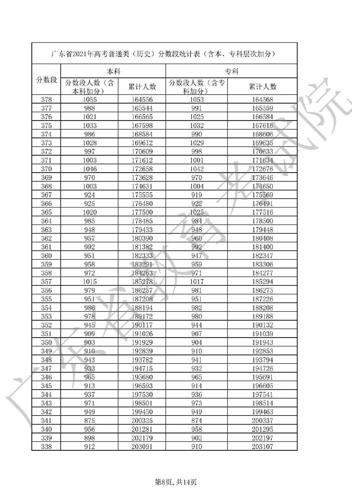 2021广东高考一分一段表 2021广东高考一分一段表查询
