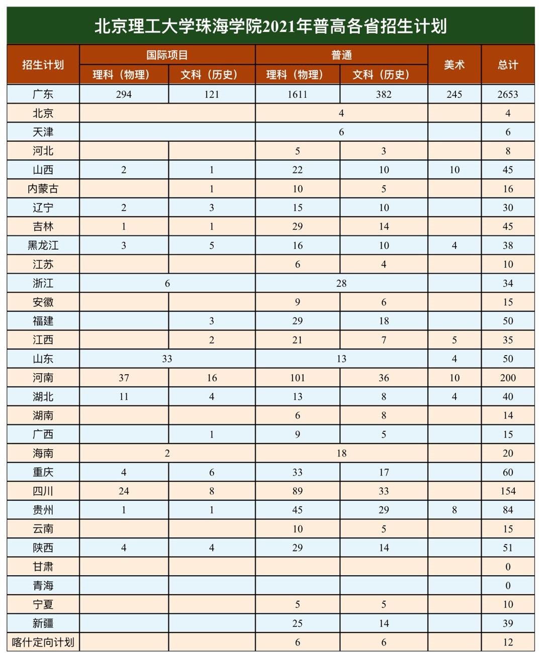 北京理工大学珠海学院2021年招生计划(北京理工大学珠海学院2021年招生计划多少人)