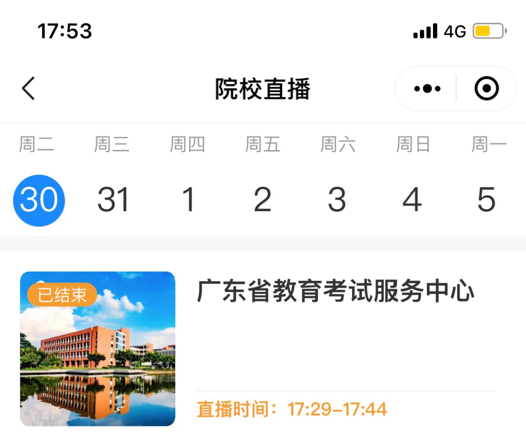 第二步:点击首页“招生直播”图标,进入直播日历界面;