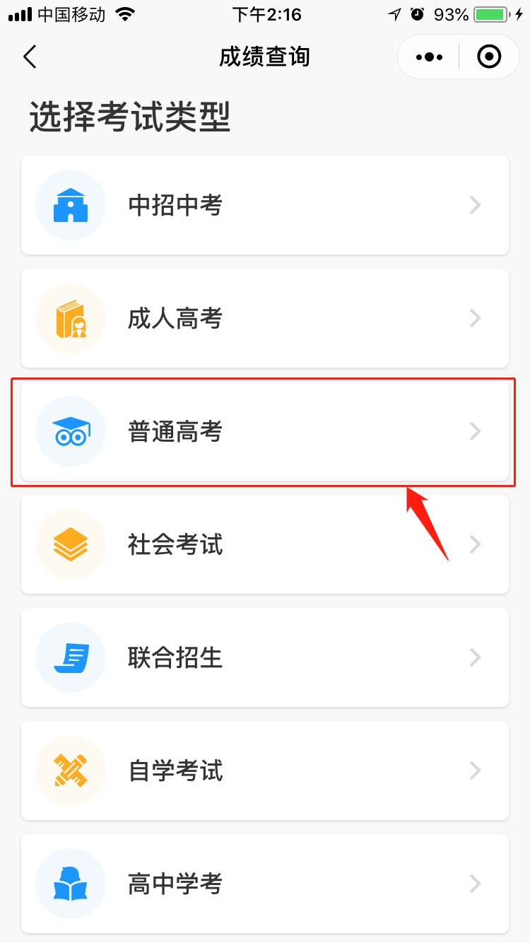 第三步:选择相应考试类型,填写考生号及密码,点击【查询】,即可查询个人高考成绩。