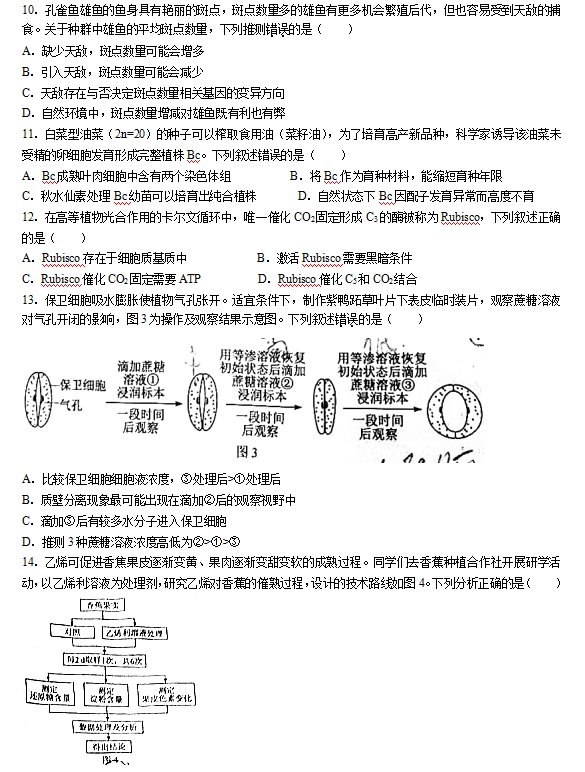 【详解】A通过分析可知,①细胞处吸水量少于③处细胞,说明保卫细胞细胞液浓度①处理后>③处理后,A错误;